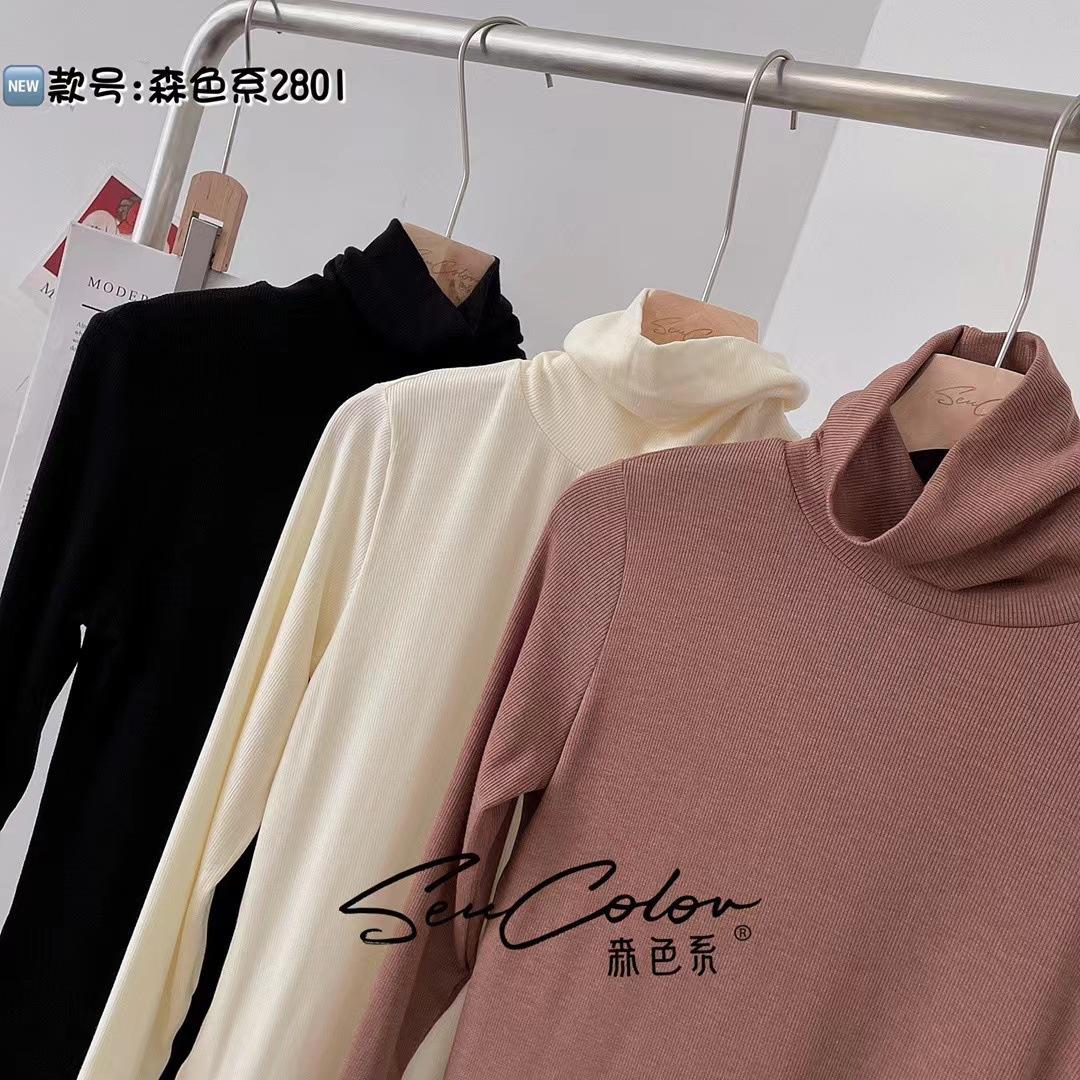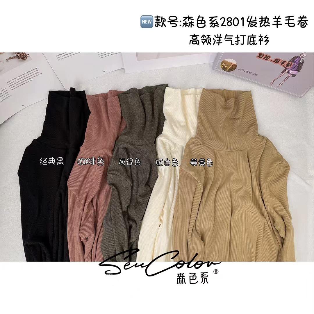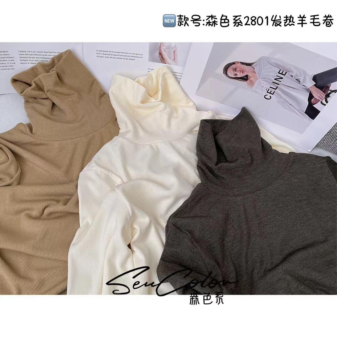 Otoño e Invierno nuevo estilo ropa interior adelgazante color sólido simple alta elasticidad tejido cálido calefacción cuello alto camisa base cuello alto manga larga