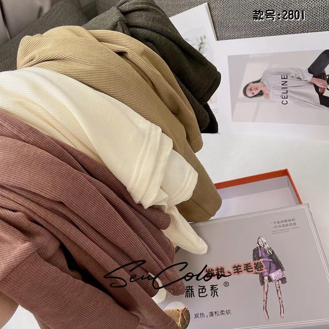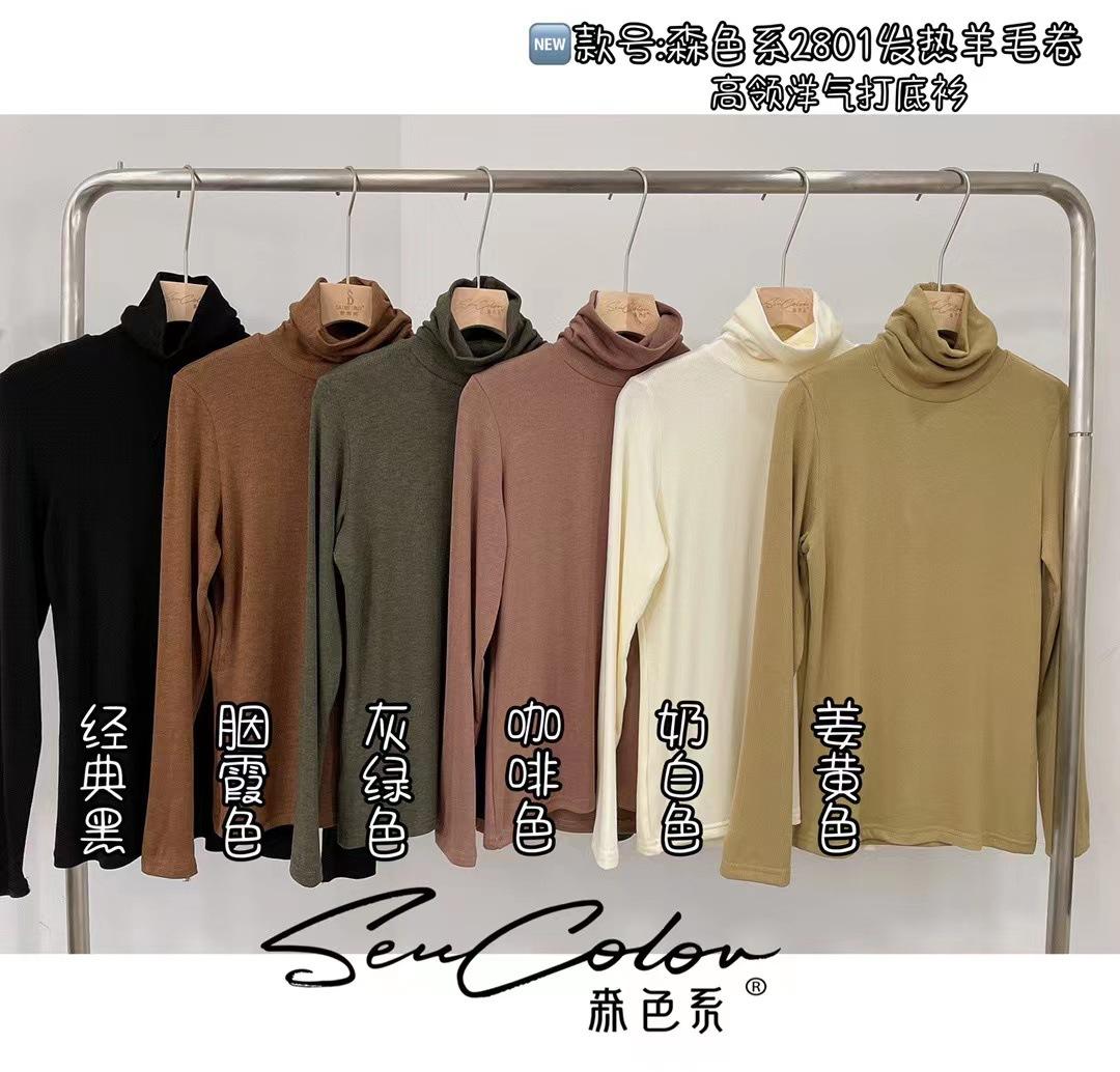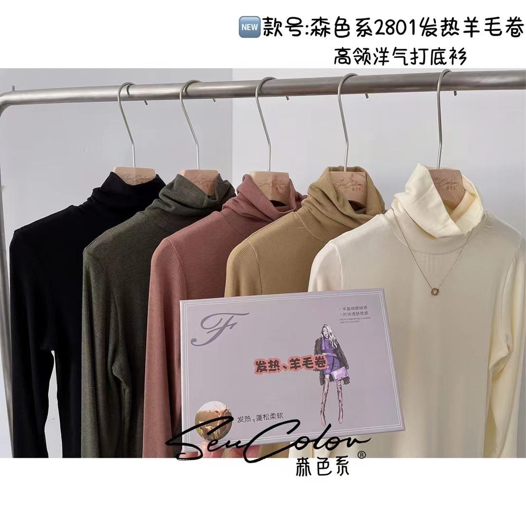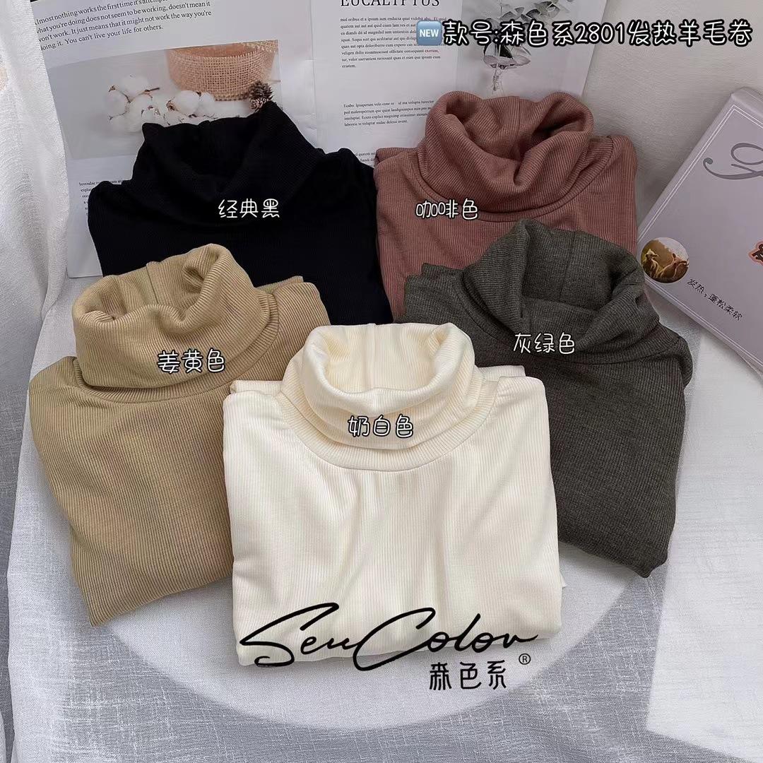 Otoño e Invierno nuevo estilo ropa interior adelgazante color sólido simple alta elasticidad tejido cálido calefacción cuello alto camisa base cuello alto manga larga