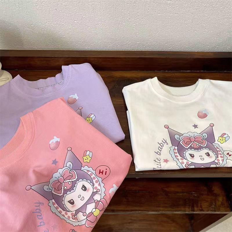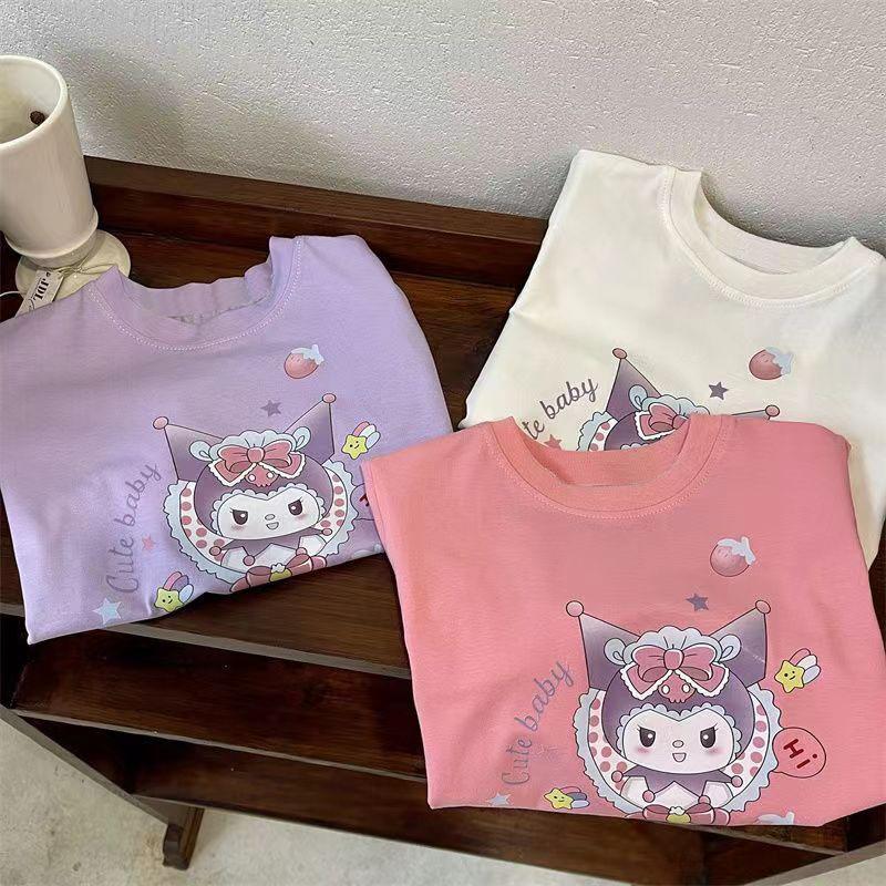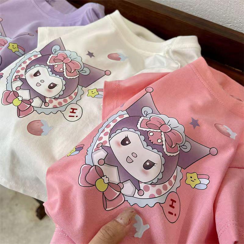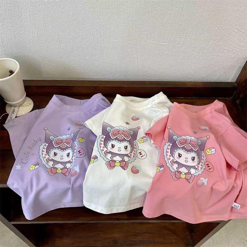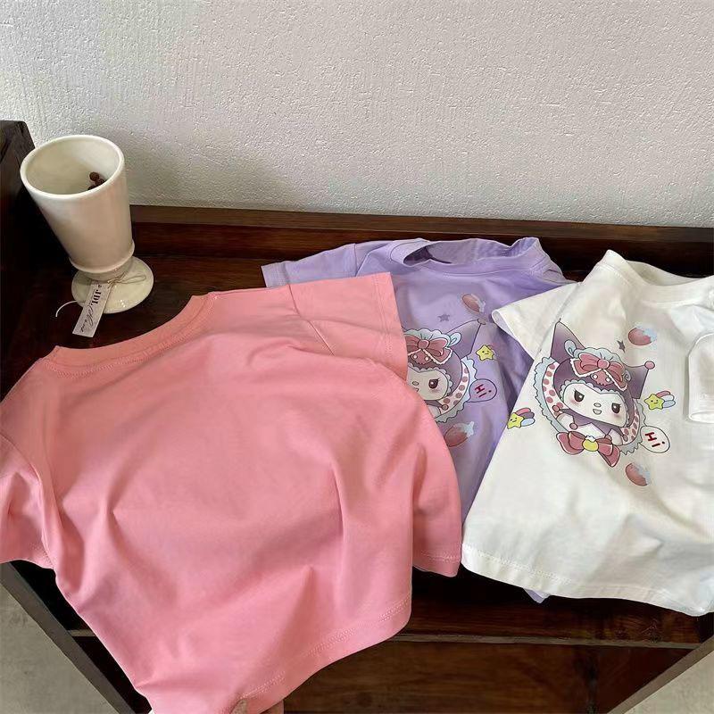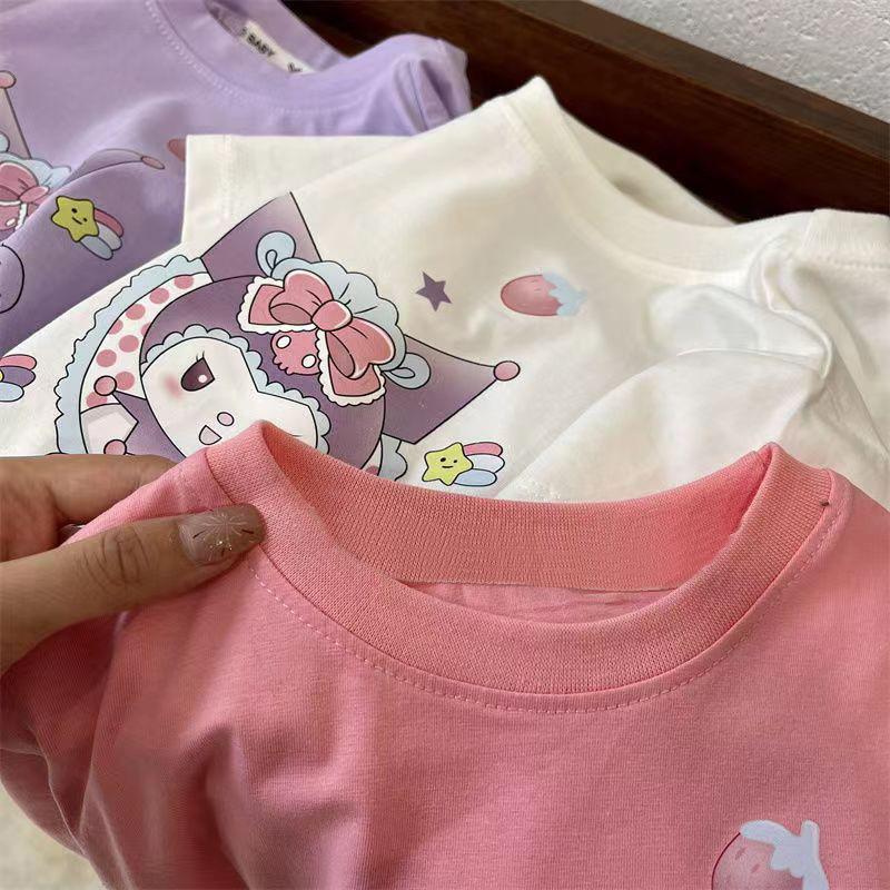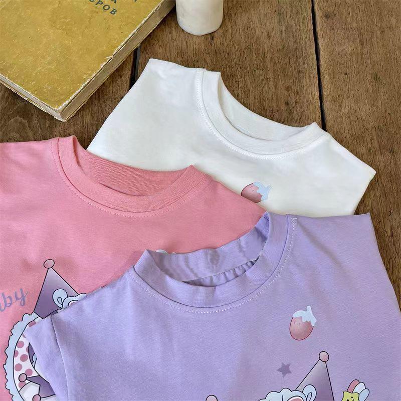 Camiseta de manga corta de verano para niñas, 100% algodón, con estampado de dibujos animados, informal, para bebés