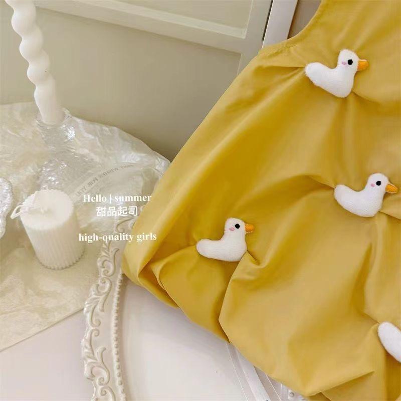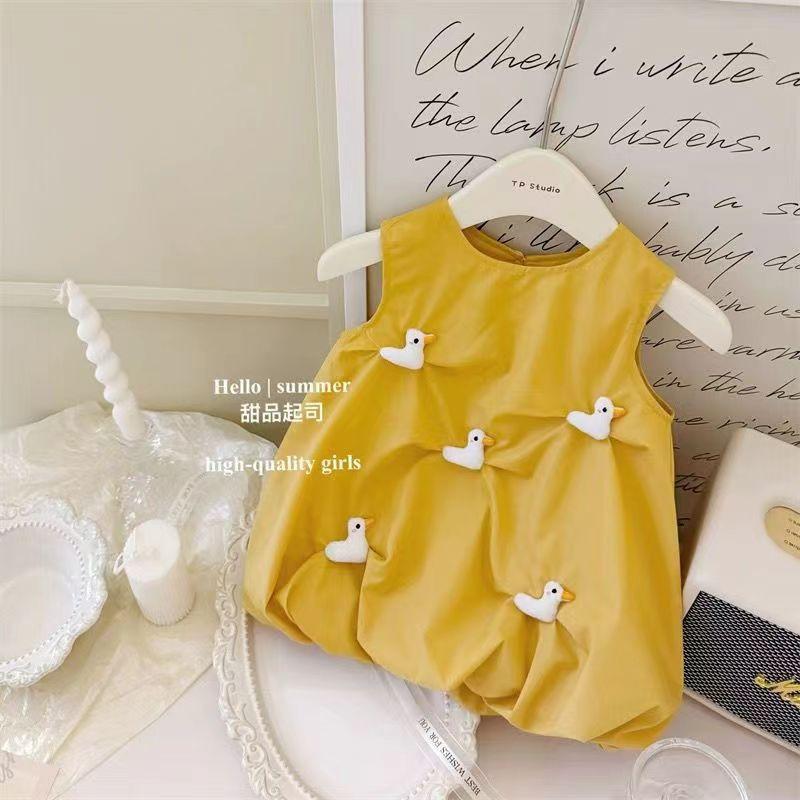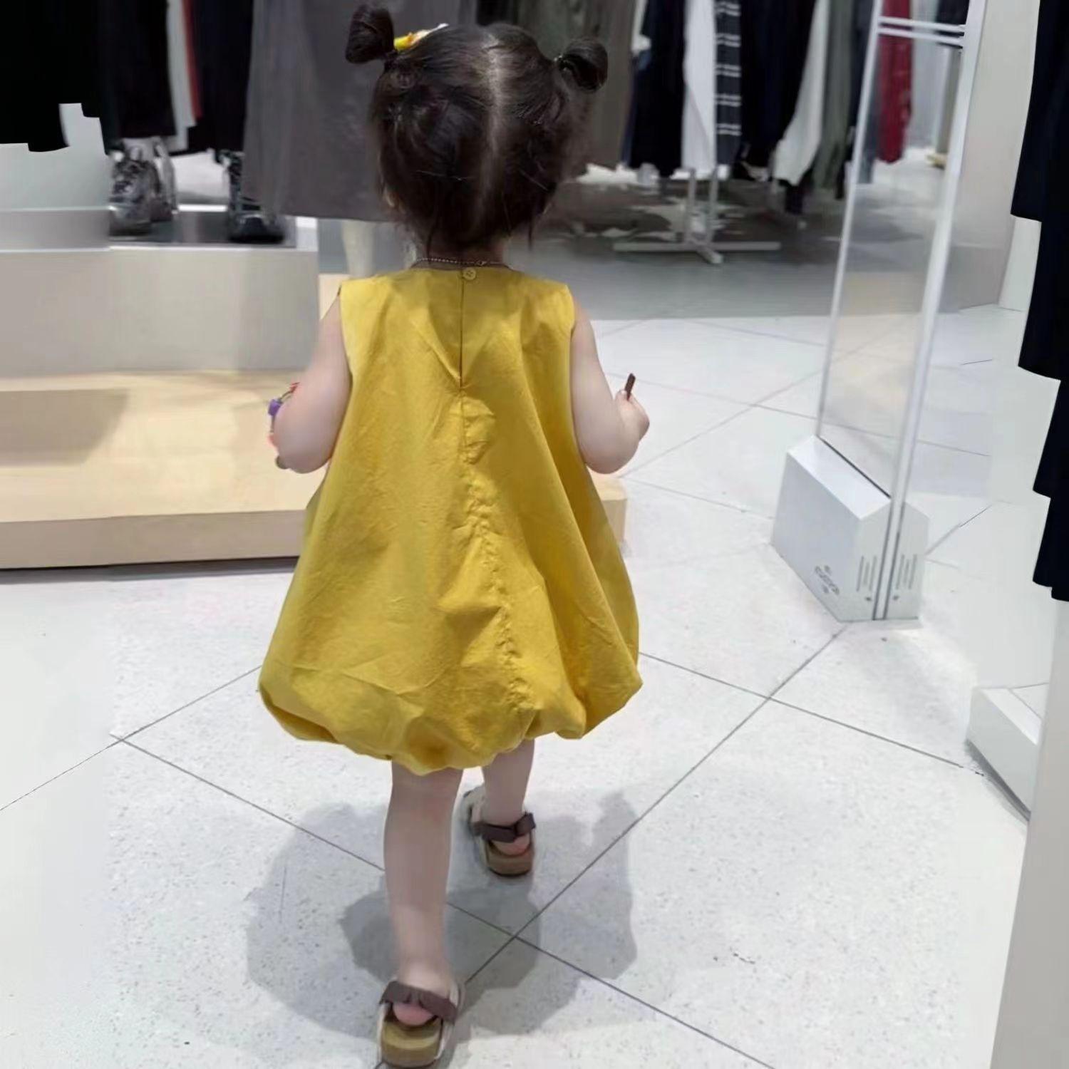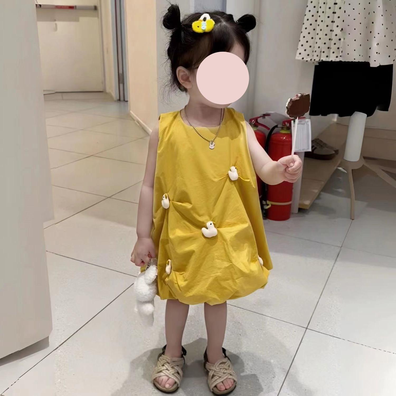 Vestido de Verano para Niñas Bebé Elegante Infantil Personalizado Moderno Marca Coreano Lindo Dibujo Animado Princesa Chaleco Flor Vestido Burbuja