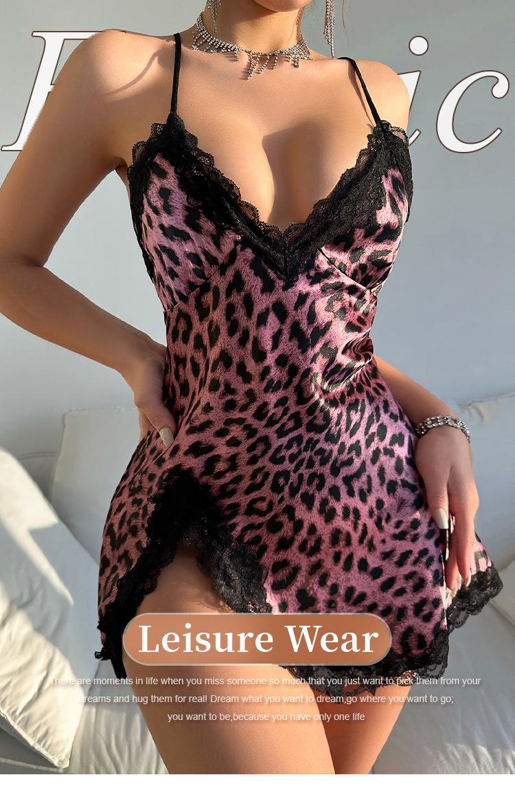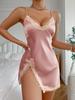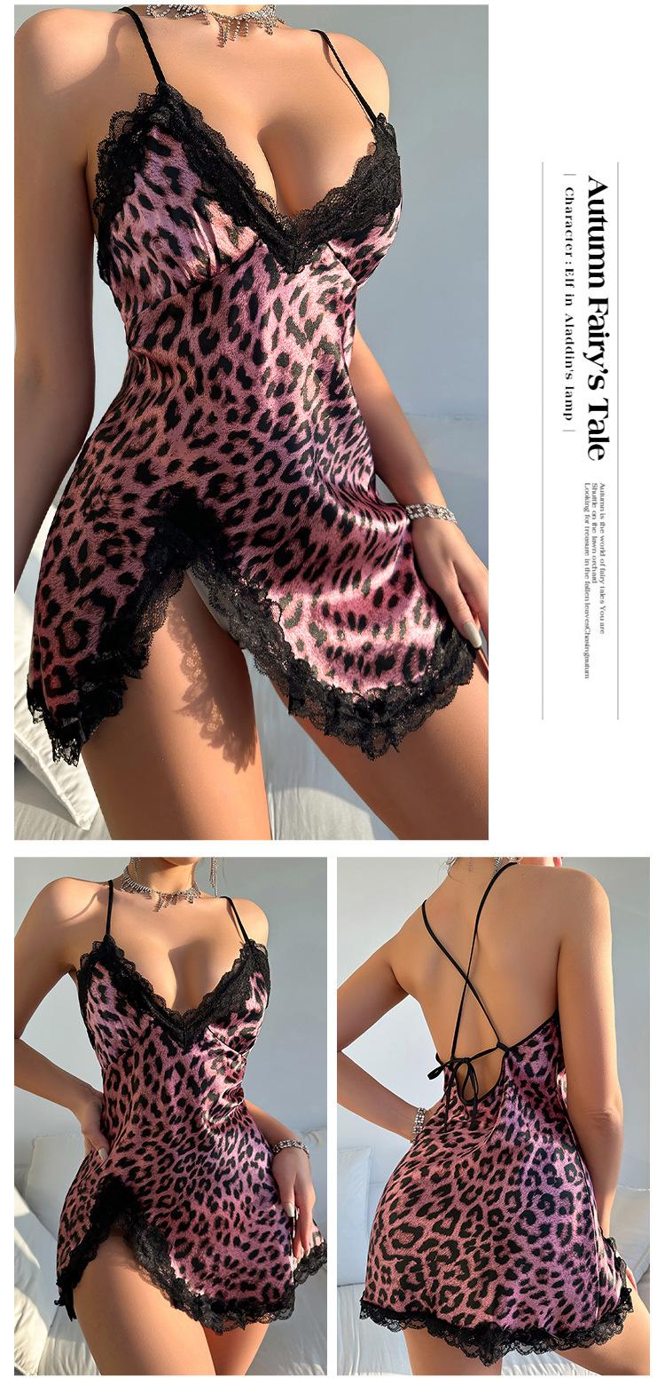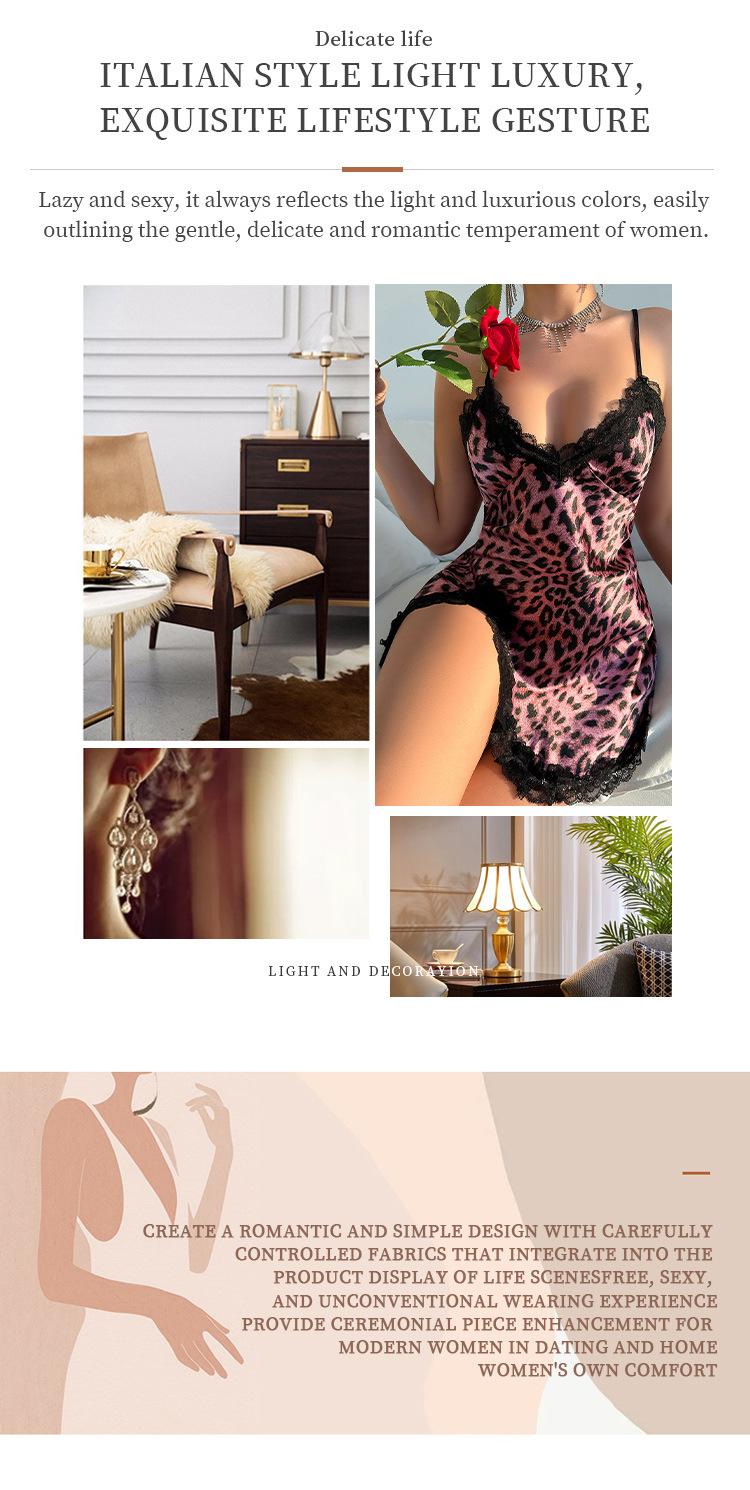 Pijama transfronterizo europeo y americano de moda con cuello en V, espalda descubierta con tirantes, camisón de seda artificial para mujer, ropa de casa casual transpirable