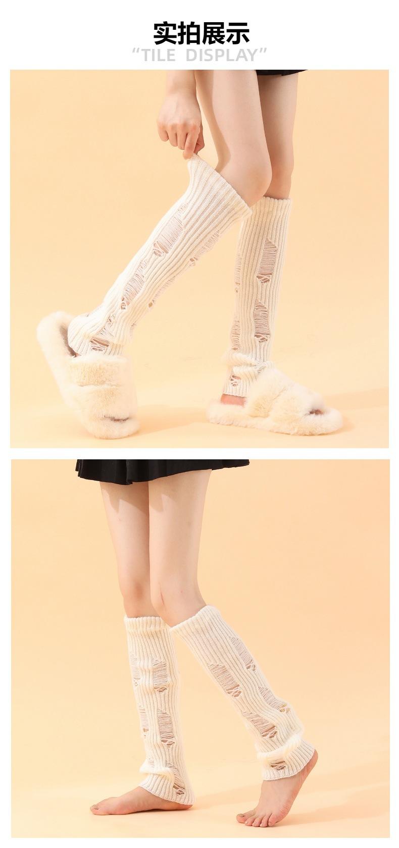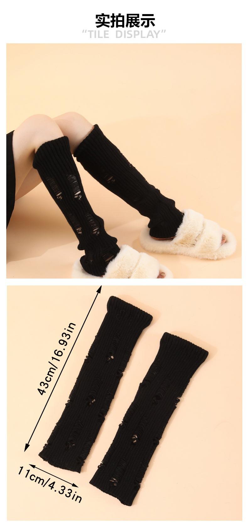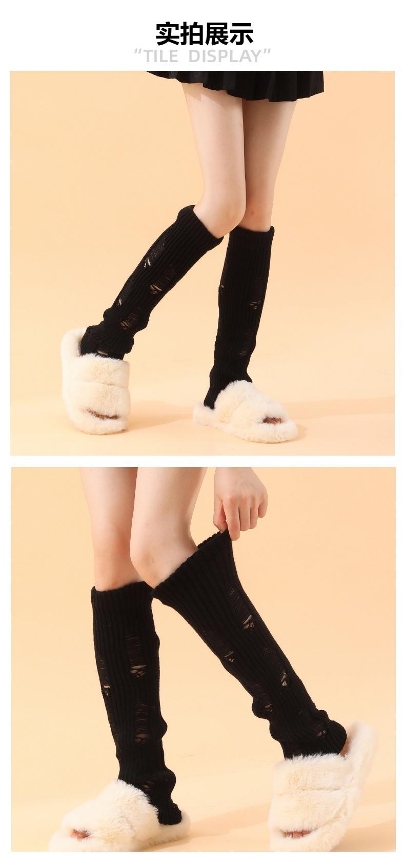 Nuevos calcetines de lana rasgados de punto de estilo japonés para chicas calientes, leggings cálidos de otoño e invierno