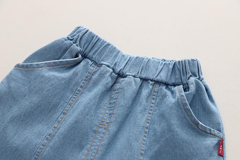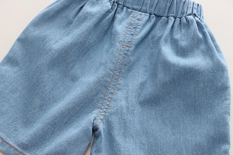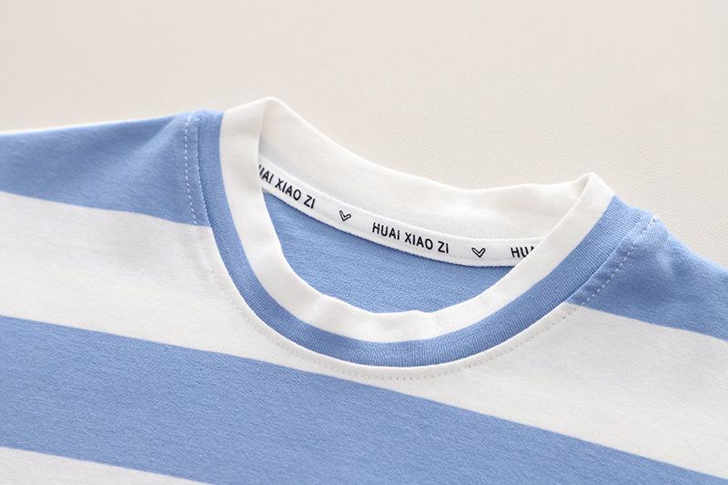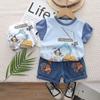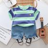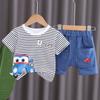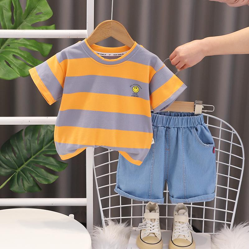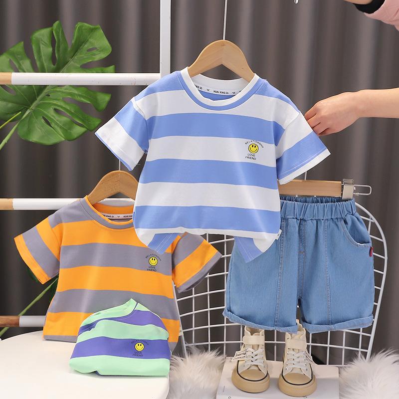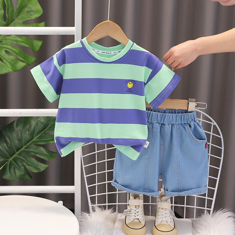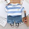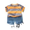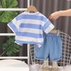Traje de verano a rayas para niños, traje de niño mediano y pequeño, bebé, manga corta, pantalones cortos de mezclilla, ropa, conjunto de dos piezas, Venta al por mayor