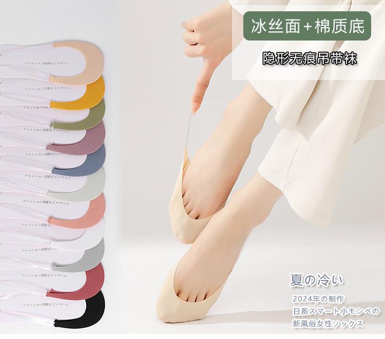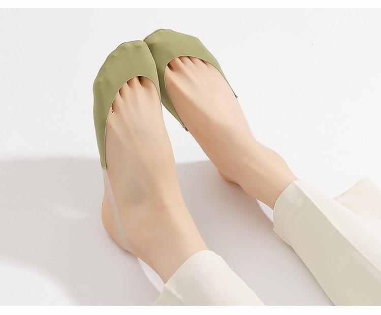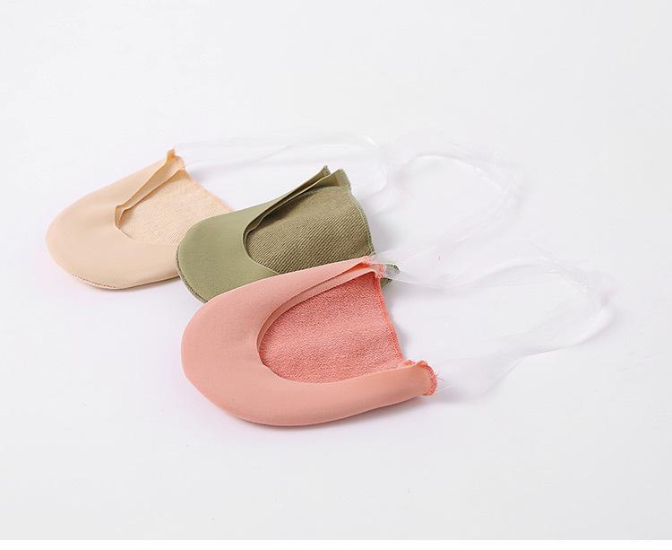 Tirantes de seda de hielo para mujer, calcetines finos de algodón transpirables con parte delantera del pie, calcetines de tacón alto de media palma para mujer, venta al por mayor