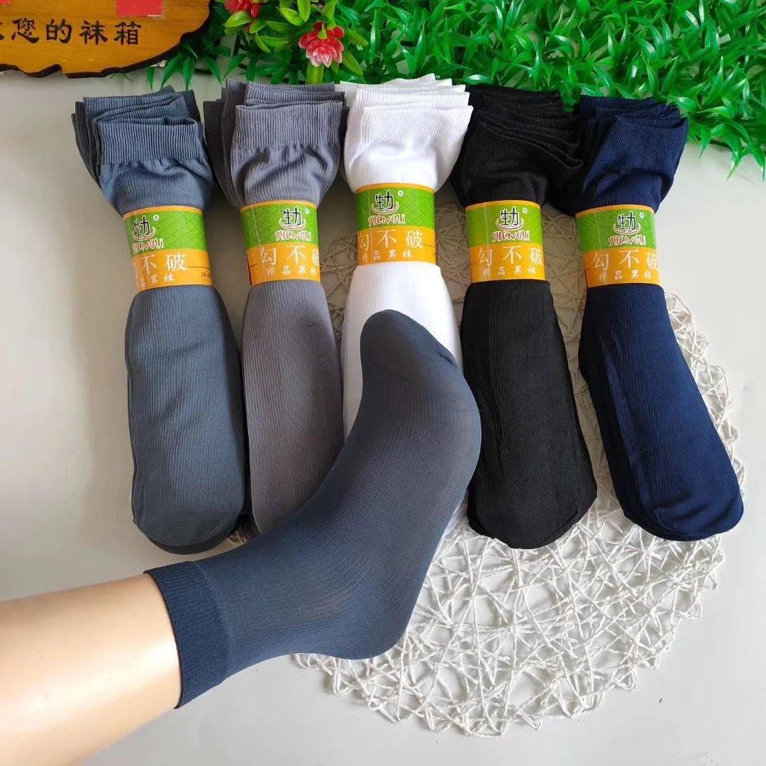 Primavera y verano nuevos calcetines de gancho para hombre que no se rompen calcetines de acero engrosados calcetines de seda anti-gancho duraderos fabricantes mayoristas de calcetines de negocios