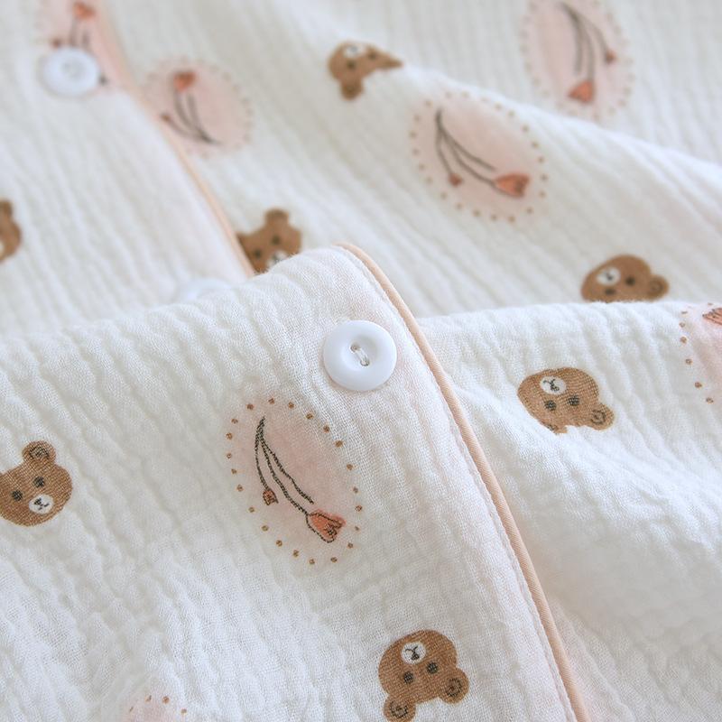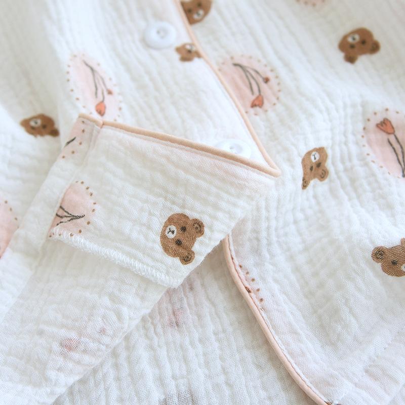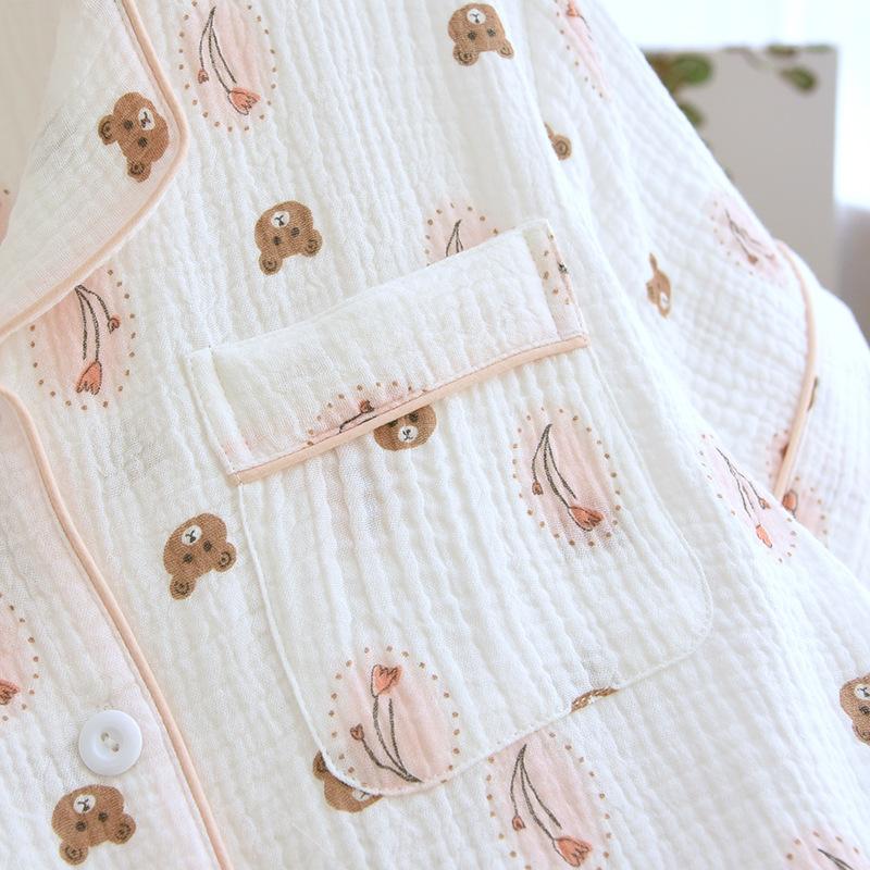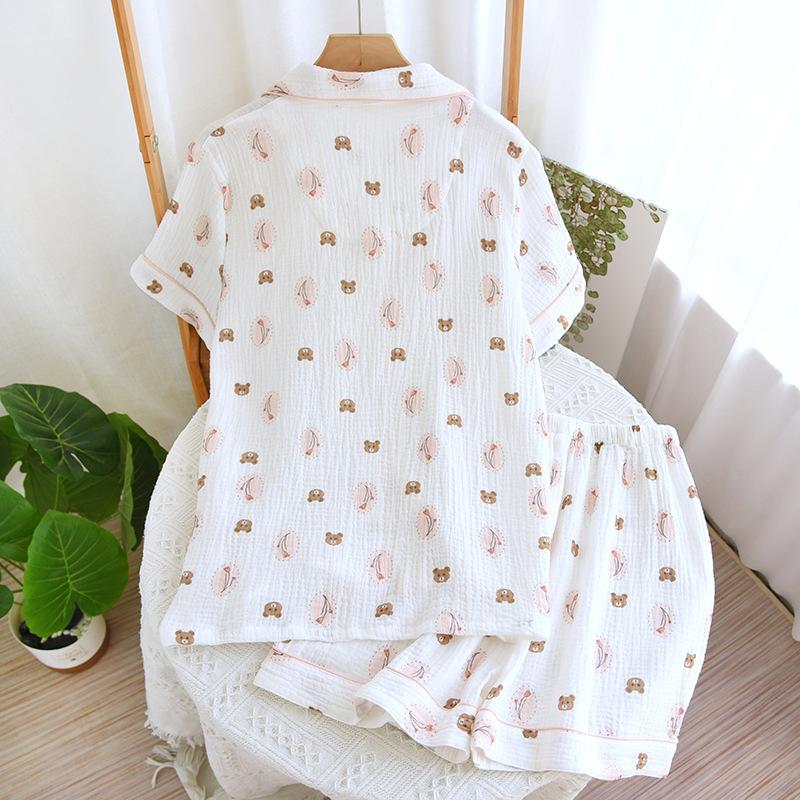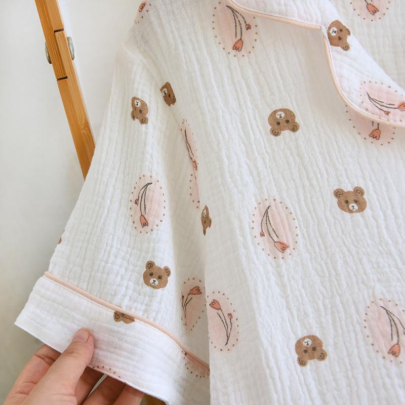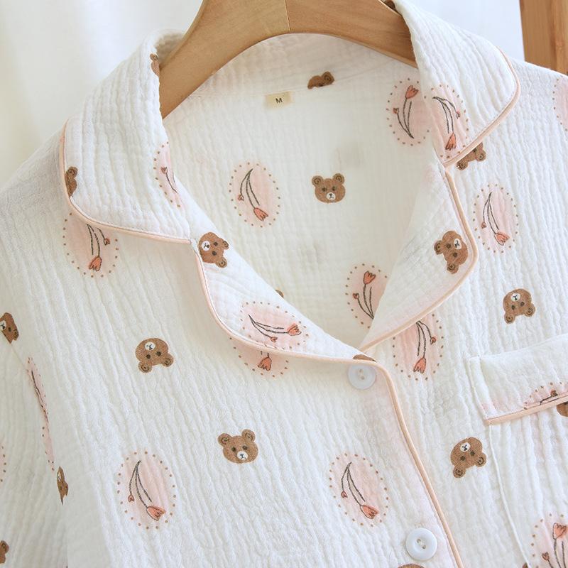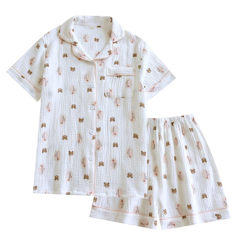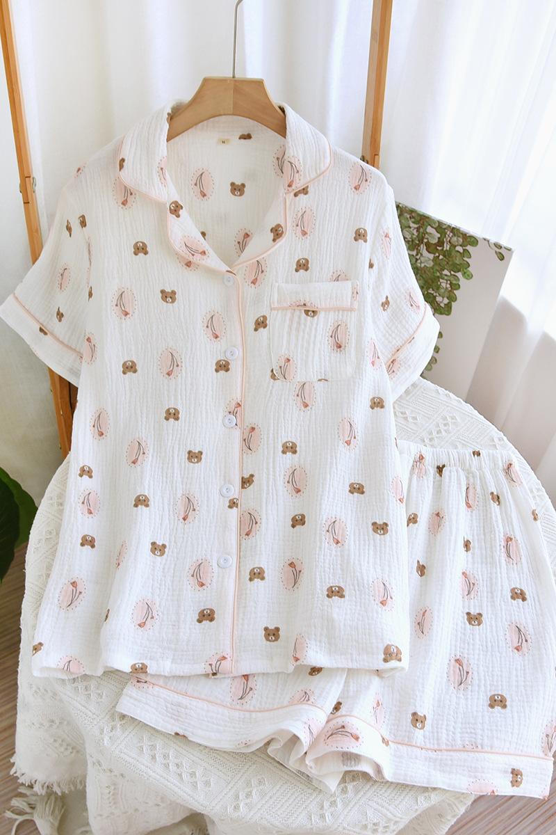 Crepe Cartoon Bear Lapel Short-Sleeve Shorts