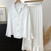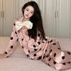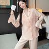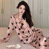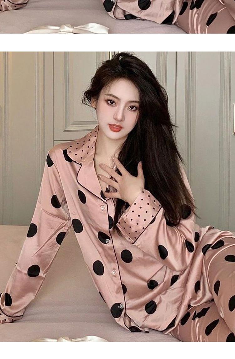 Pijama de manga larga de seda de hielo para mujer, otoño, novias, punto de onda dulce, se puede usar al aire libre, ropa de casa japonesa, traje de dos piezas al por mayor
