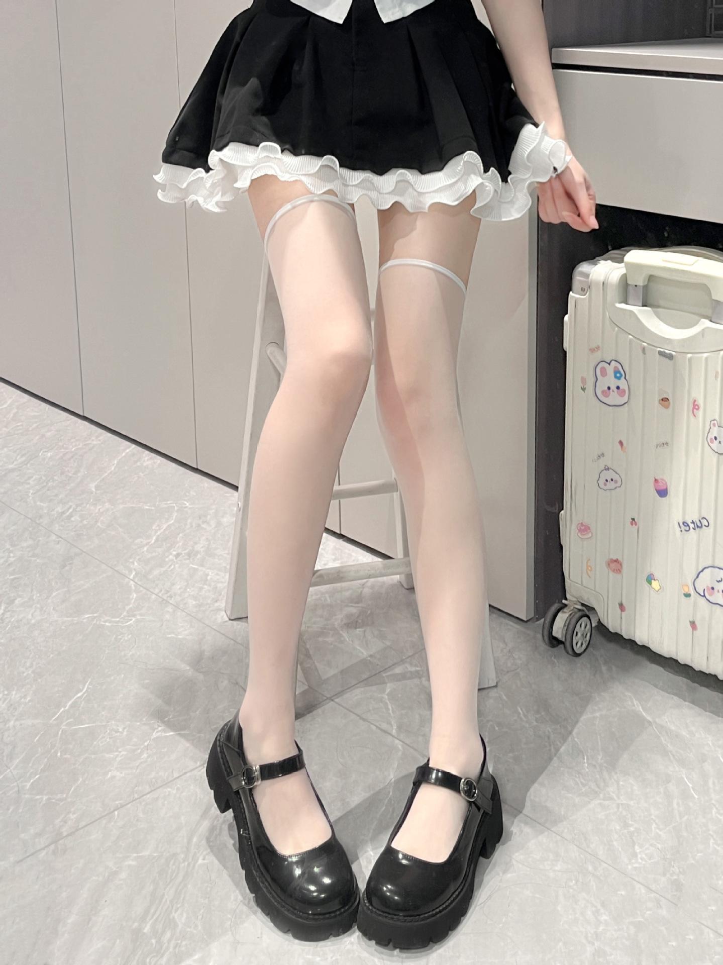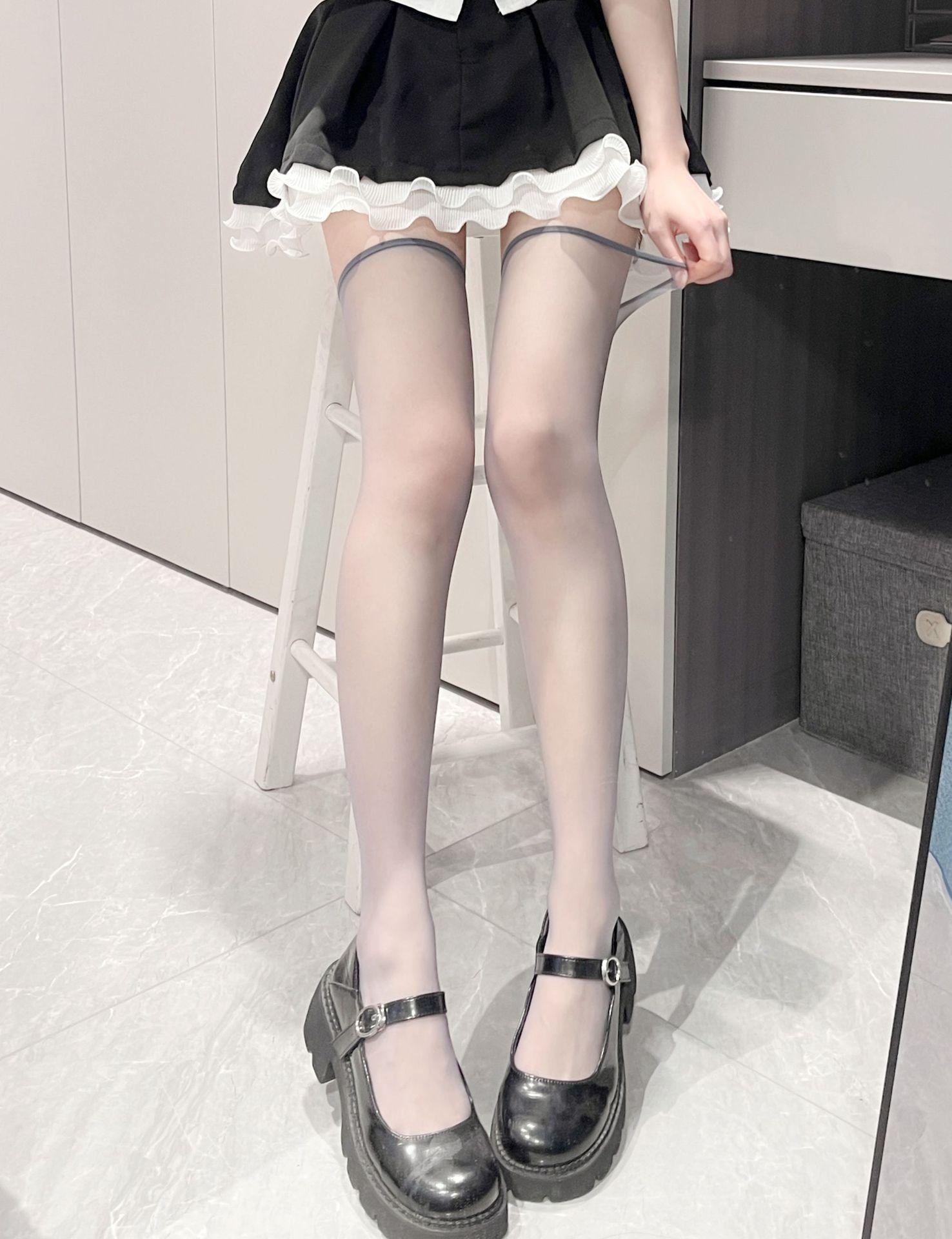 Primavera y Verano JK ultrafinas borde estrecho chica hot OD tubo largo micro transparentes sobre la rodilla piel negra invisibles modeladoras de piernas medias negras para mujer