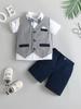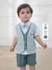 Traje británico de caballero para niños de cuentos infantiles, chaleco falso de dos piezas de manga corta de verano para niño, camisa de punto con pajarita