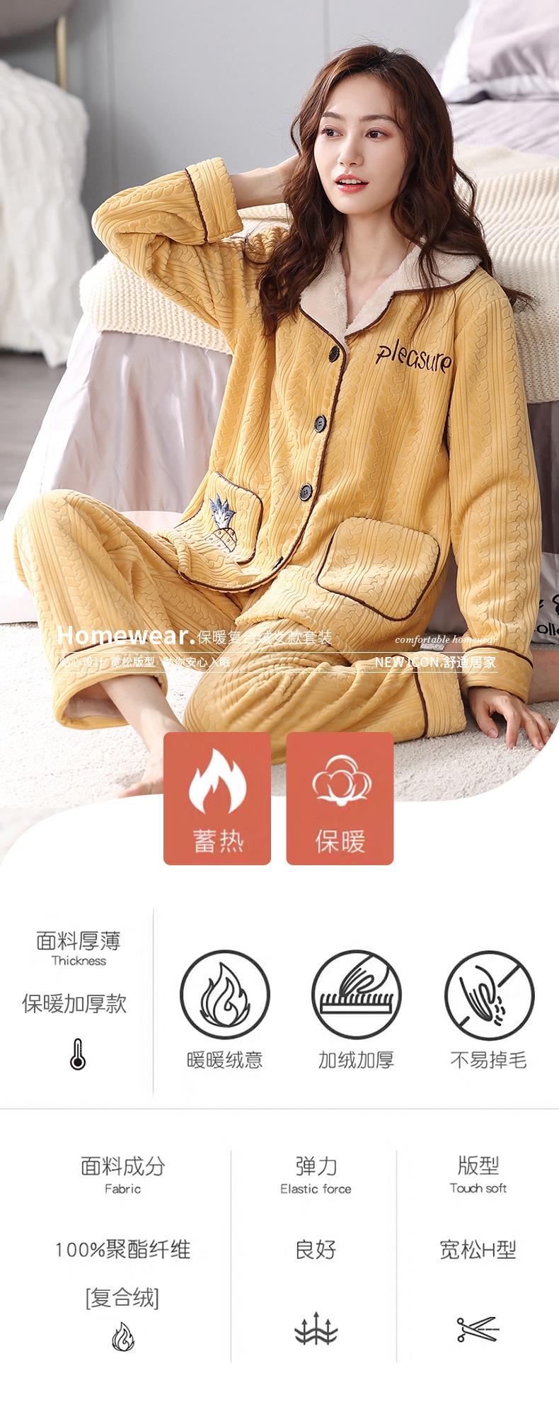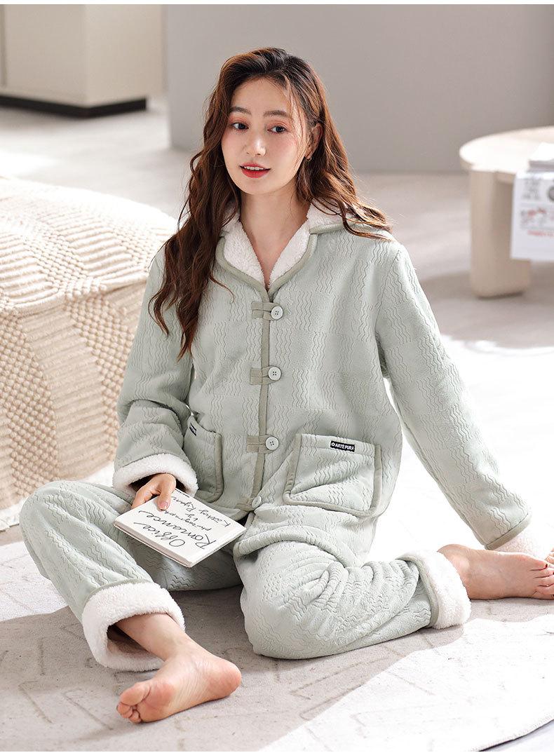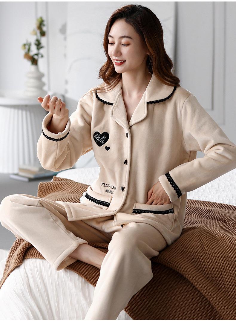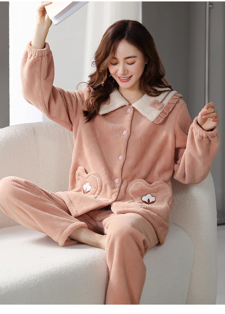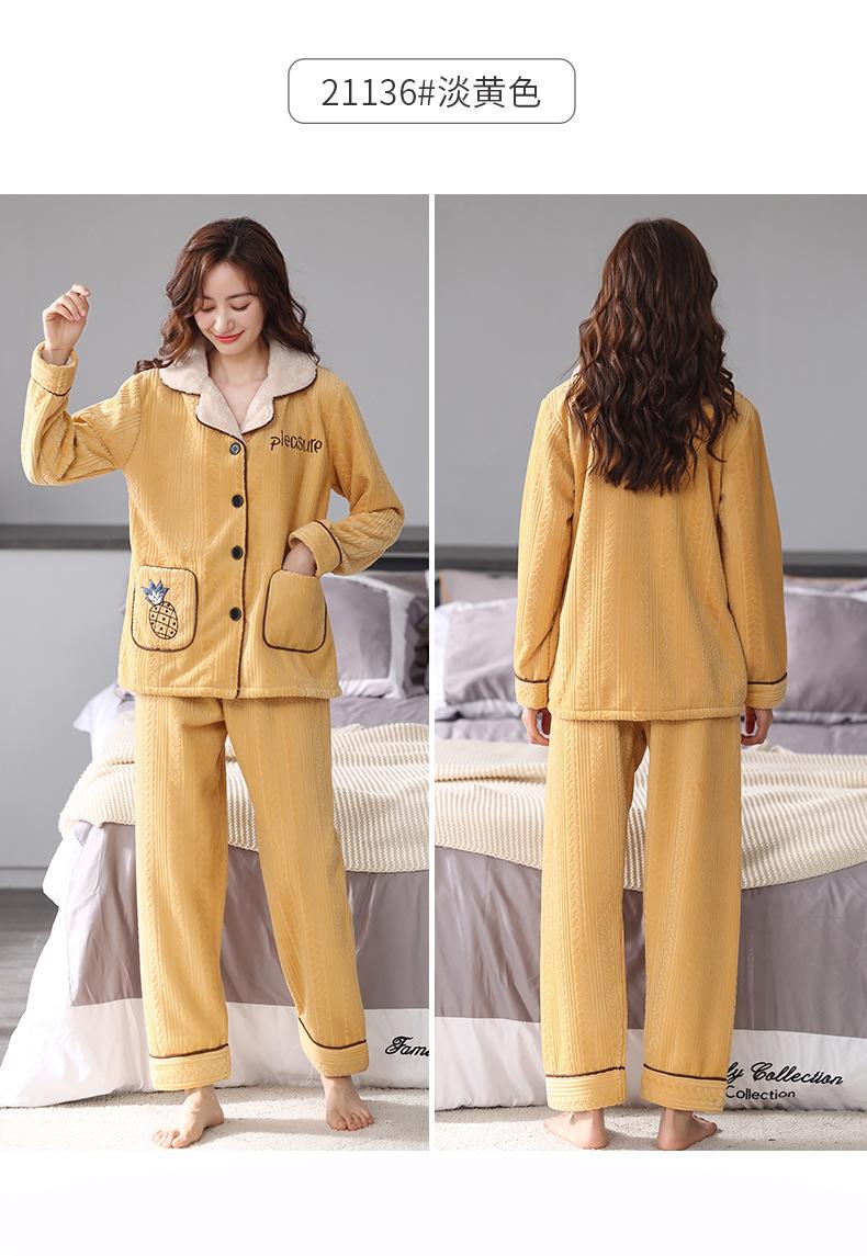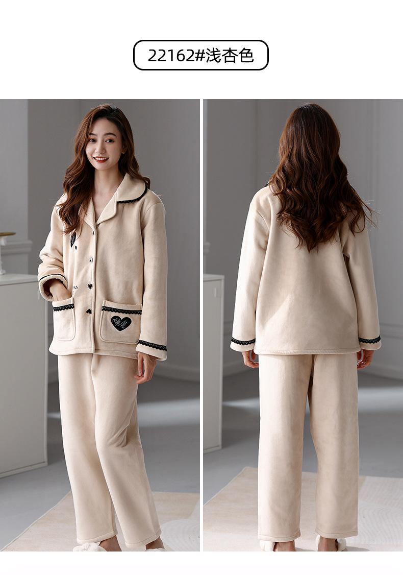 Nuevo pijama de mujer de otoño e invierno compuesto de terciopelo con forro polar, ropa exterior gruesa, estilo dulce y lindo, ropa de casa, traje de mujer