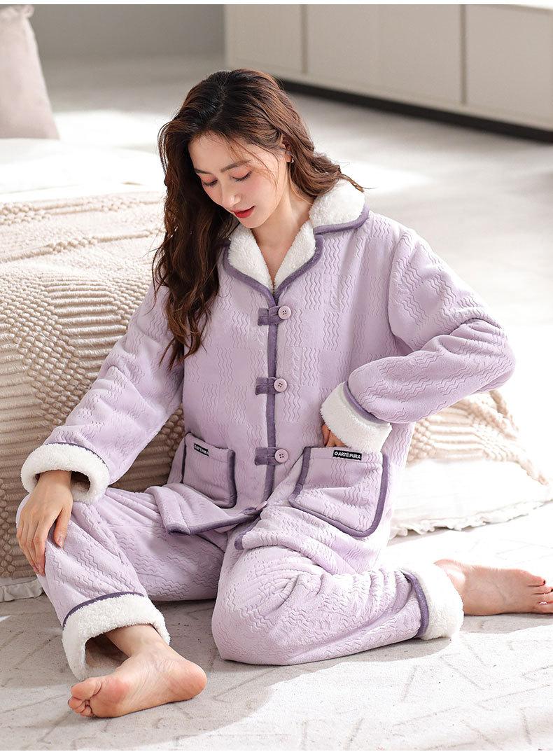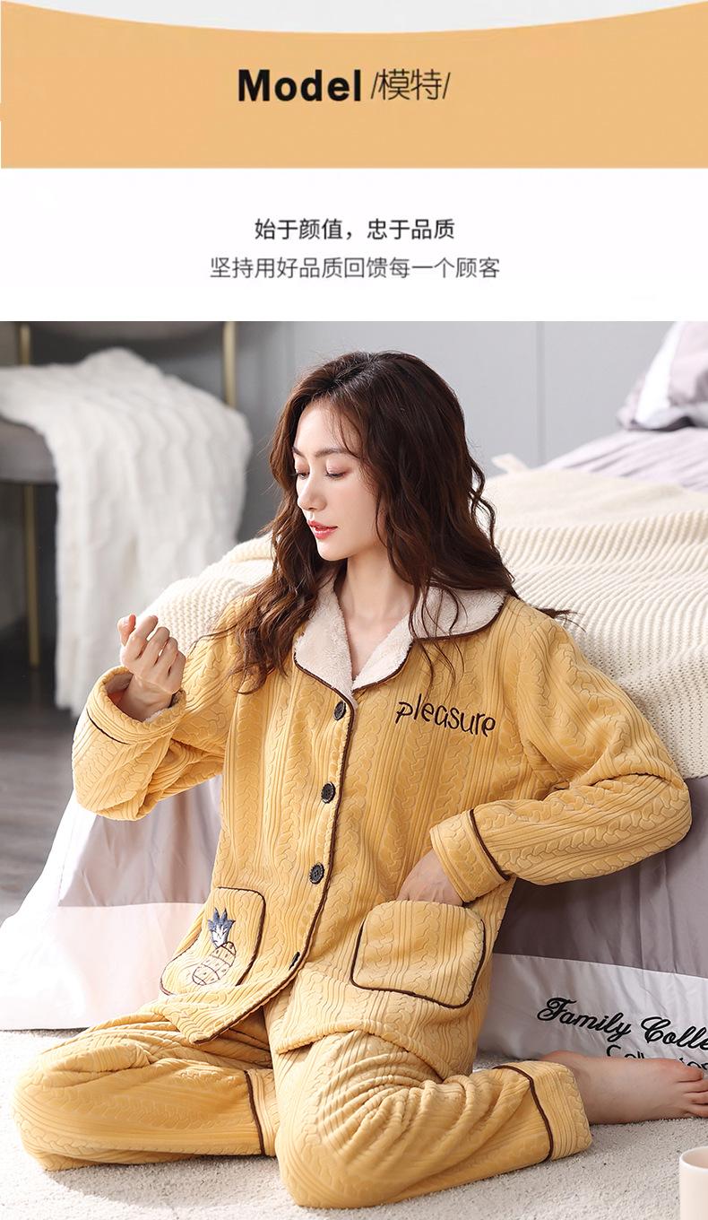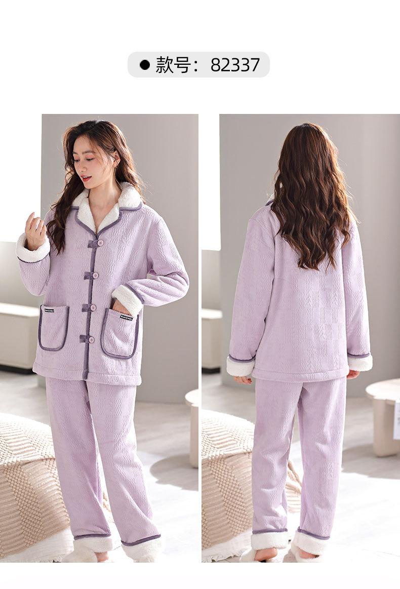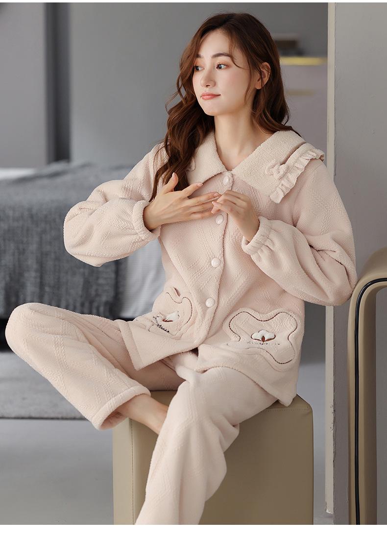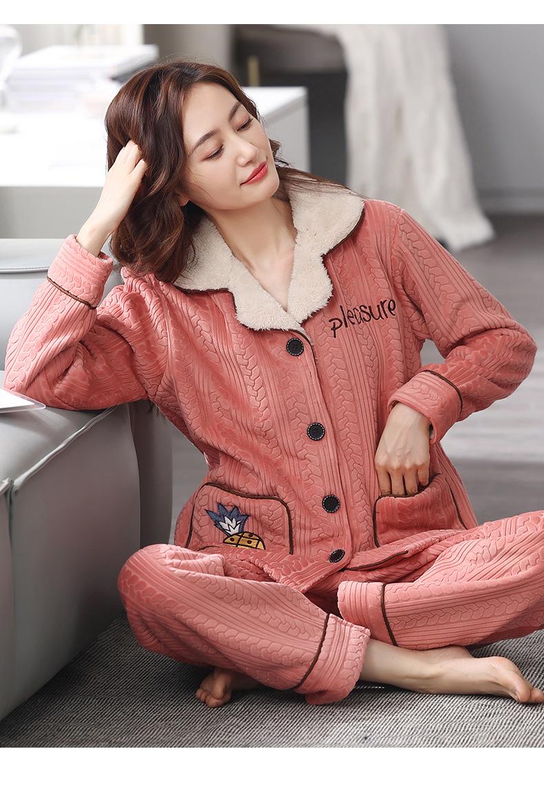 Nuevo pijama de mujer de otoño e invierno compuesto de terciopelo con forro polar, ropa exterior gruesa, estilo dulce y lindo, ropa de casa, traje de mujer