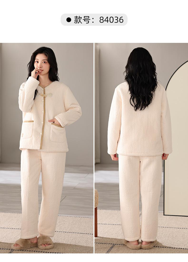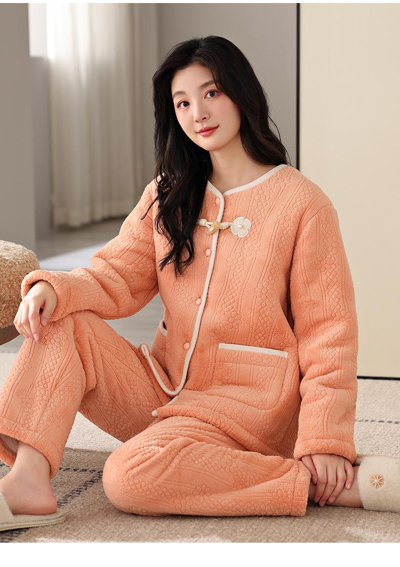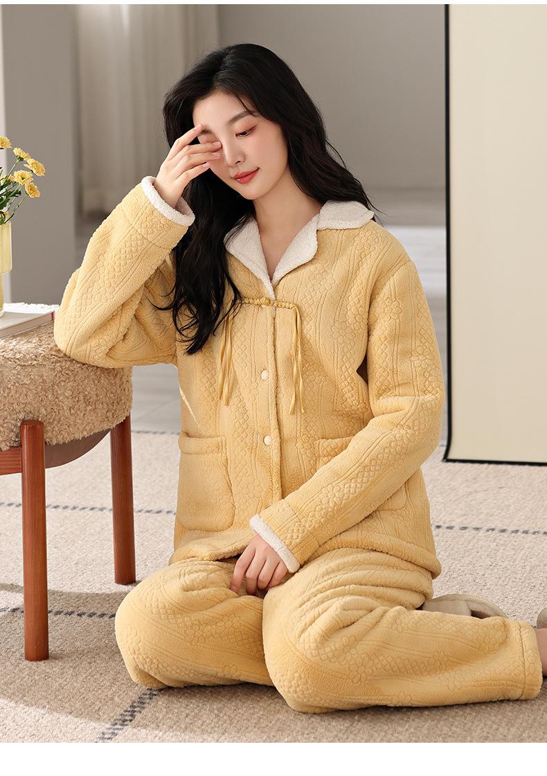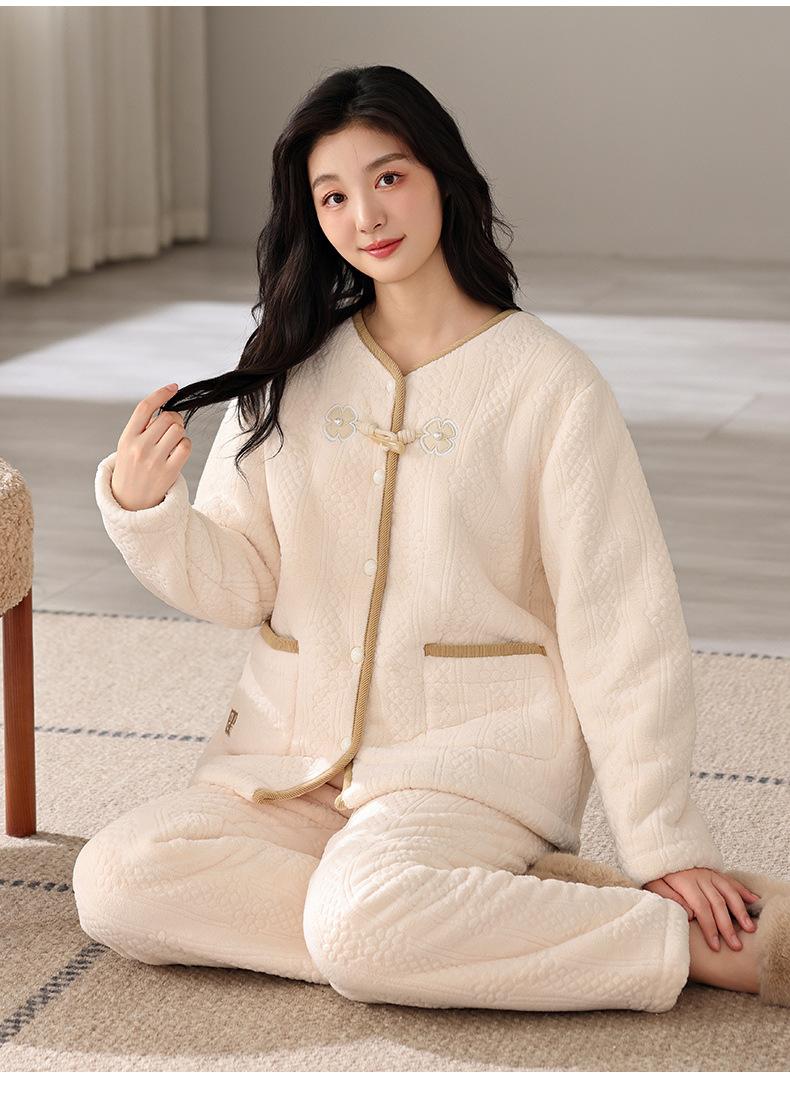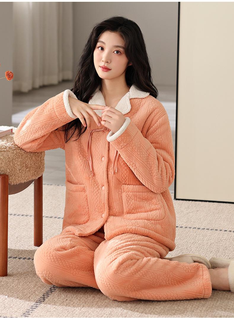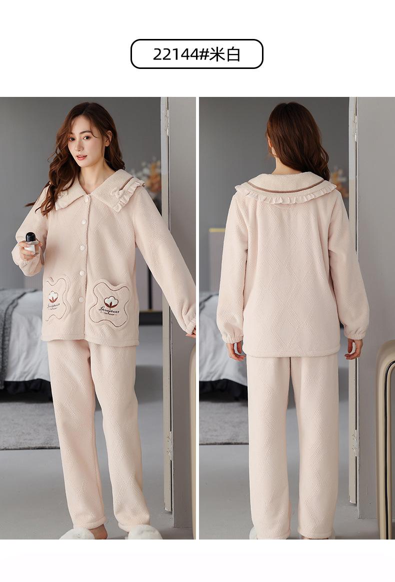 Nuevo pijama de mujer de otoño e invierno compuesto de terciopelo con forro polar, ropa exterior gruesa, estilo dulce y lindo, ropa de casa, traje de mujer