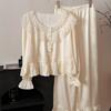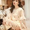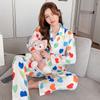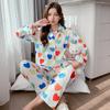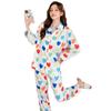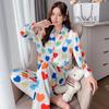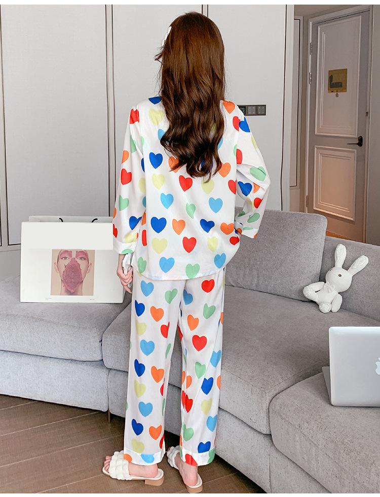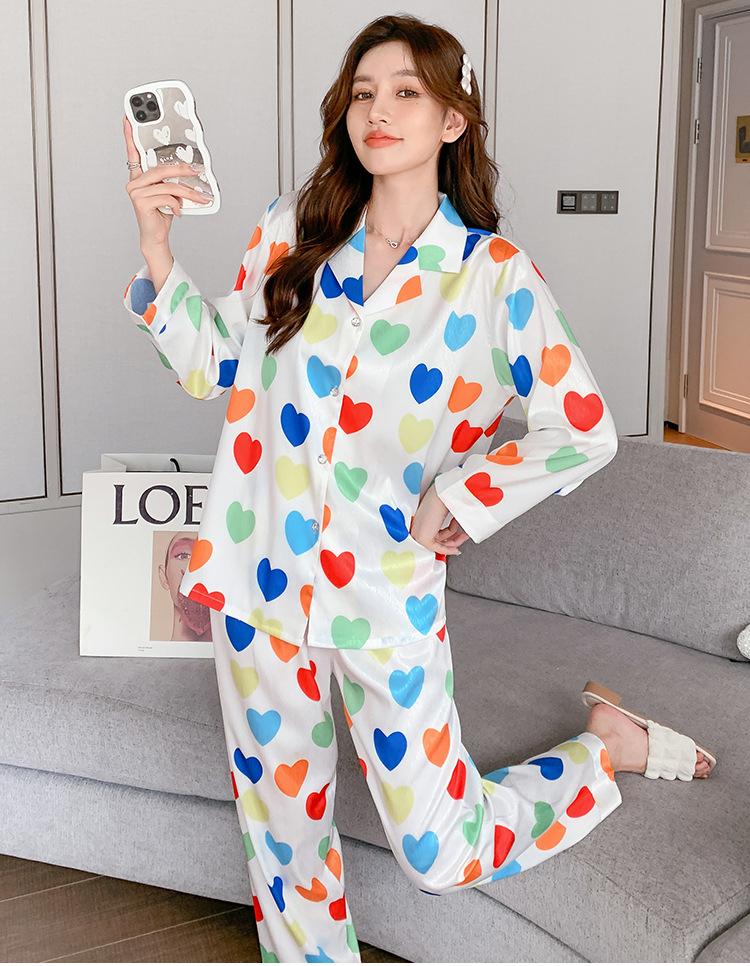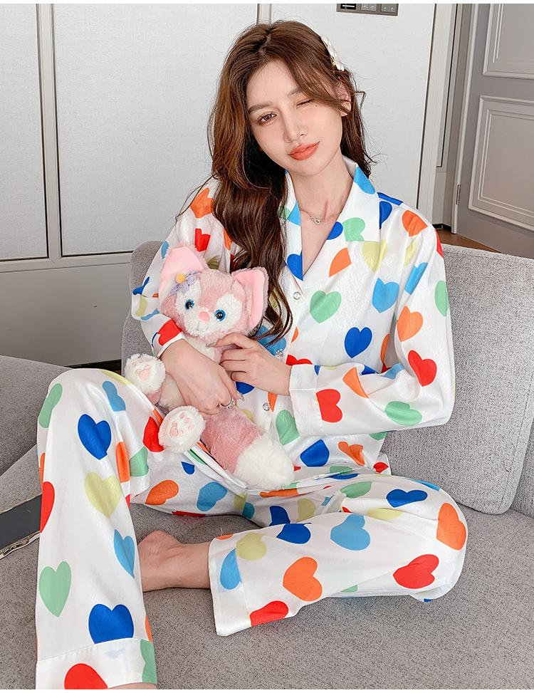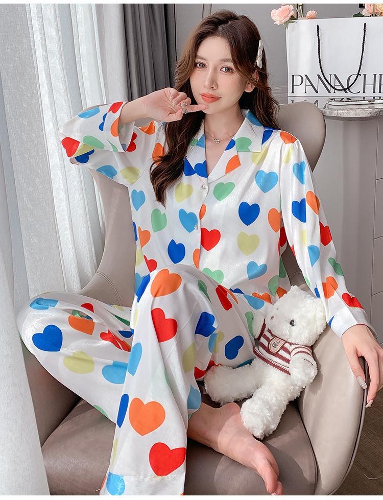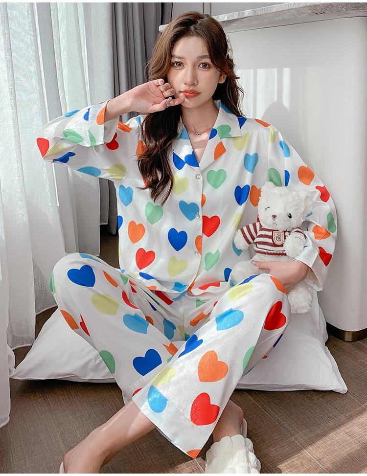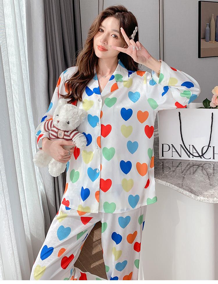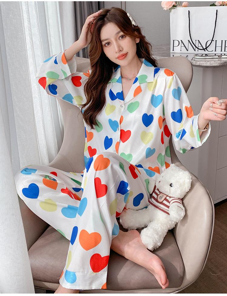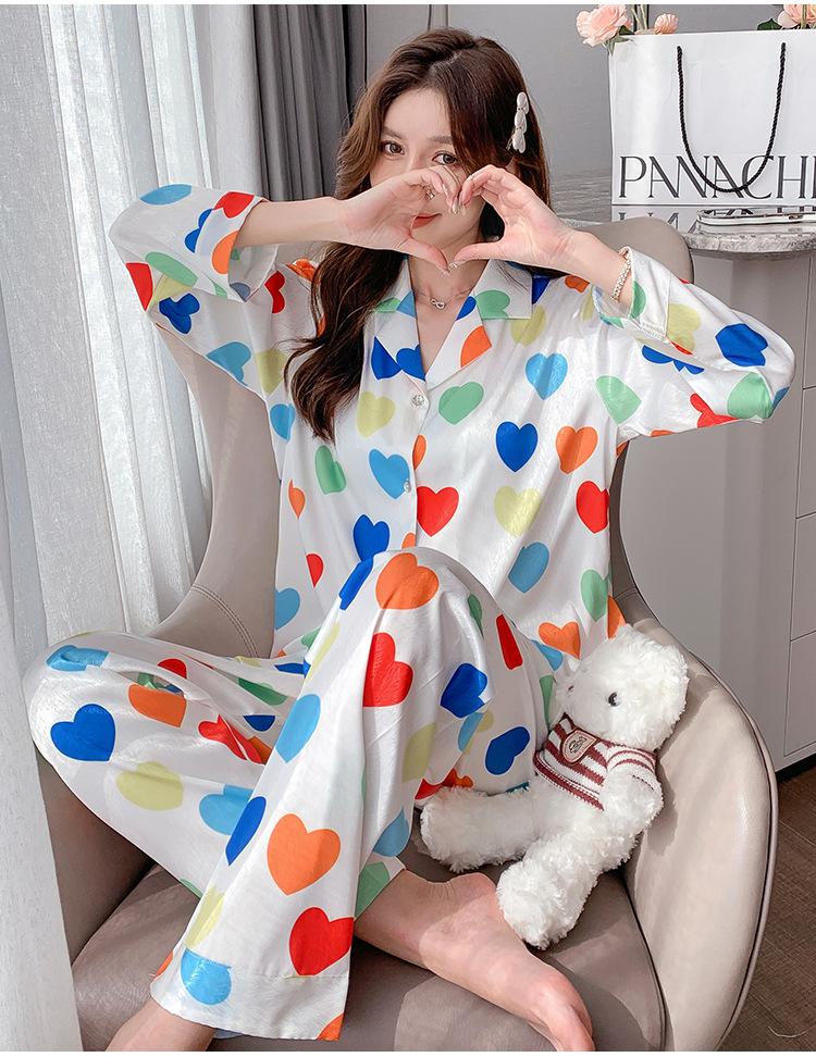 Pijama de seda de hielo con solapa y estampado digital japonés de corazón de melocotón, ropa de hogar femenina de seda para otoño de 2022