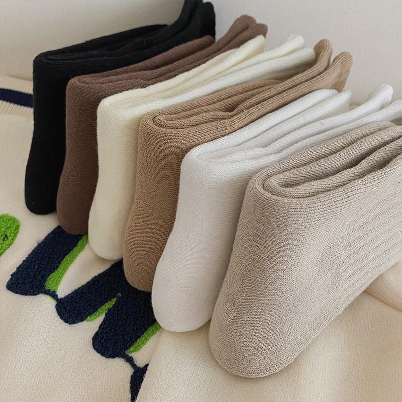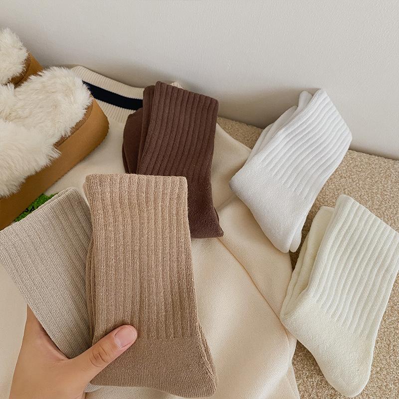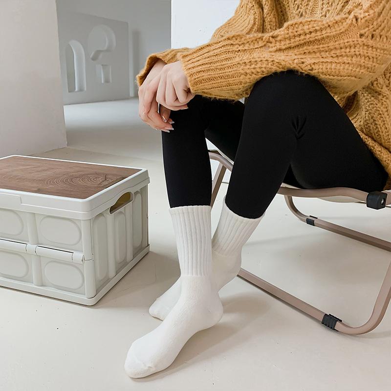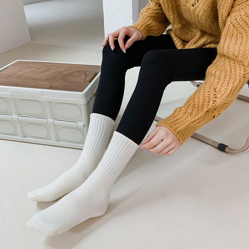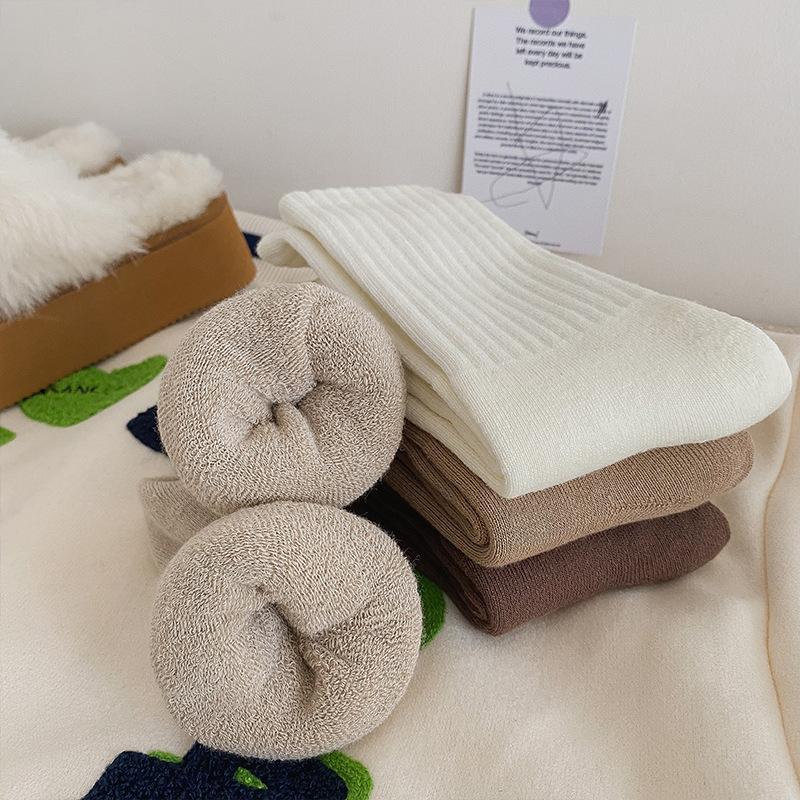 Calcetines para Mujer Otoño e Invierno Calcetines de Media Caña Algodón Color Sólido Invierno Calcetines Cálidos para Mujer con Forro Polar Invierno Calcetines Gruesos de Media Caña con Forro Polar