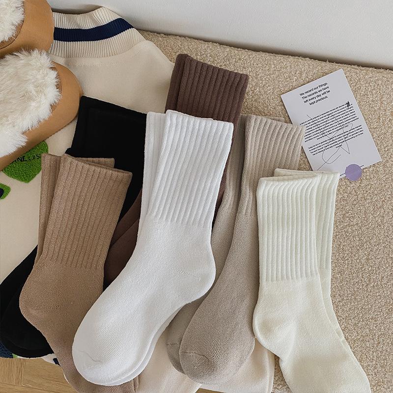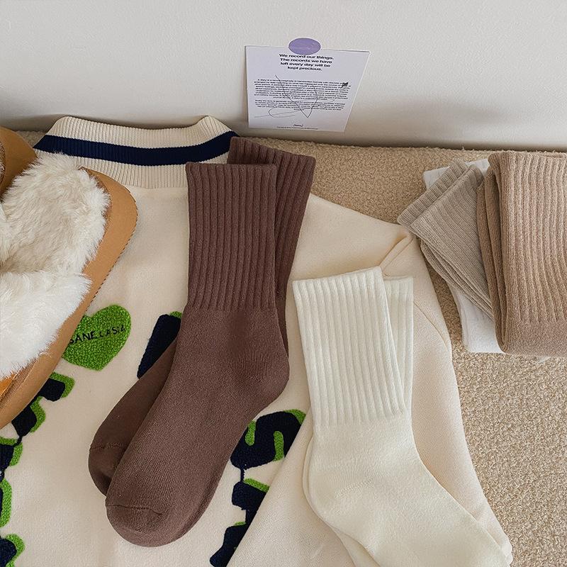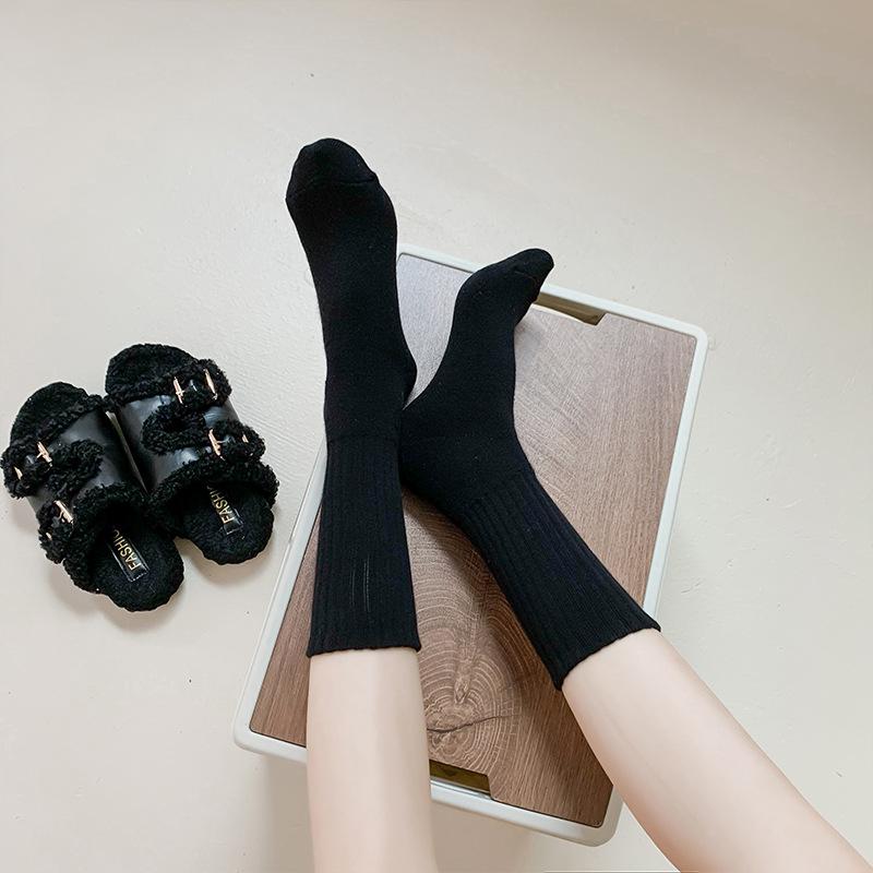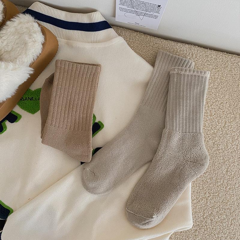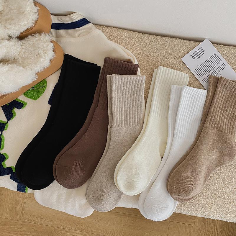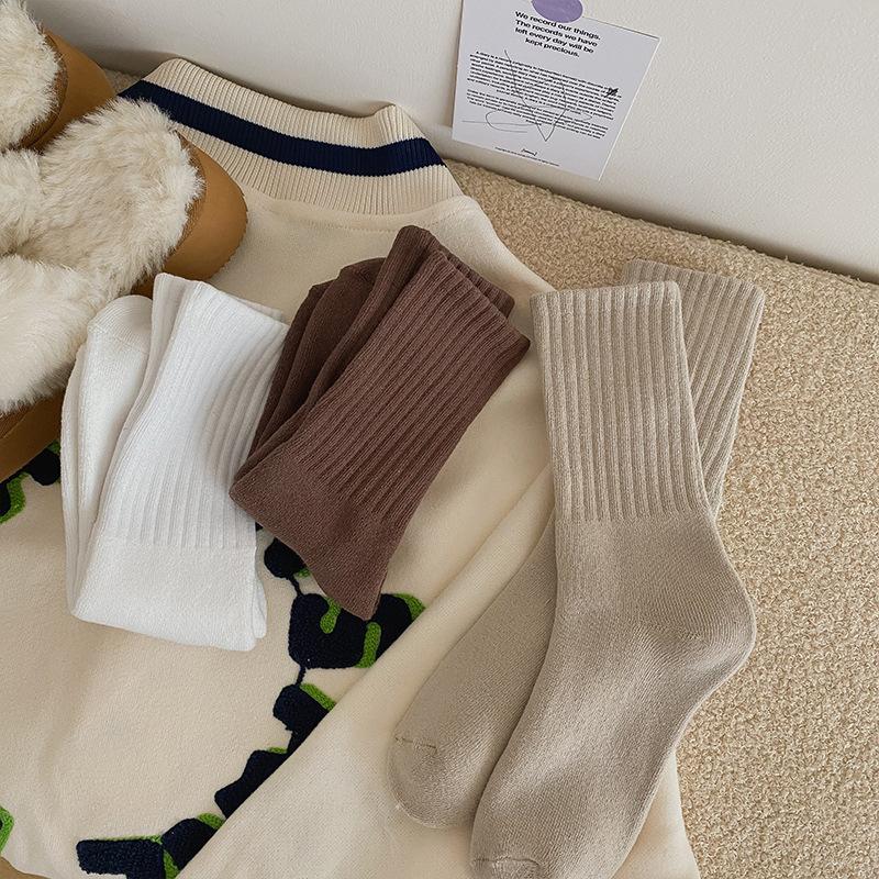 Calcetines para Mujer Otoño e Invierno Calcetines de Media Caña Algodón Color Sólido Invierno Calcetines Cálidos para Mujer con Forro Polar Invierno Calcetines Gruesos de Media Caña con Forro Polar