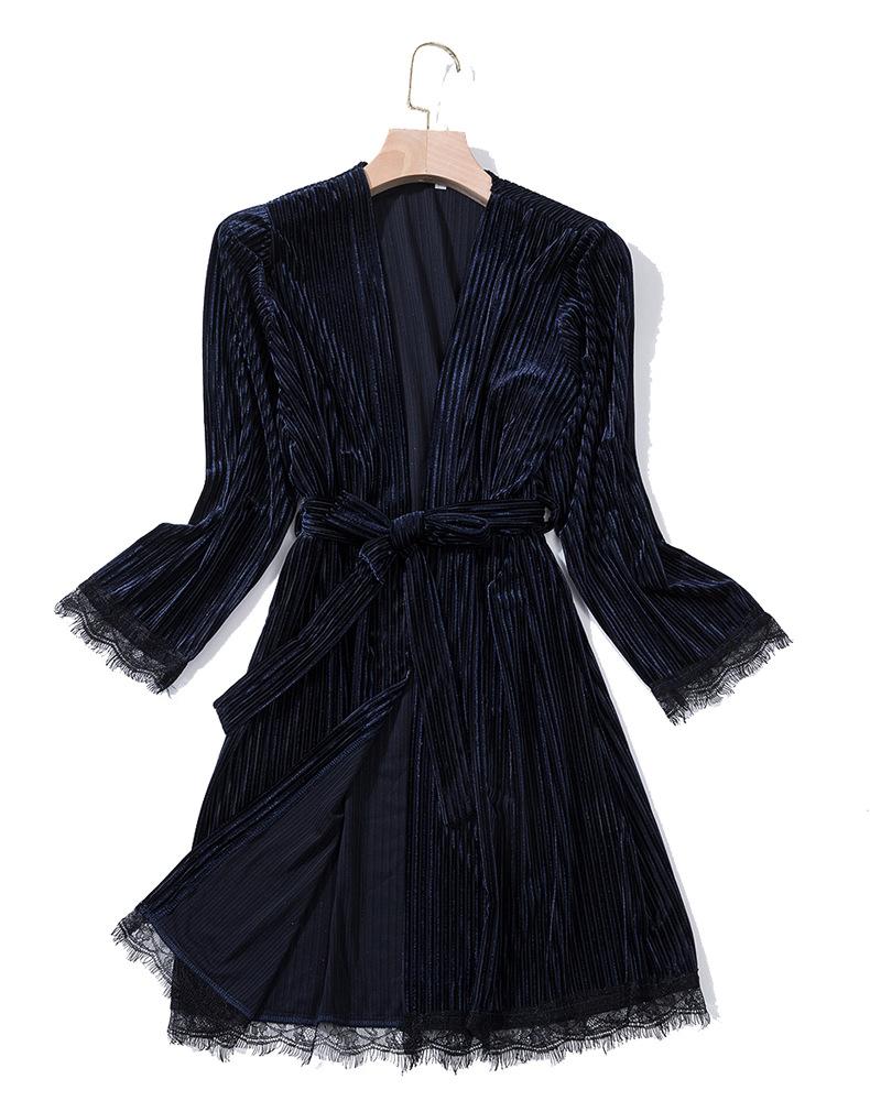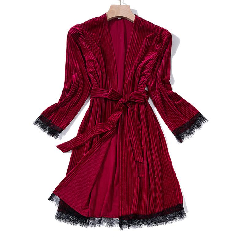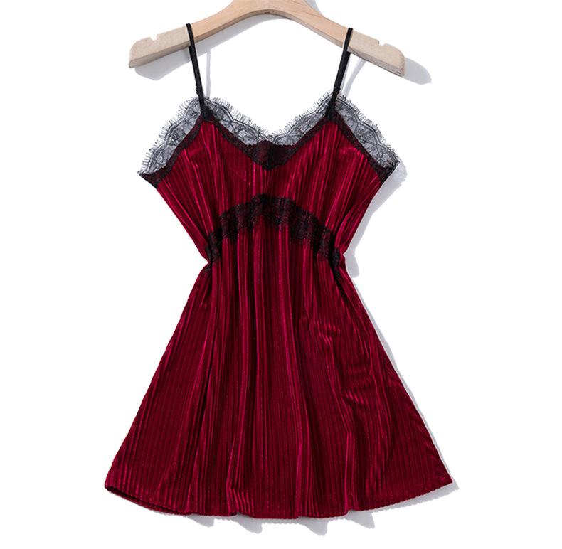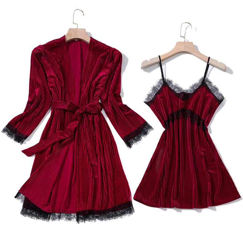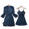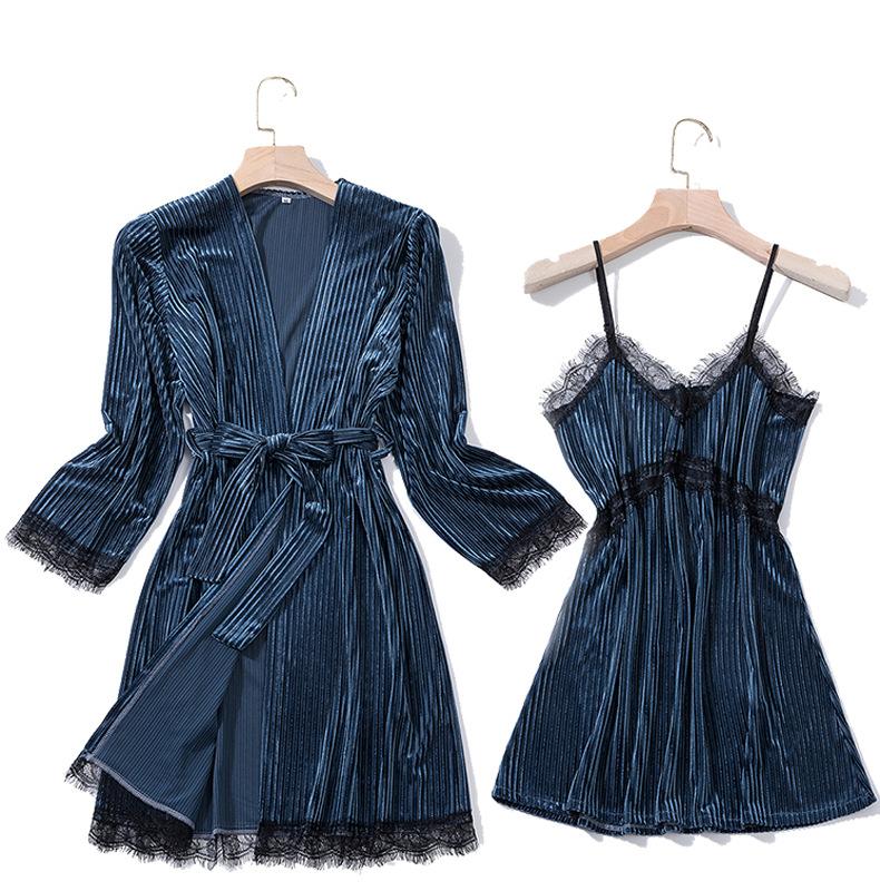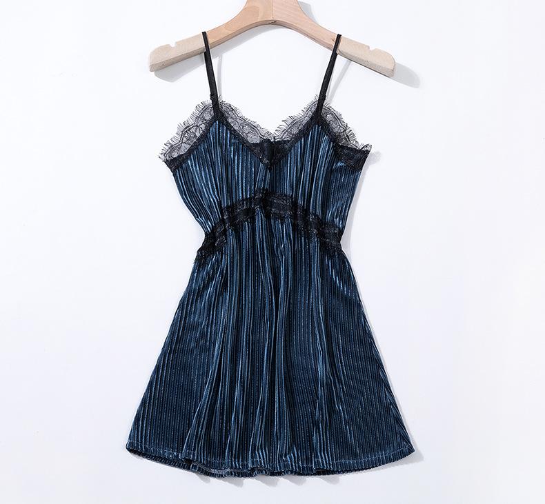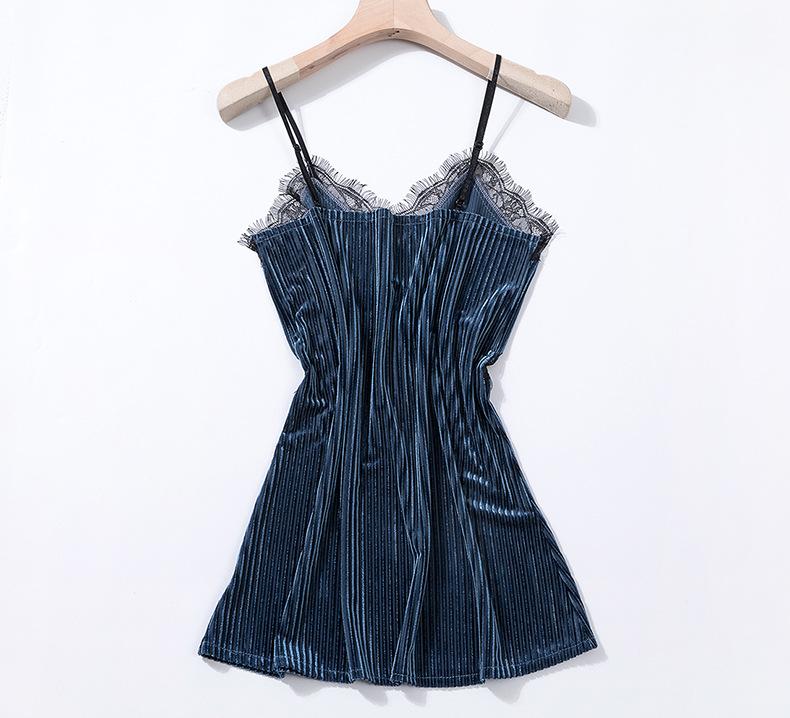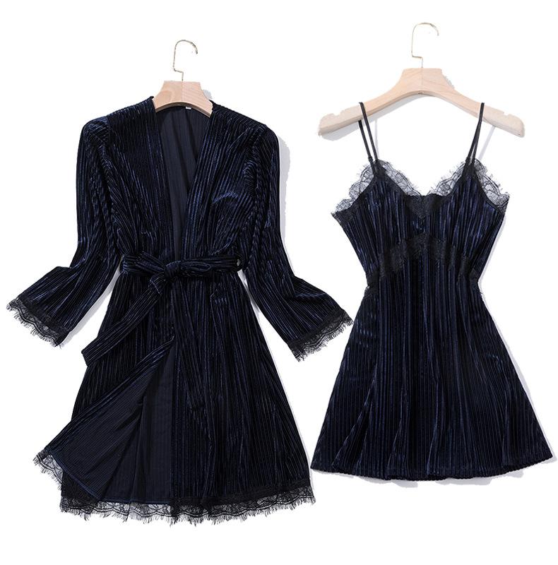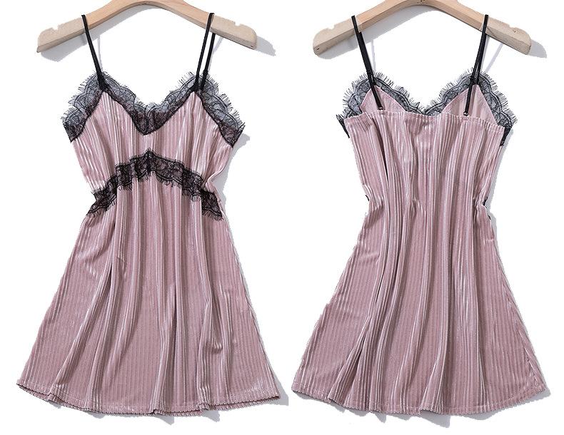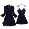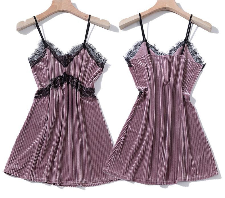 Pijama de terciopelo dorado de otoño e invierno para mujer, nuevo camisón de encaje negro con tirantes sexy, traje de dos piezas para el hogar