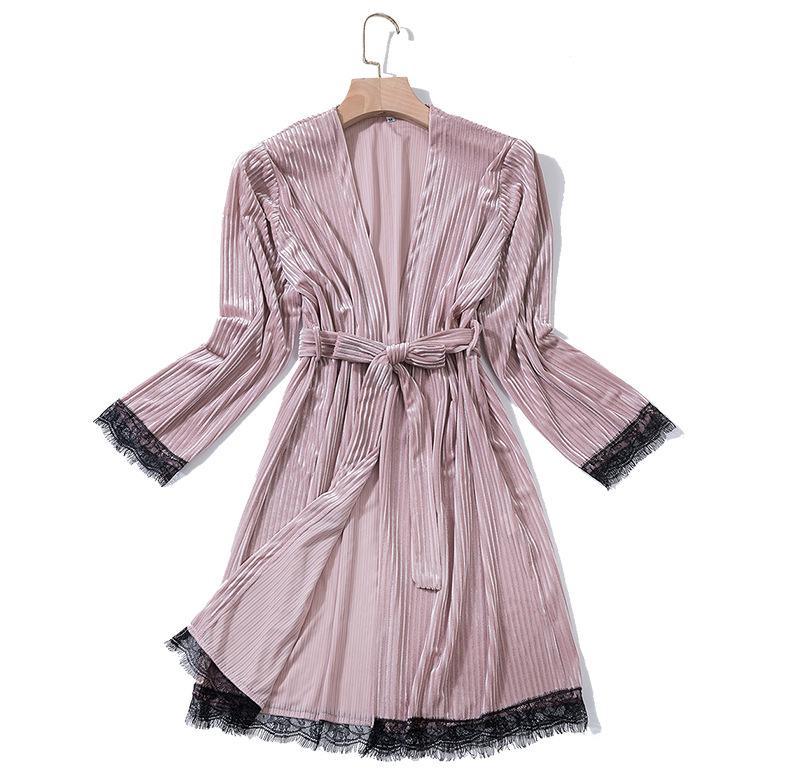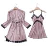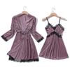 Pijamas de pareja nuevos de verano 2022 para mujer, estilo fino, de red, de celebridad, de color sólido, para el hogar, se pueden usar al aire libre, cárdigan de manga larga, ropa para el hogar¥55.0066 libras