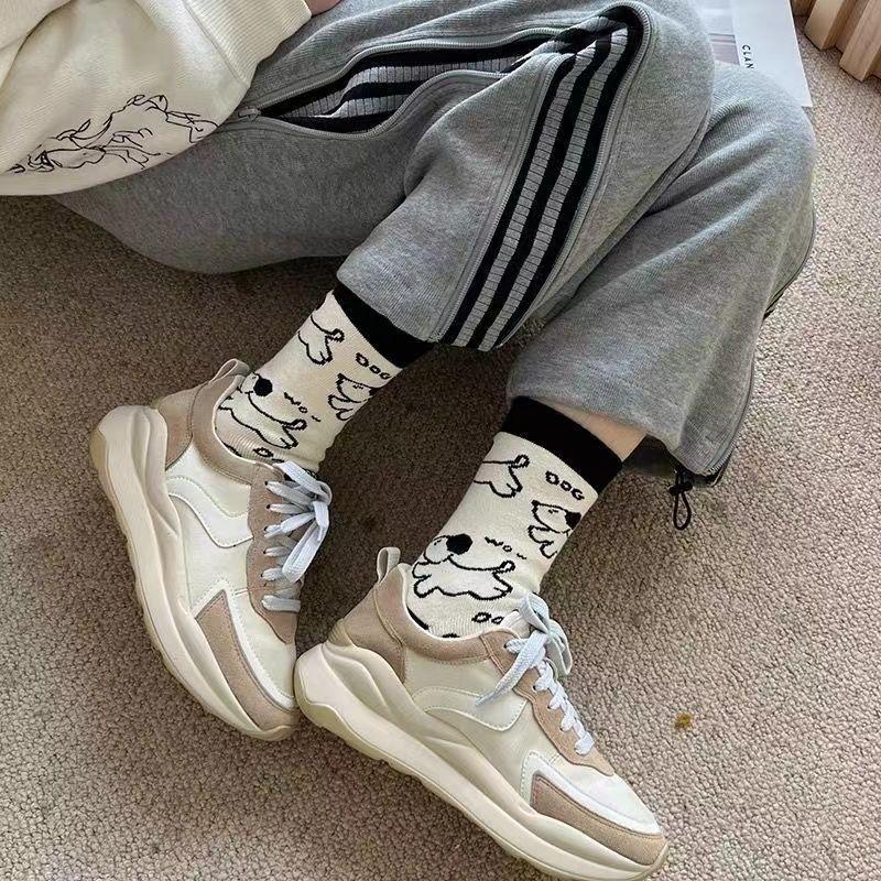 Calcetines gruesos de otoño e invierno para mujer, cálidos, lindos, de dibujos animados, calcetines de moda ins, calcetines de media caña, calcetines de cachorro, estilo universitario