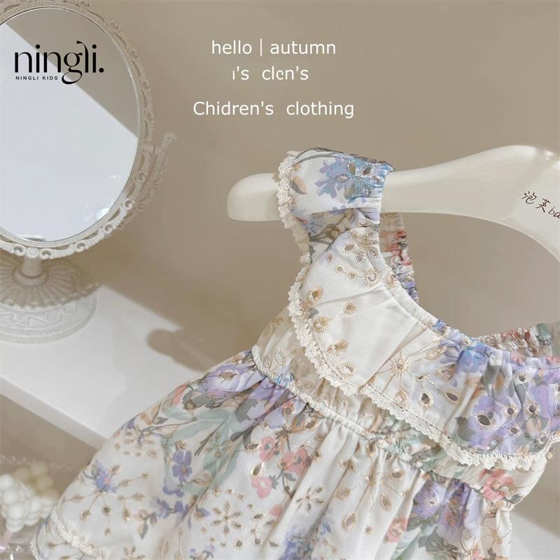 Vestido de Verano para Niñas Ningli 25 Nuevo Floral Francés Falda Infantil Moda Niña Vestido de Princesa Tirantes Trendy