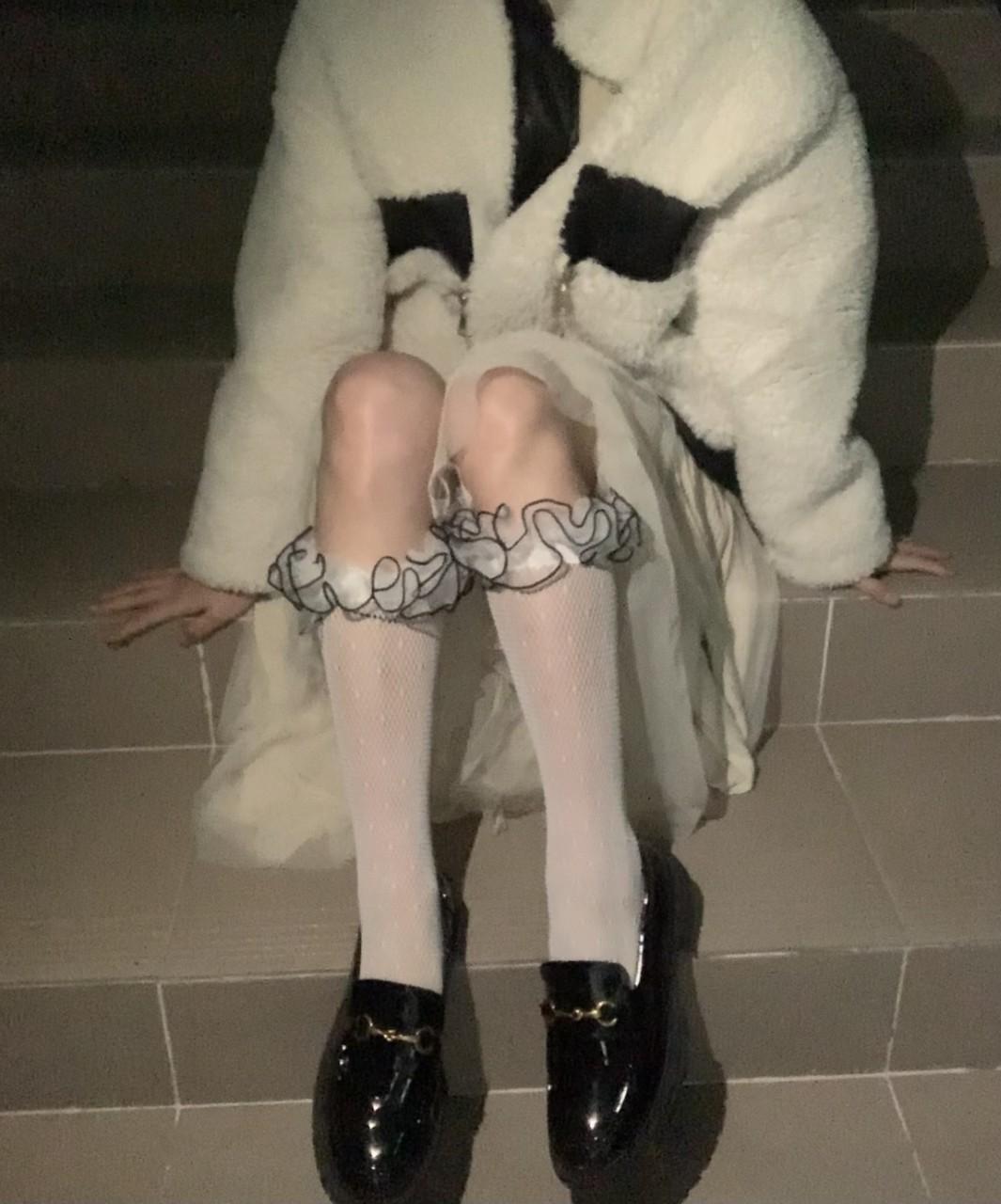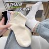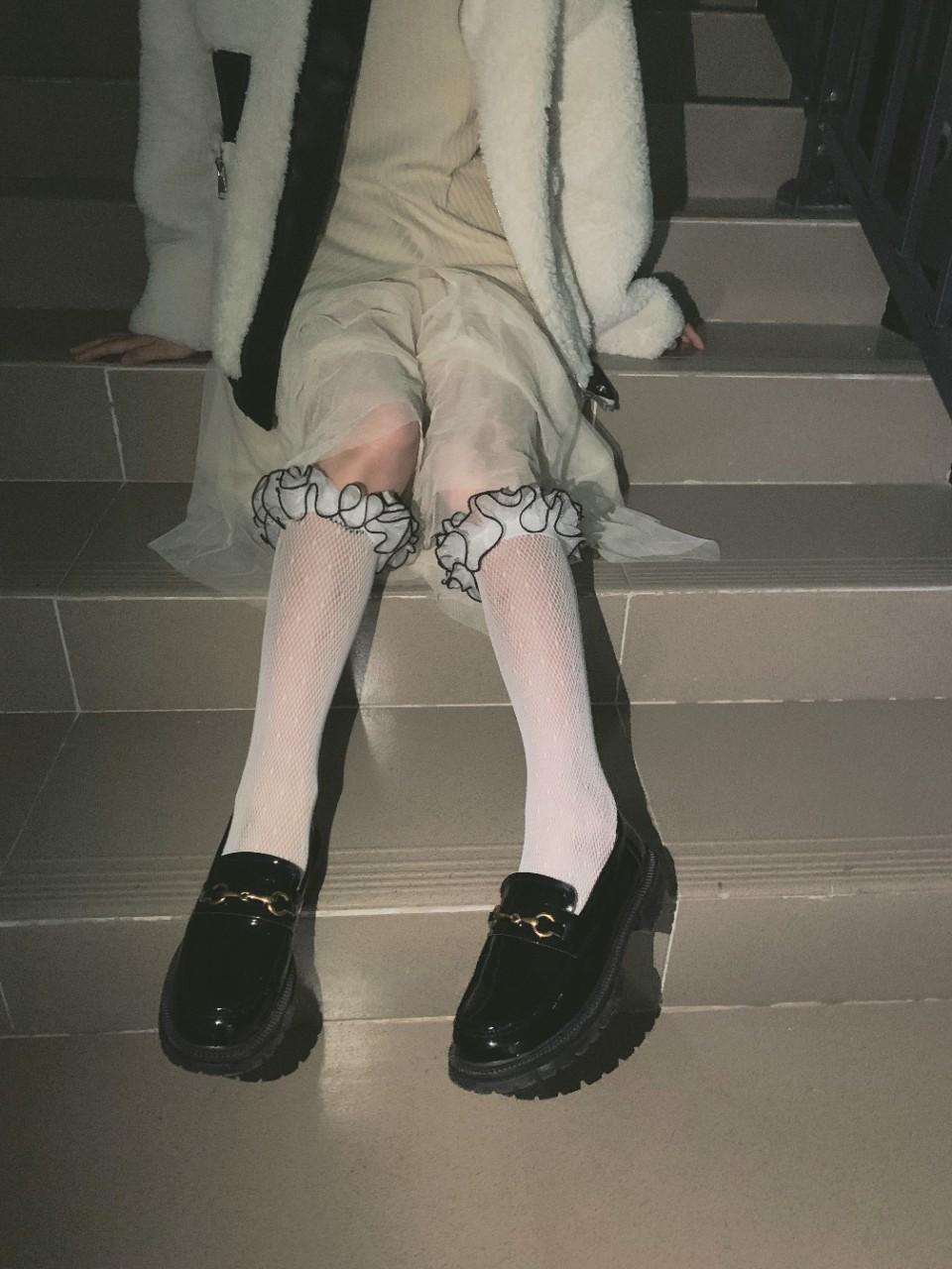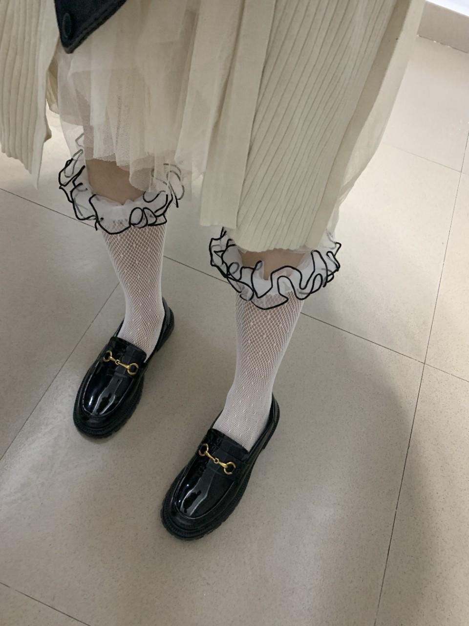 Calcetines de primavera y verano delgados, dulces, pequeños de lunares jacquard calados de red, calcetines cub, de doble capa con encaje plisado, calcetines de rizo