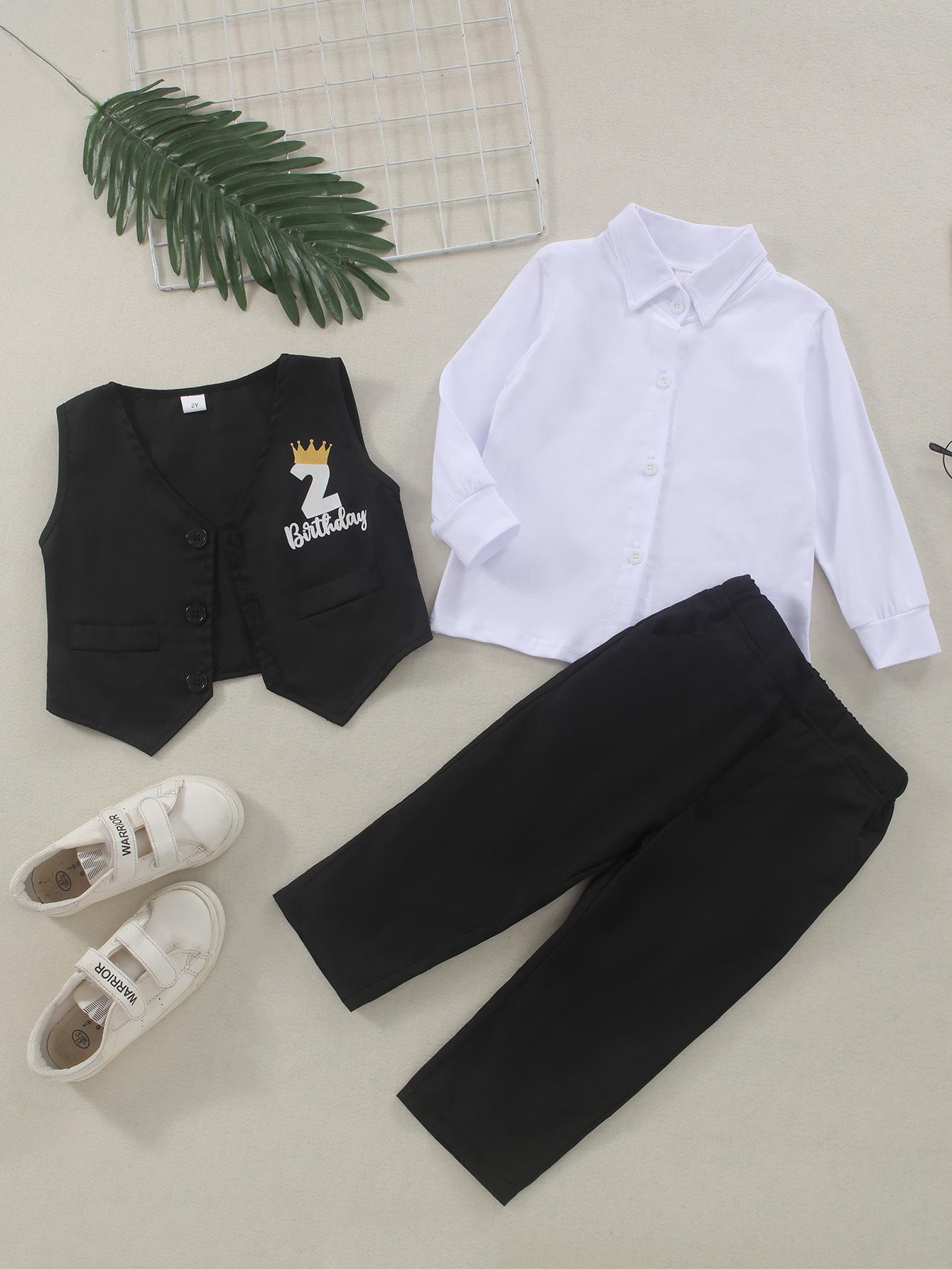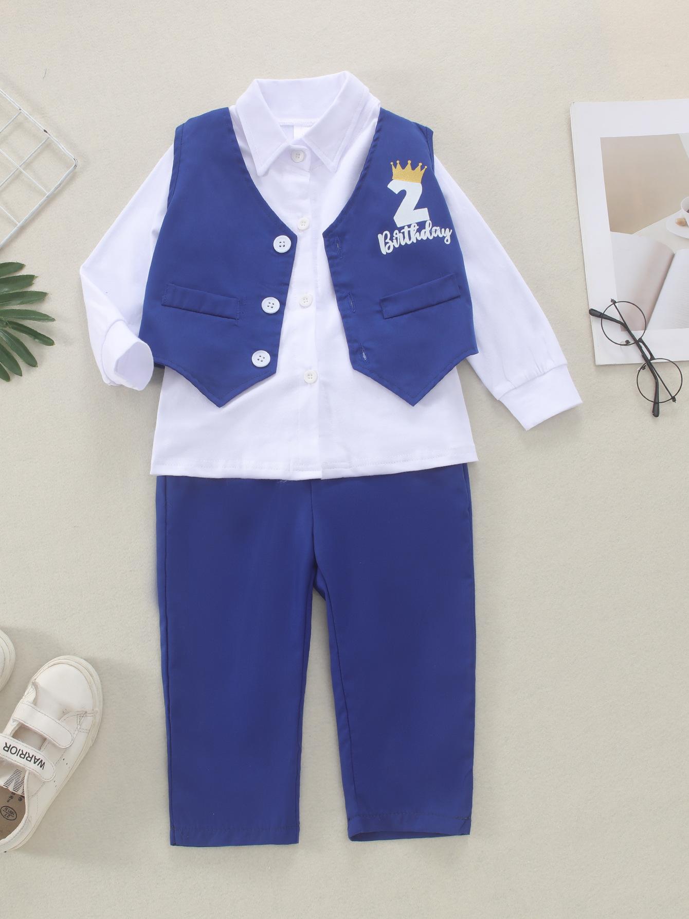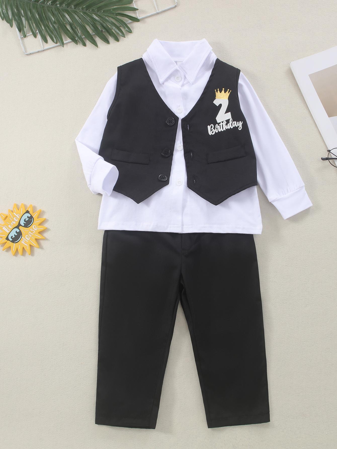 Camisa de manga larga para niño europeo y americano transfronterizo, chaleco, traje pequeño de caballero, vestido de niño de 12 años, traje de bebé, conjunto de tres piezas