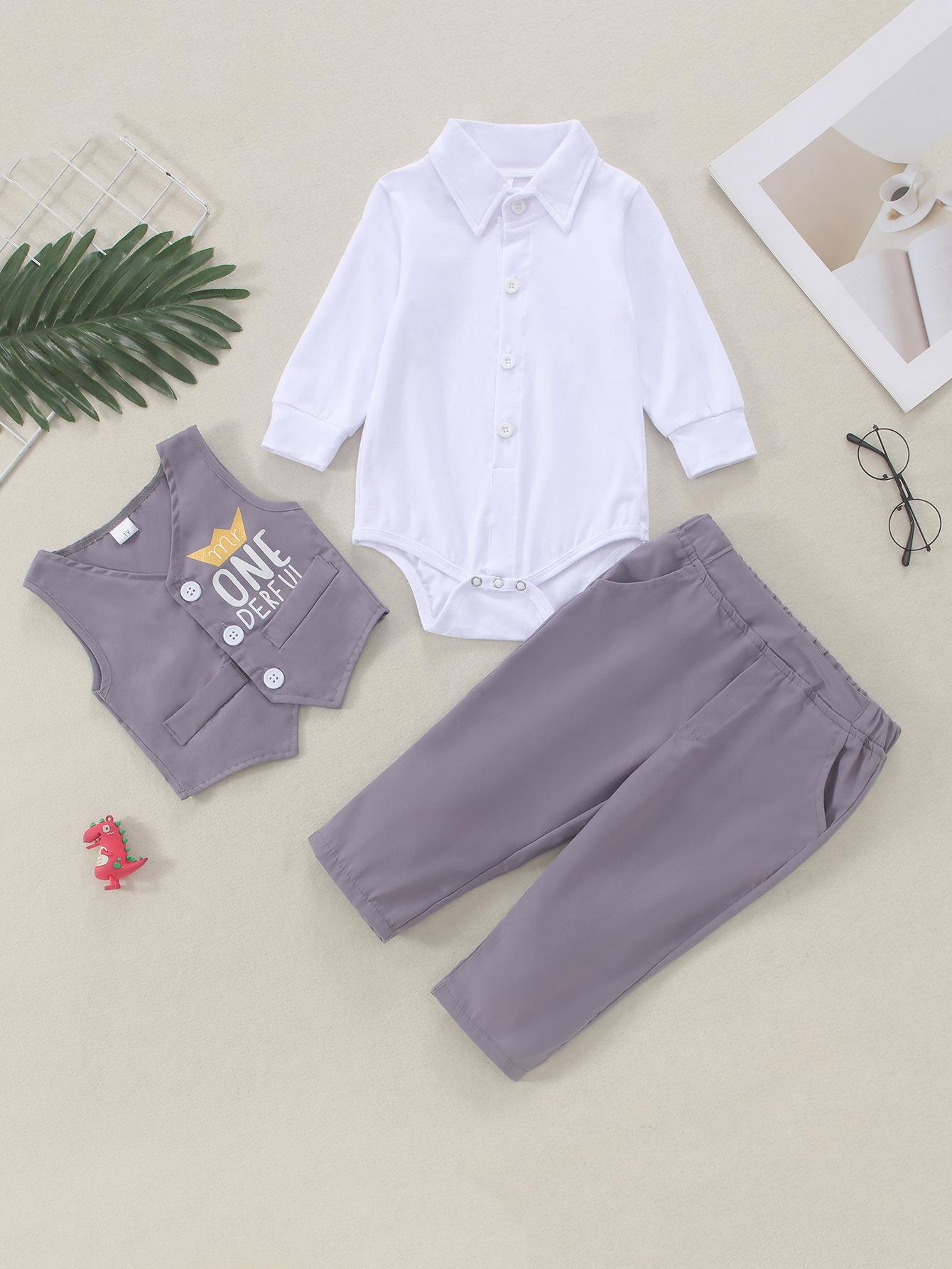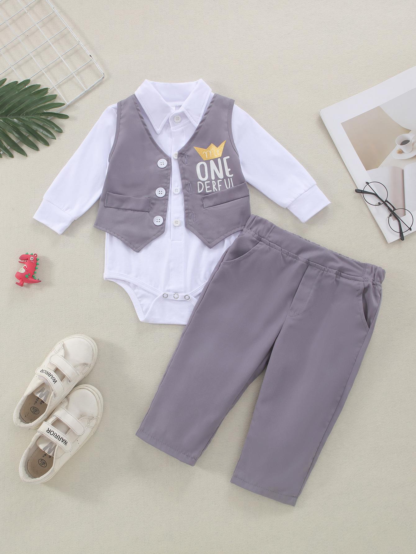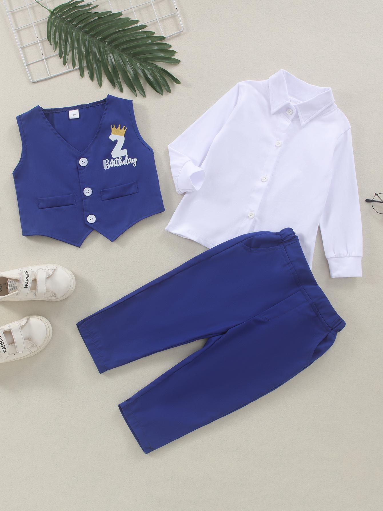 Camisa de manga larga para niño europeo y americano transfronterizo, chaleco, traje pequeño de caballero, vestido de niño de 12 años, traje de bebé, conjunto de tres piezas