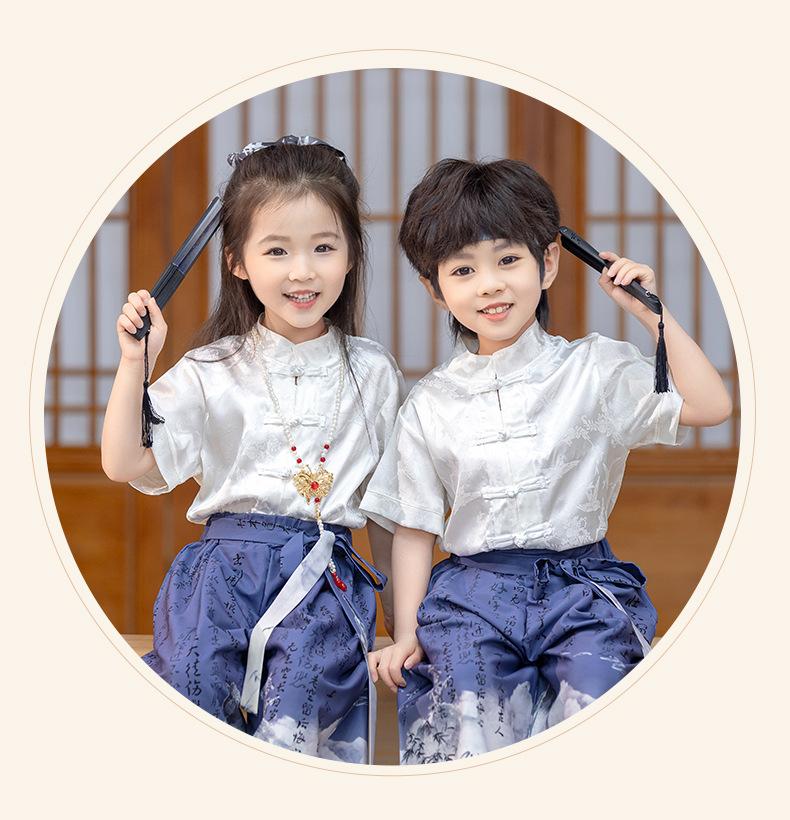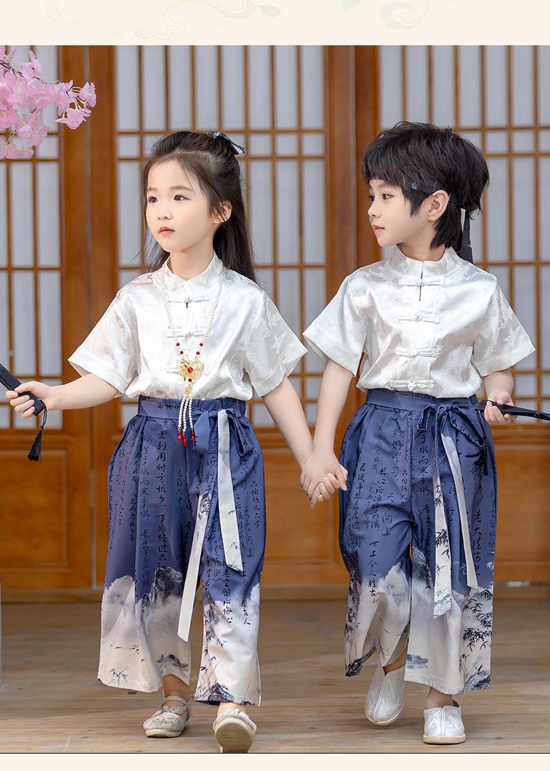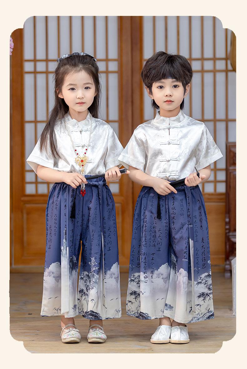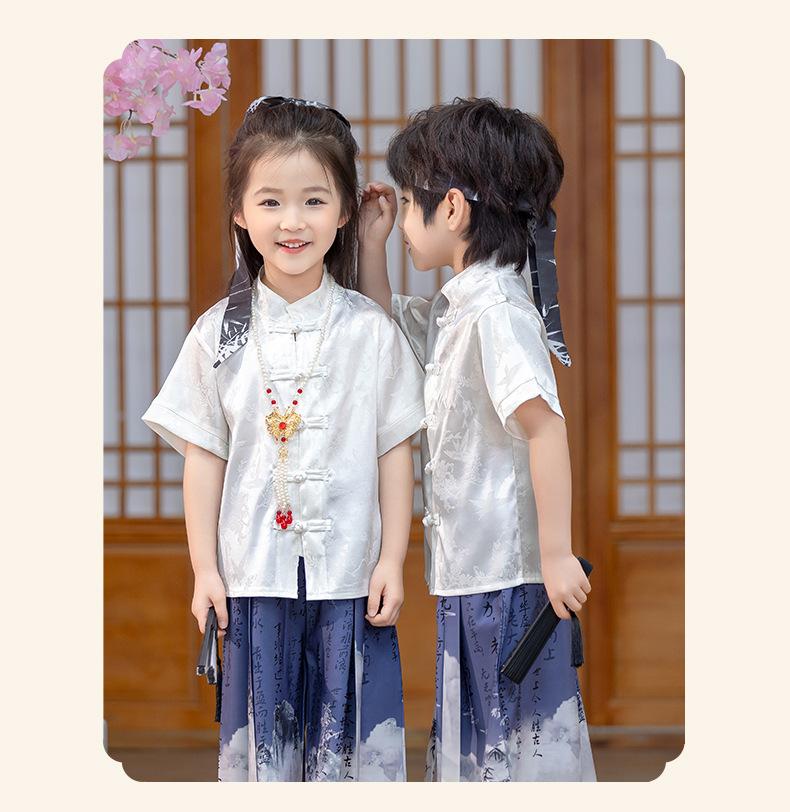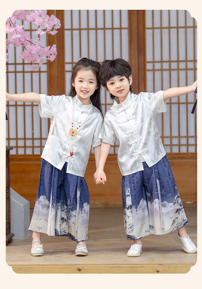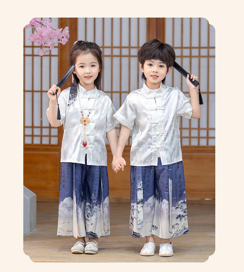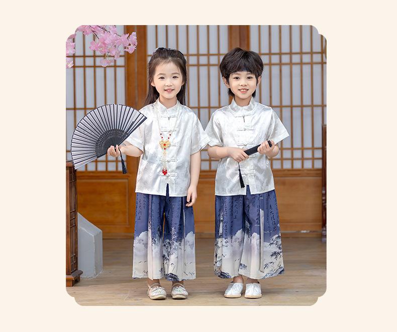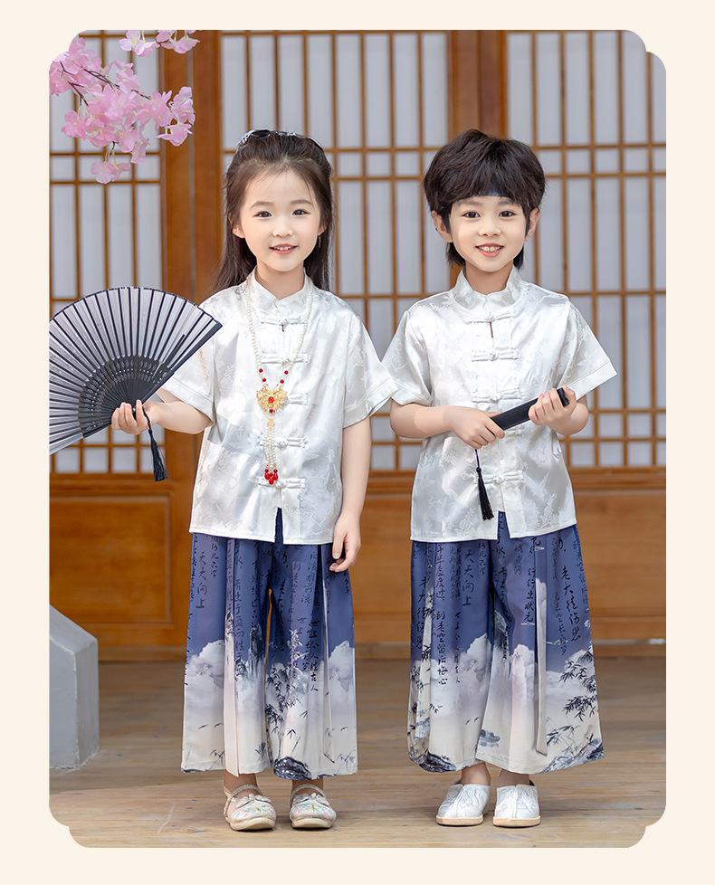 Traje Tang de verano para niños, estilo chino fino, hecho a medida, para jardín de infantes, el 1 de junio, para estudiantes de primaria, recitación de poesía.
