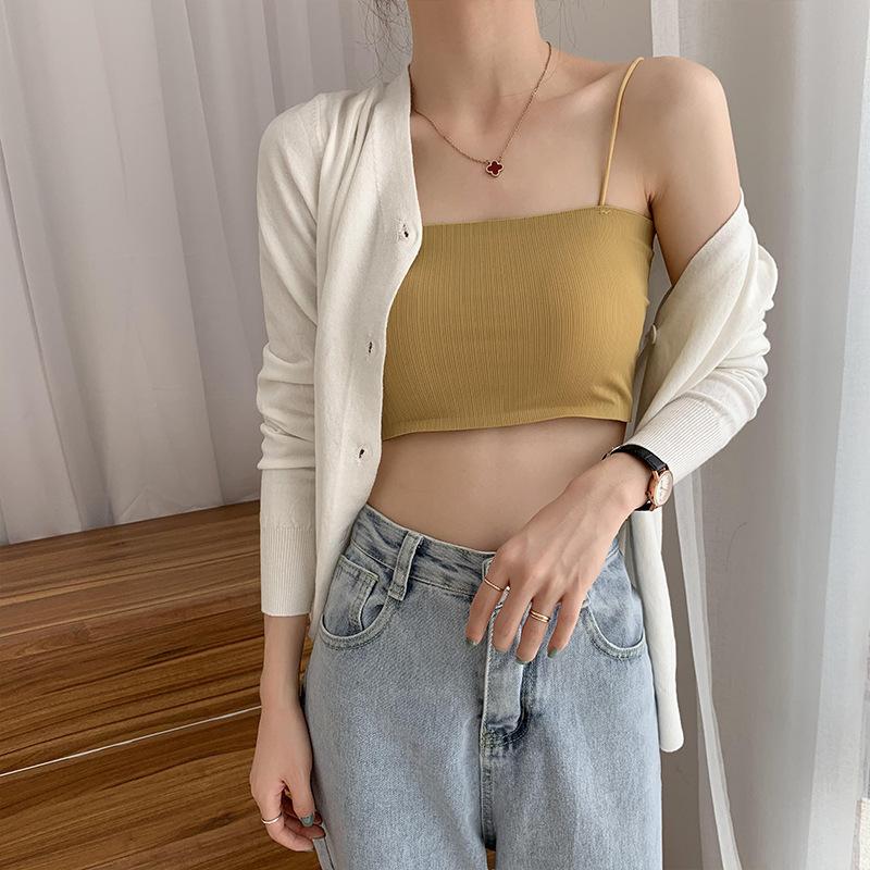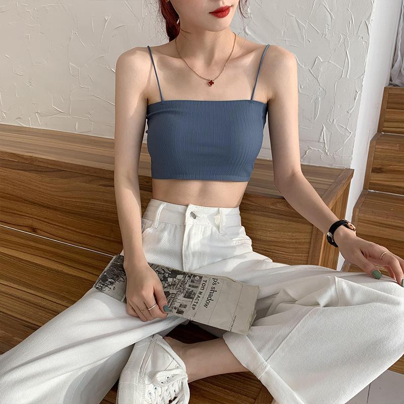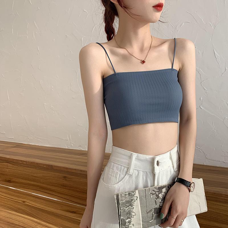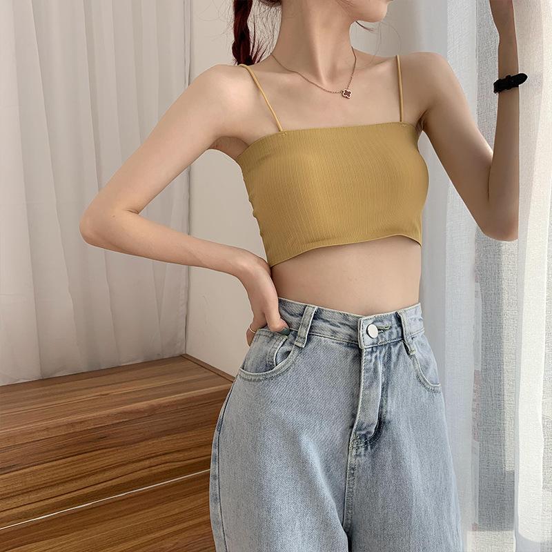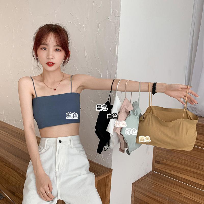 Verano 2021, recién llegado, top de tubo sin montura, seda de hielo, pecho envuelto, tirantes finos para los hombros, hermosa espalda, ropa interior fruncida para chica, estudiante femenina