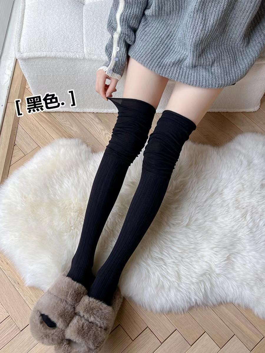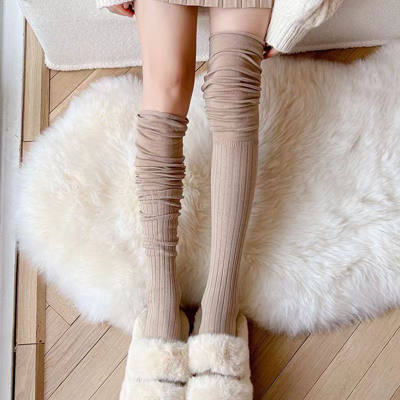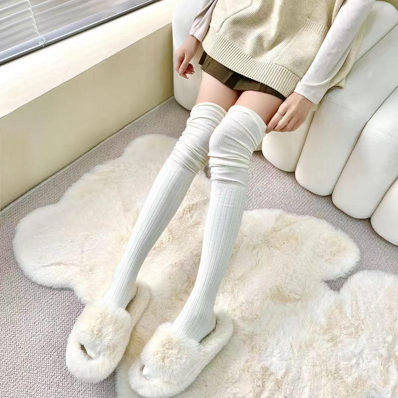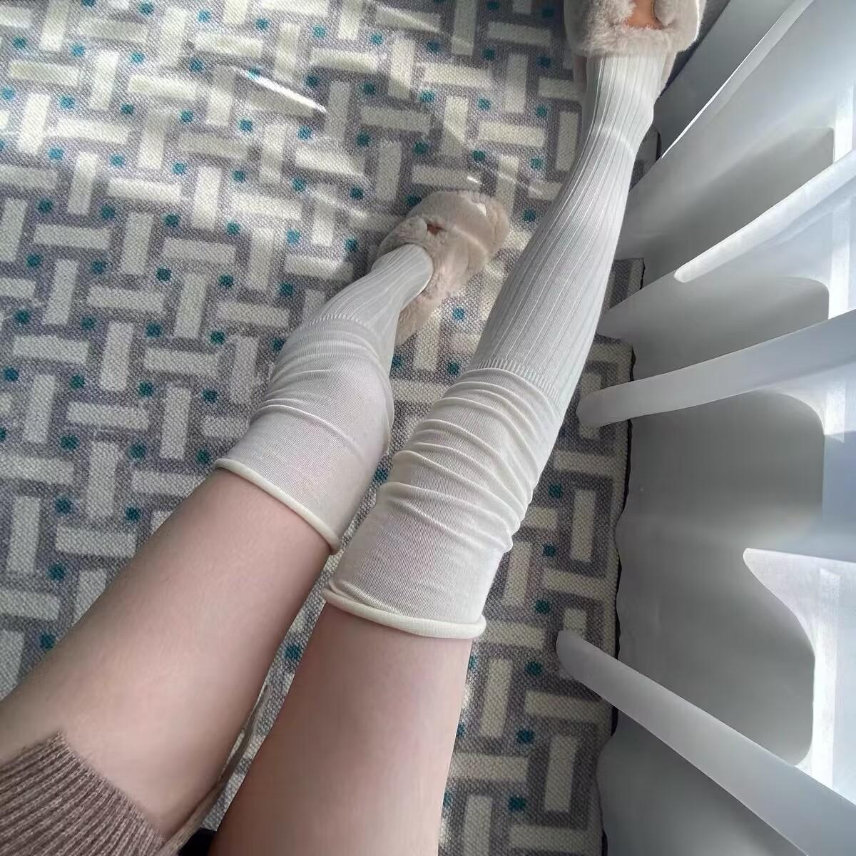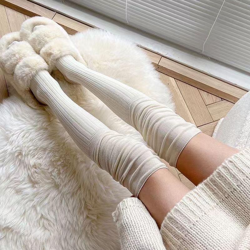 Otoño e Invierno blanco crema Medias por encima de la rodilla para mujer Nueva llegada Media para usar sobre la ropa Media alta con costuras estilo japonés Calcetines arrugados