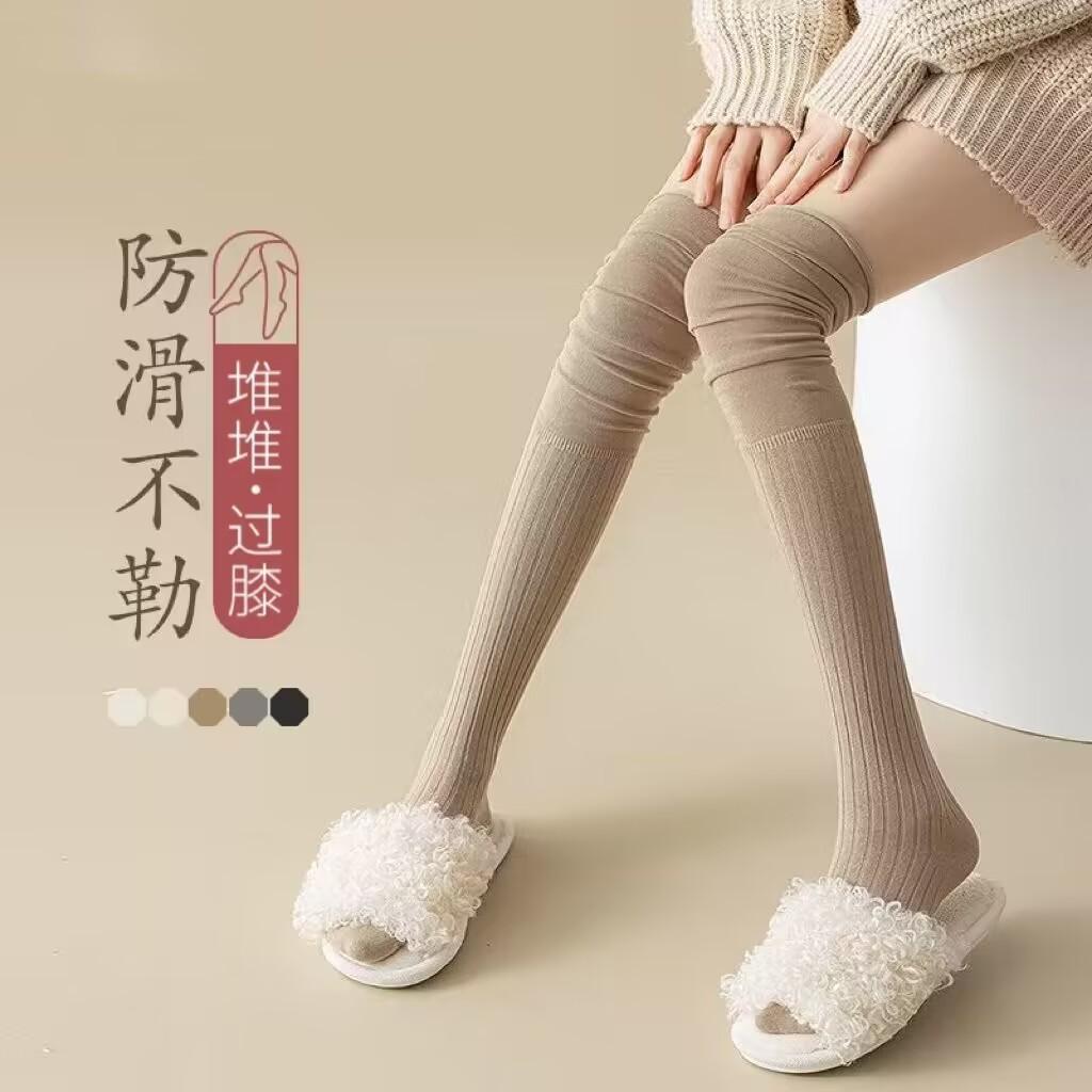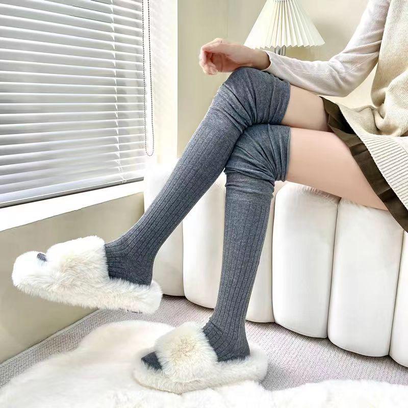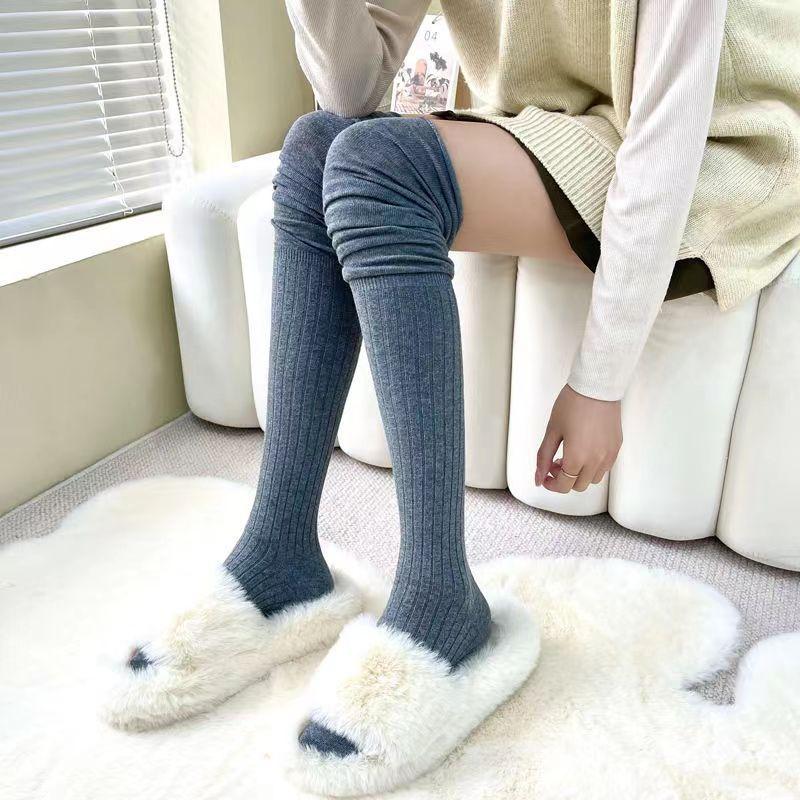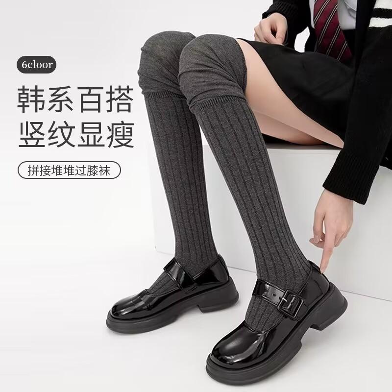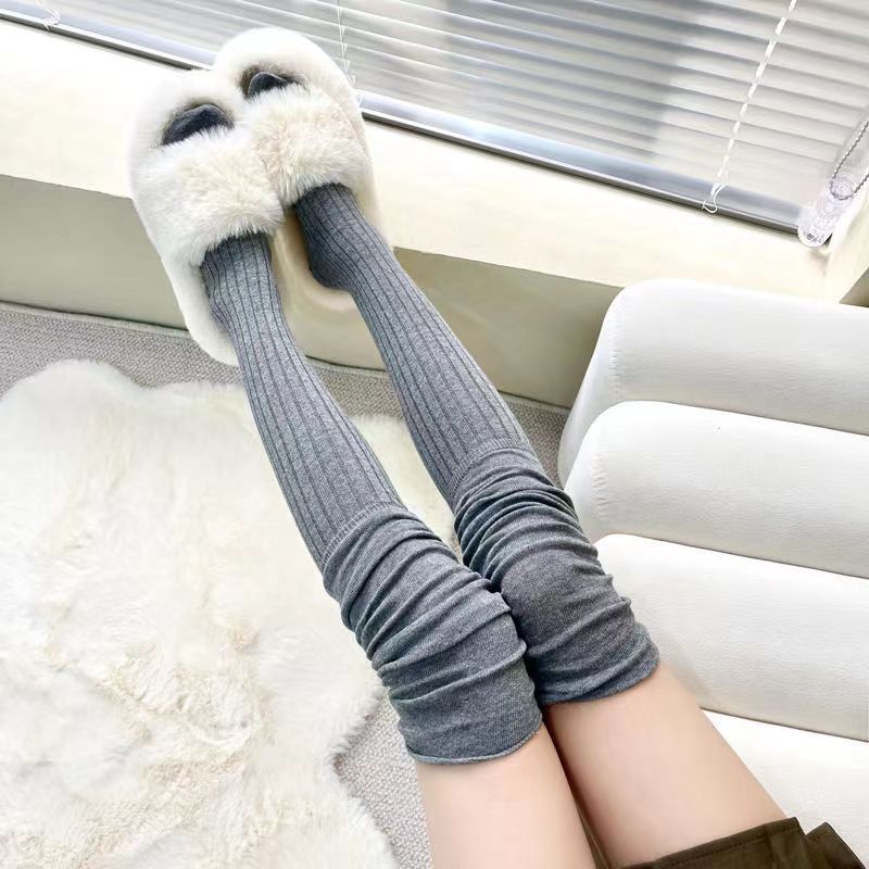 Otoño e Invierno blanco crema Medias por encima de la rodilla para mujer Nueva llegada Media para usar sobre la ropa Media alta con costuras estilo japonés Calcetines arrugados