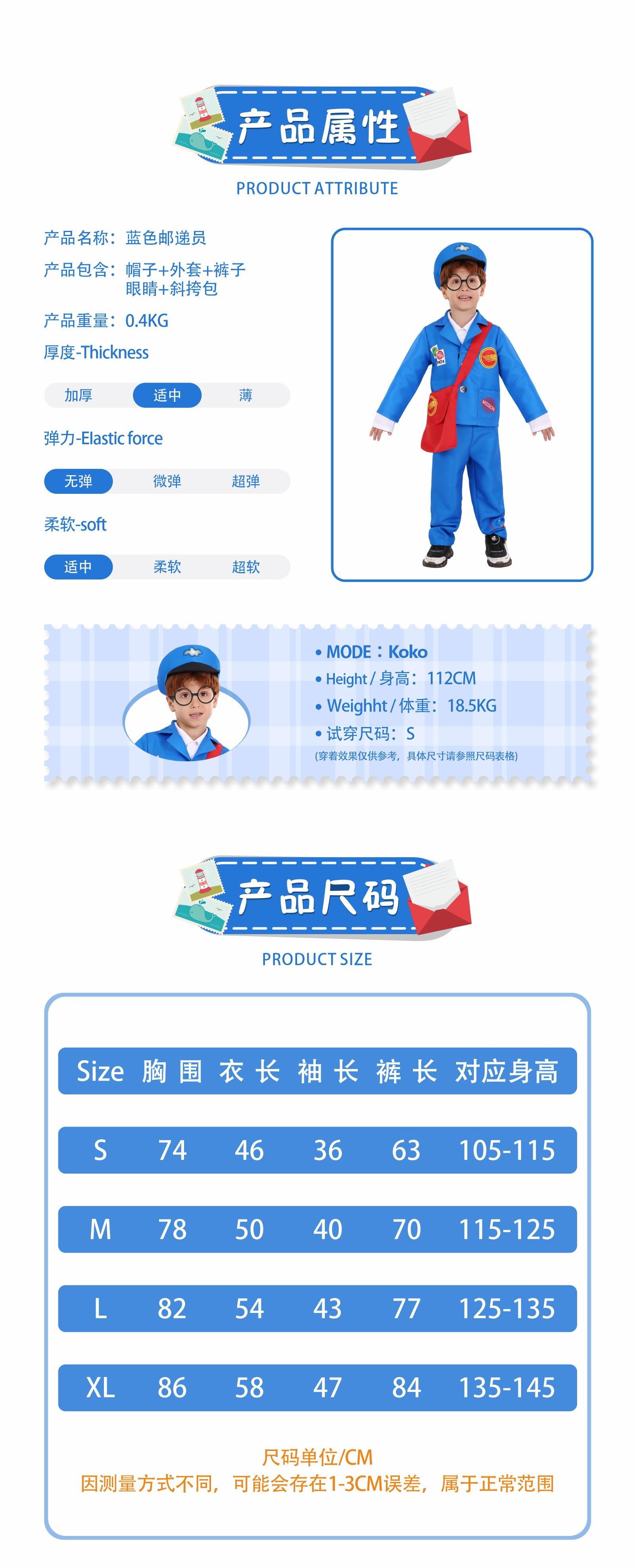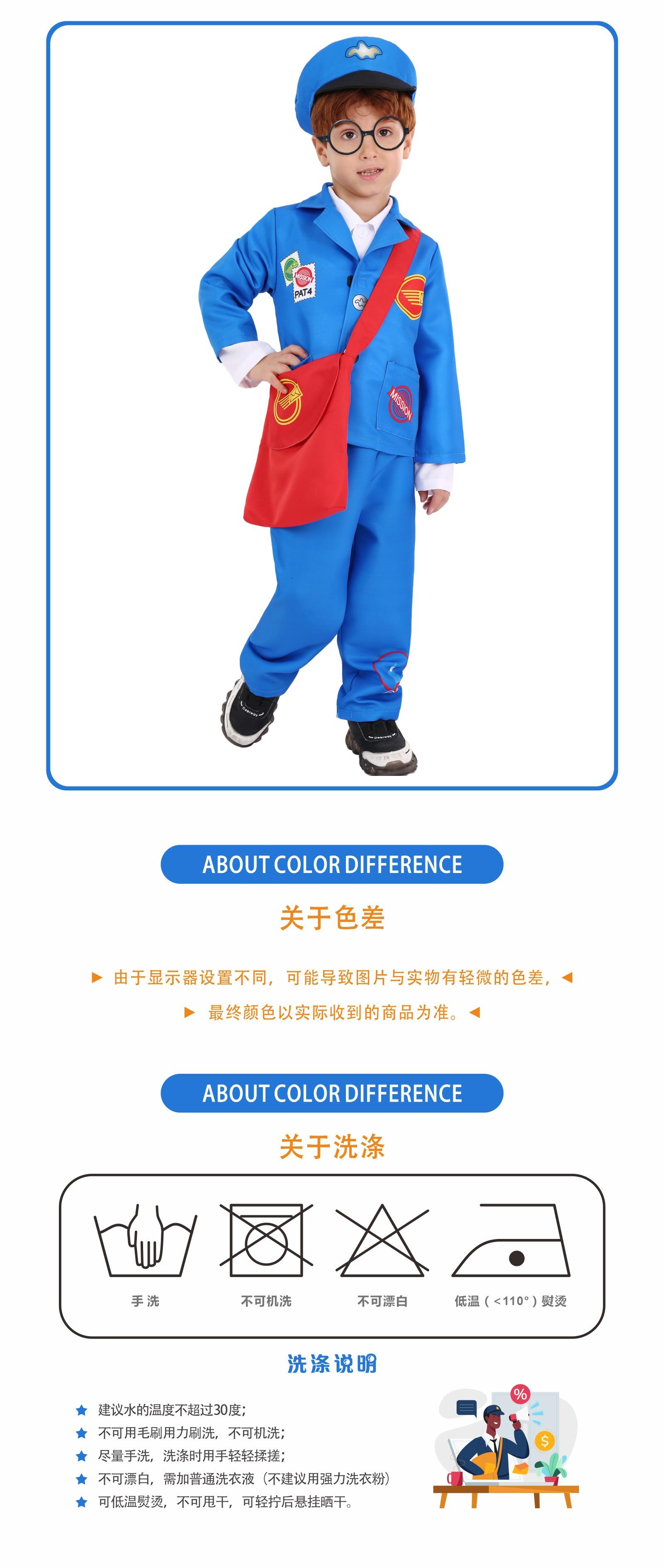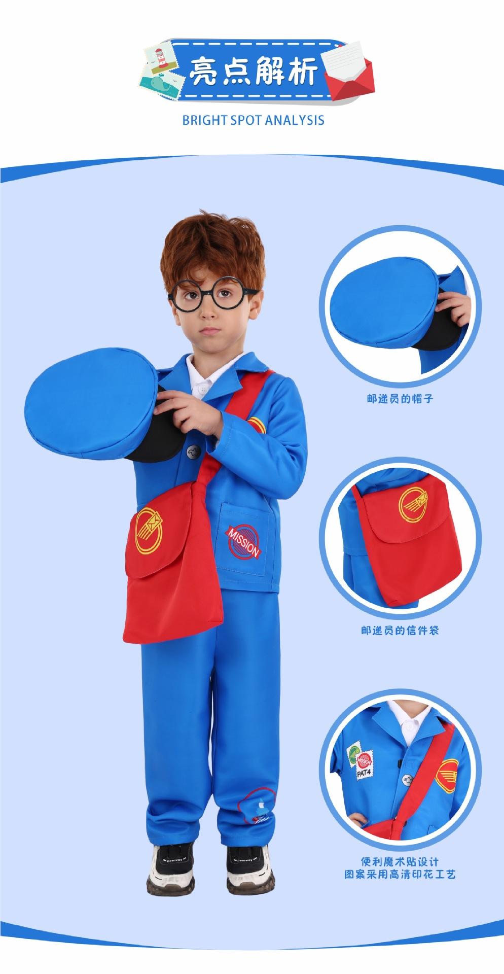 Disfraz de Cartero Cosplay para Niños Halloween Nuevo Azul Disfraz de Rendimiento para Juegos de Rol Disfraz de Rendimiento para Vacaciones