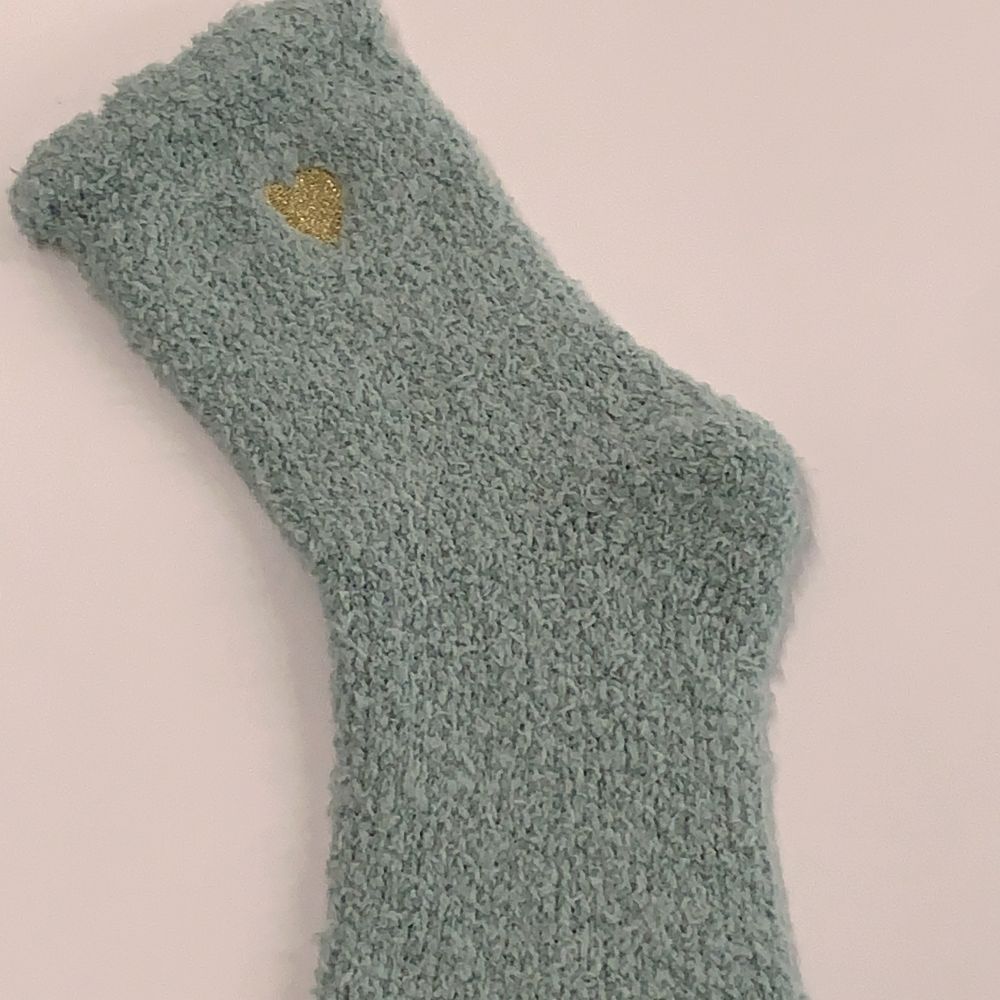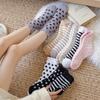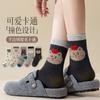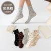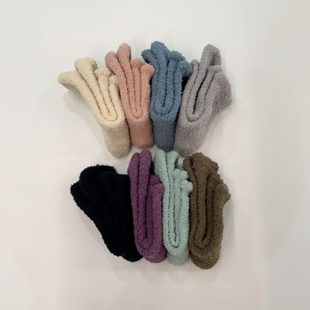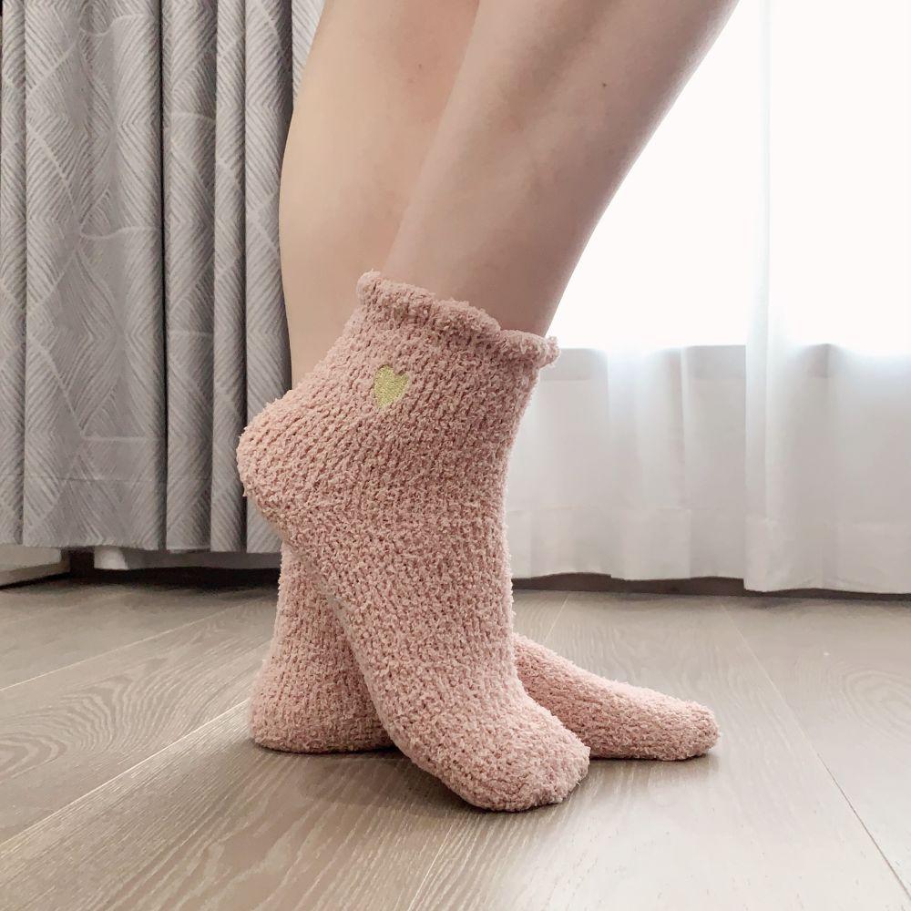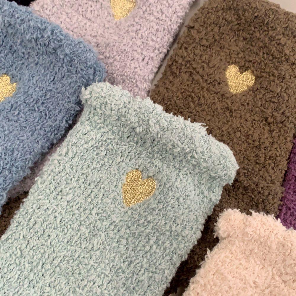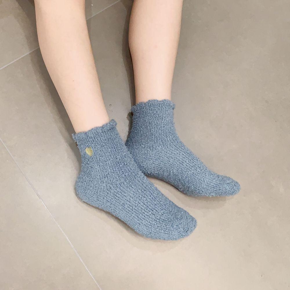 Calcetines gruesos de vellón coral hasta media pantorrilla, calcetines japoneses sencillos de algodón cálidos para el suelo, calcetines coloridos de color sólido bordados con amor para mujer
