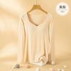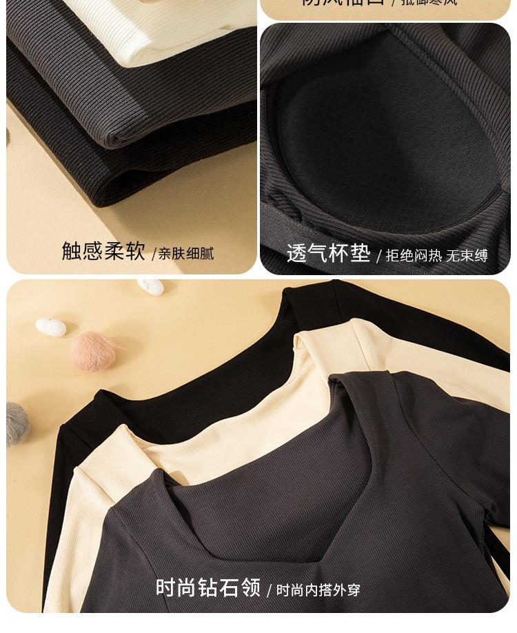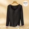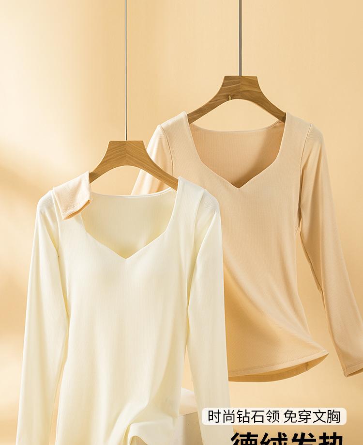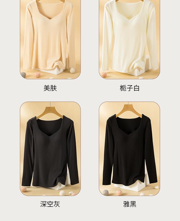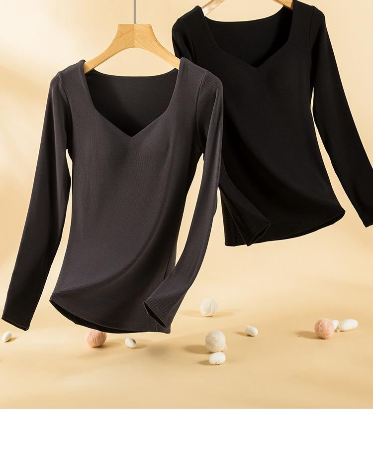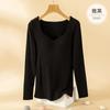 Otoño e invierno cálido manga larga cuello de abanico con almohadilla en el pecho camisa básica cálida 2023 nueva versátil otoño e invierno camiseta básica