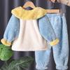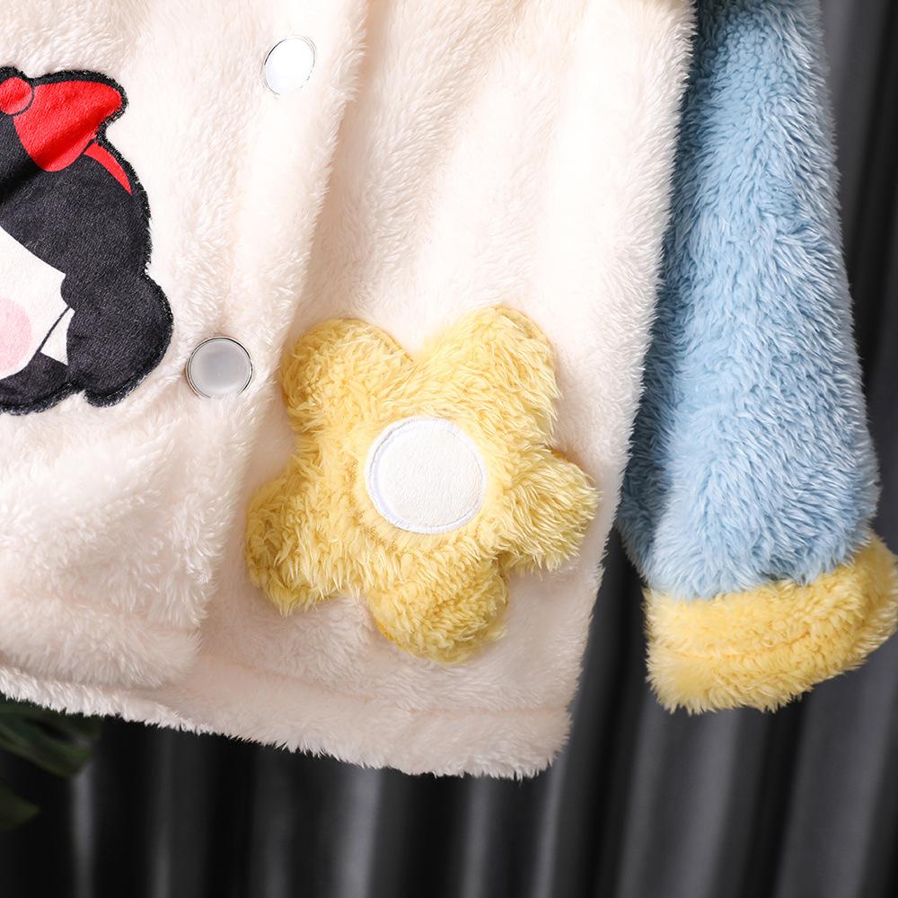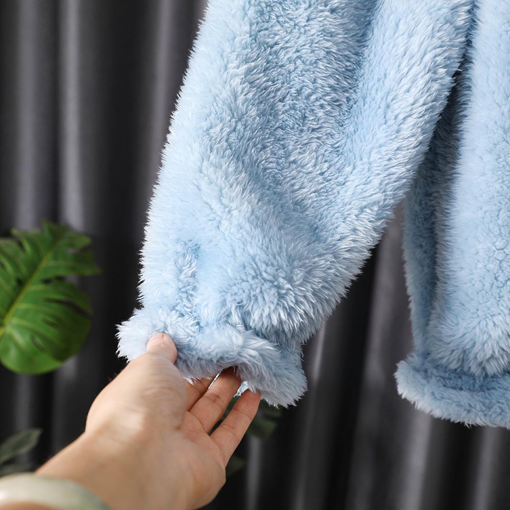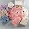 Pijamas de lana de coral para niños, otoño e invierno, forrados con vellón, franela gruesa, ropa de casa para niñas, traje de invierno para bebés.