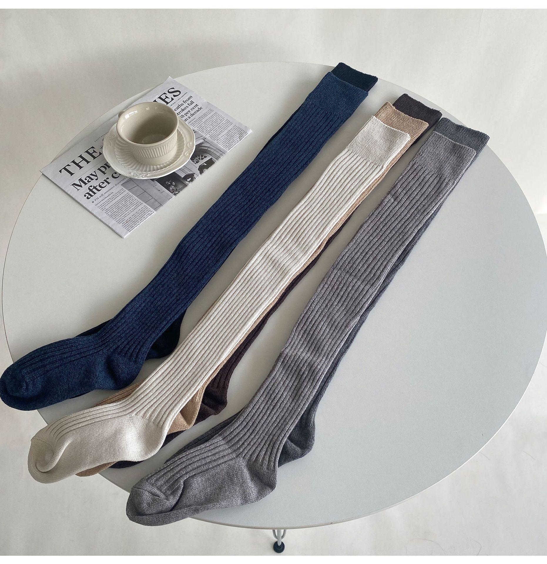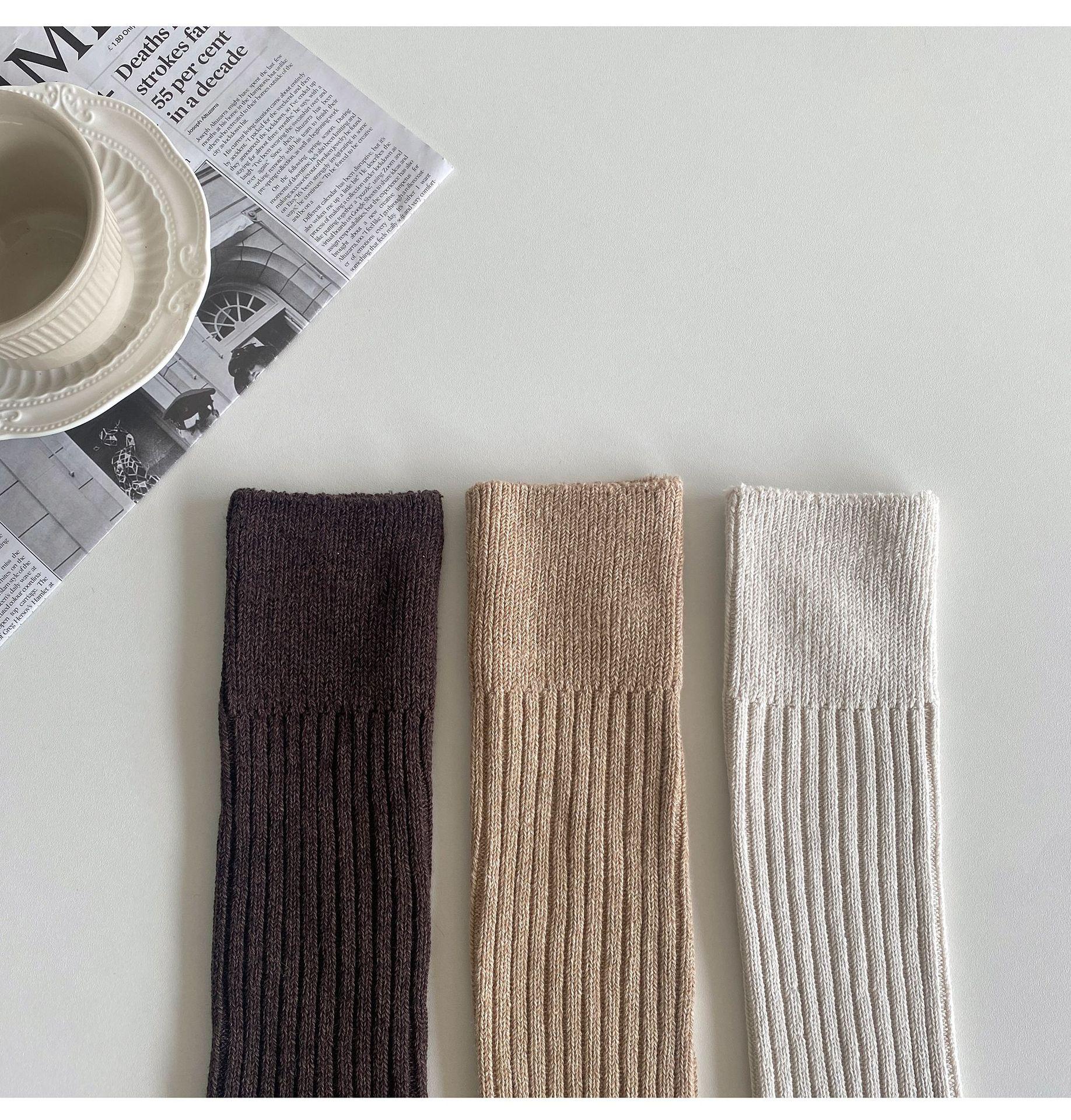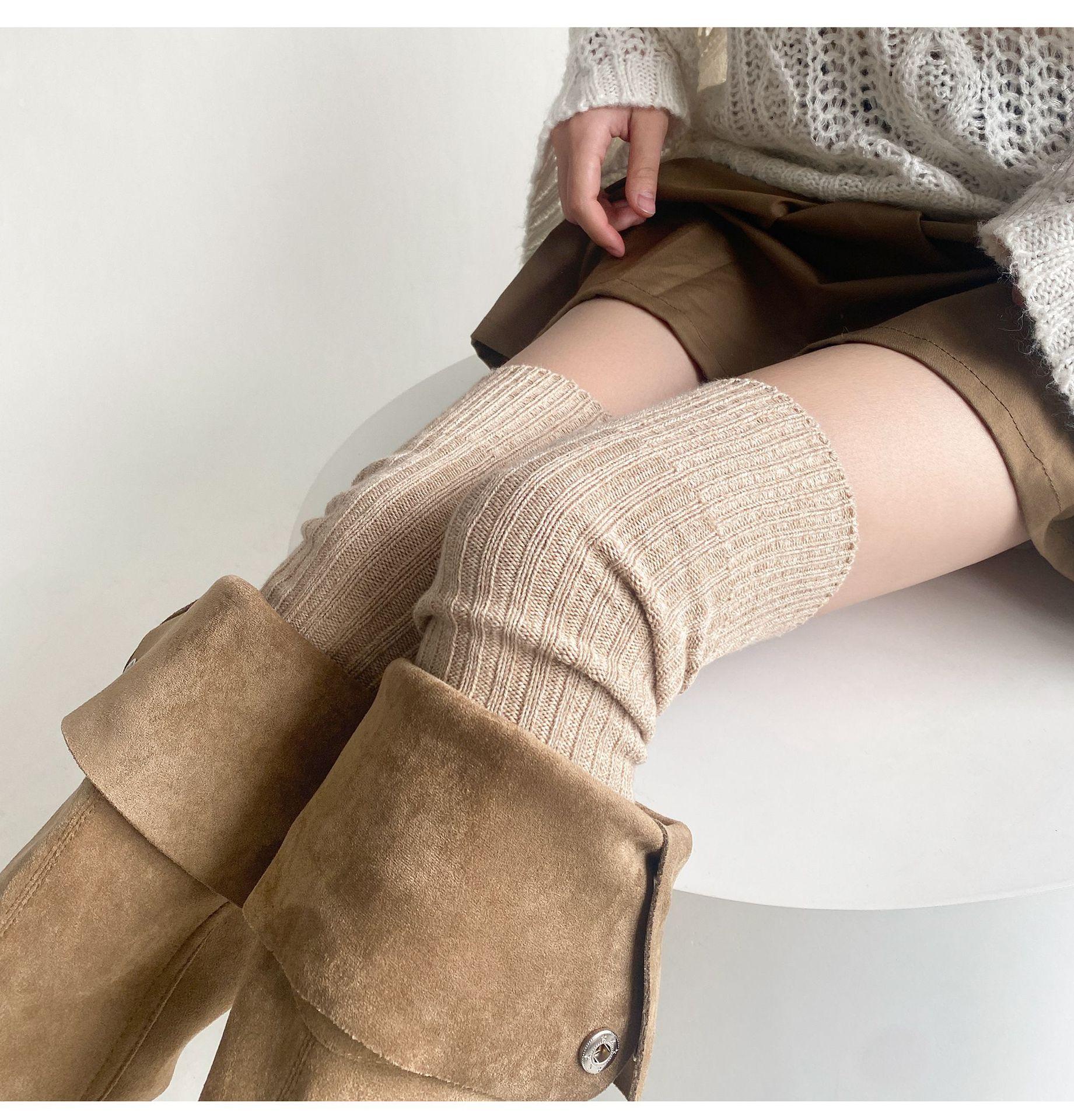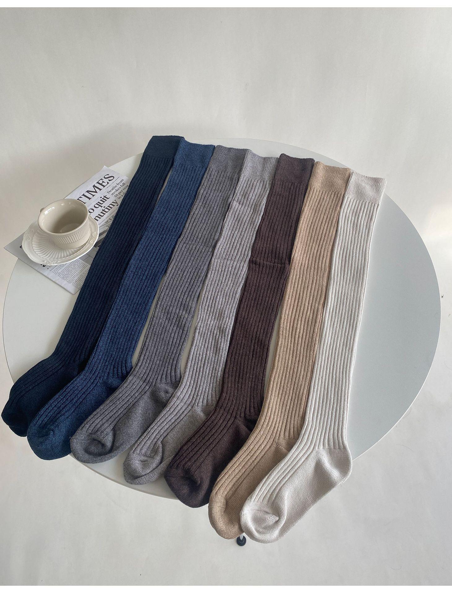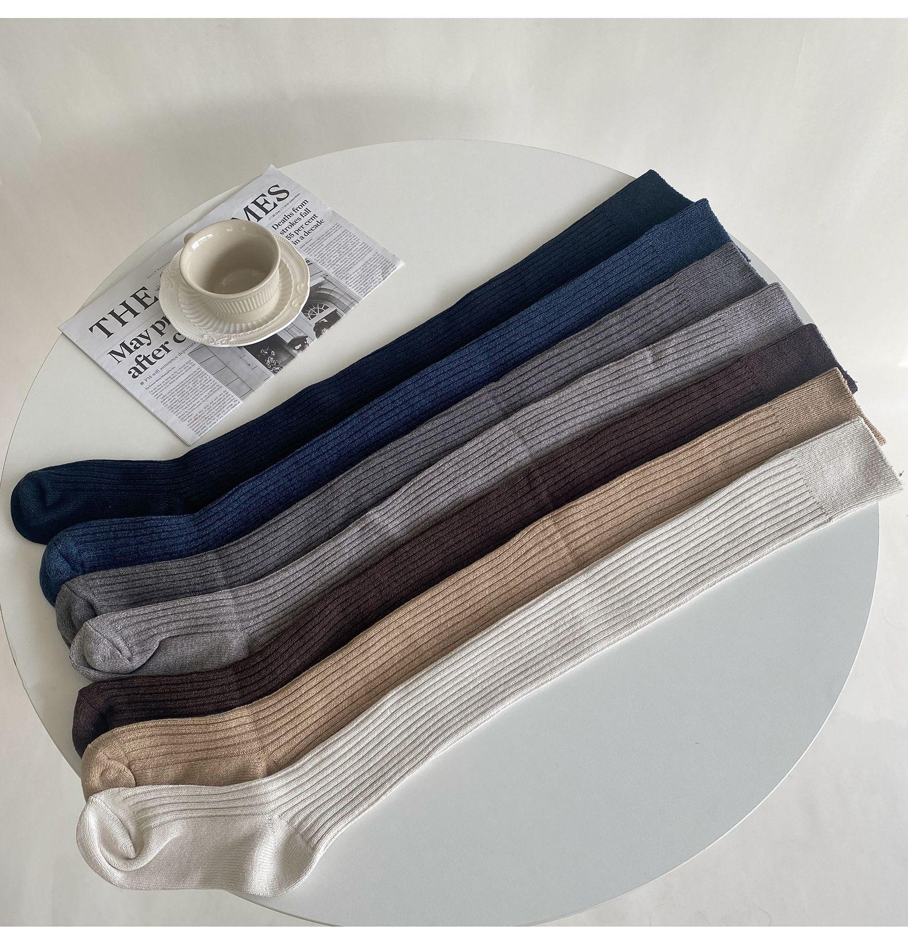 Otoño e Invierno nuevo estilo retro tejido calcetines largos hasta la rodilla para mujer patrón vertical versátil color sólido simple calcetines altos rodilleras cálidas