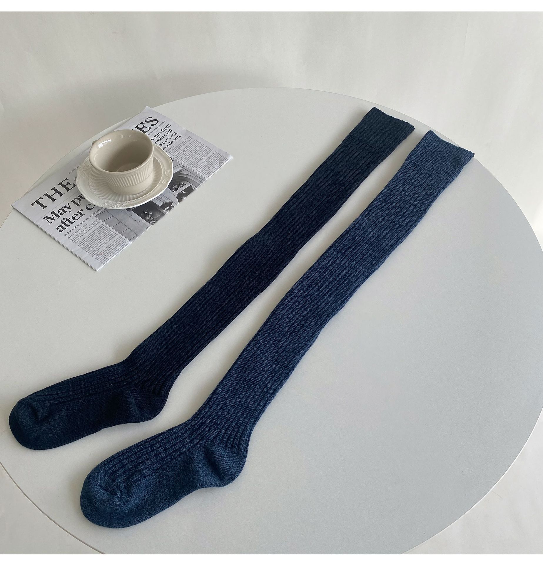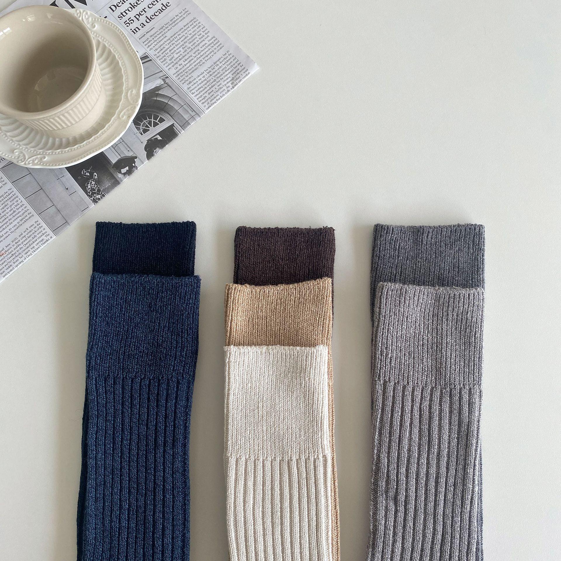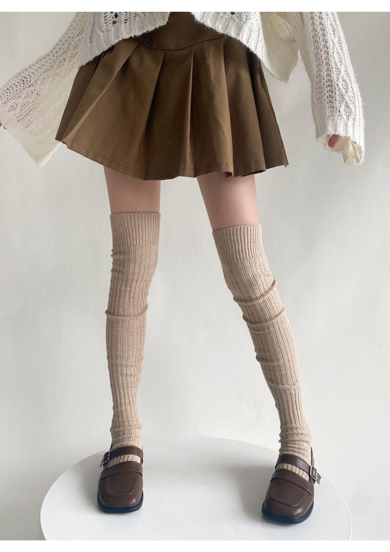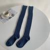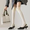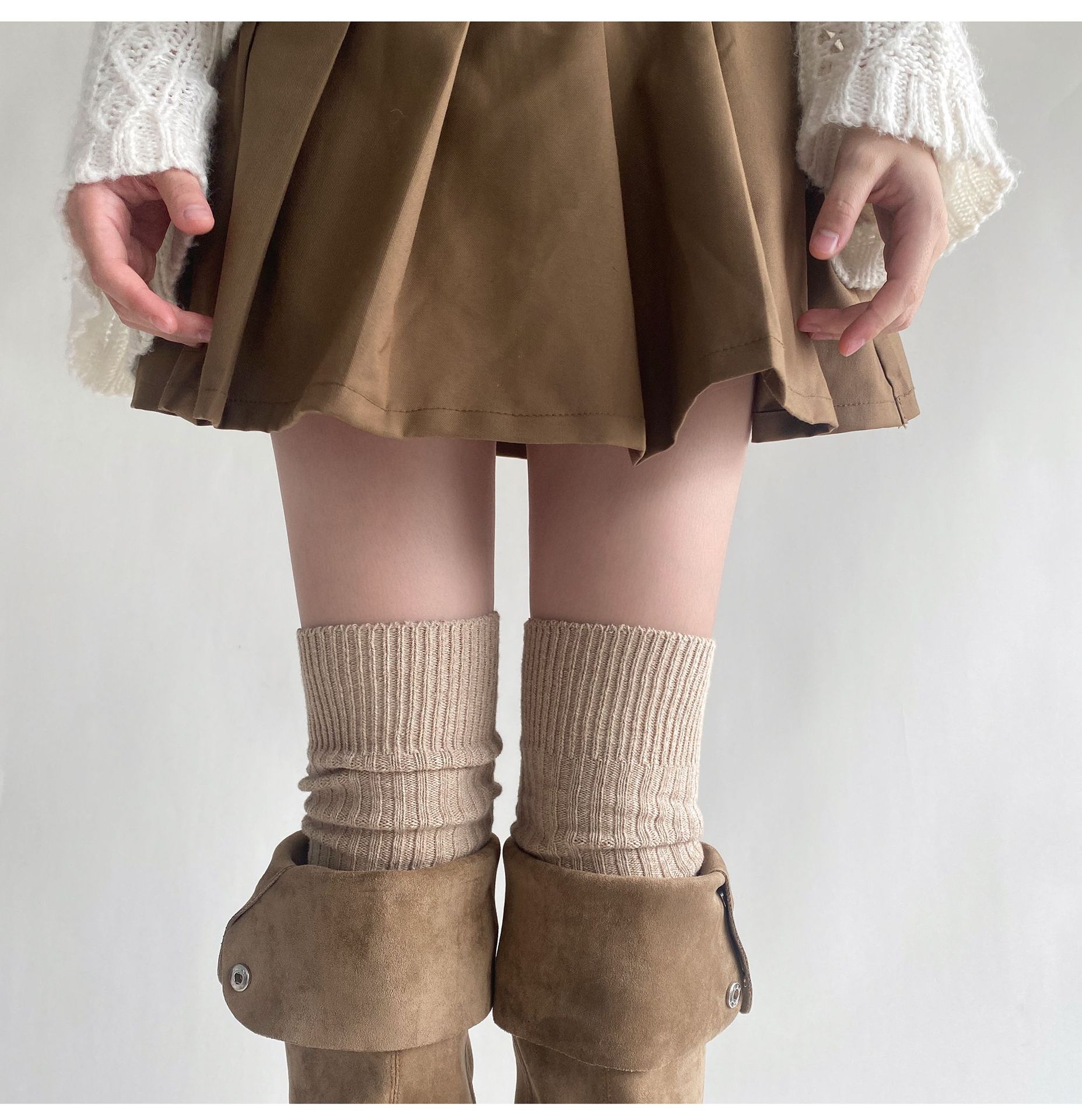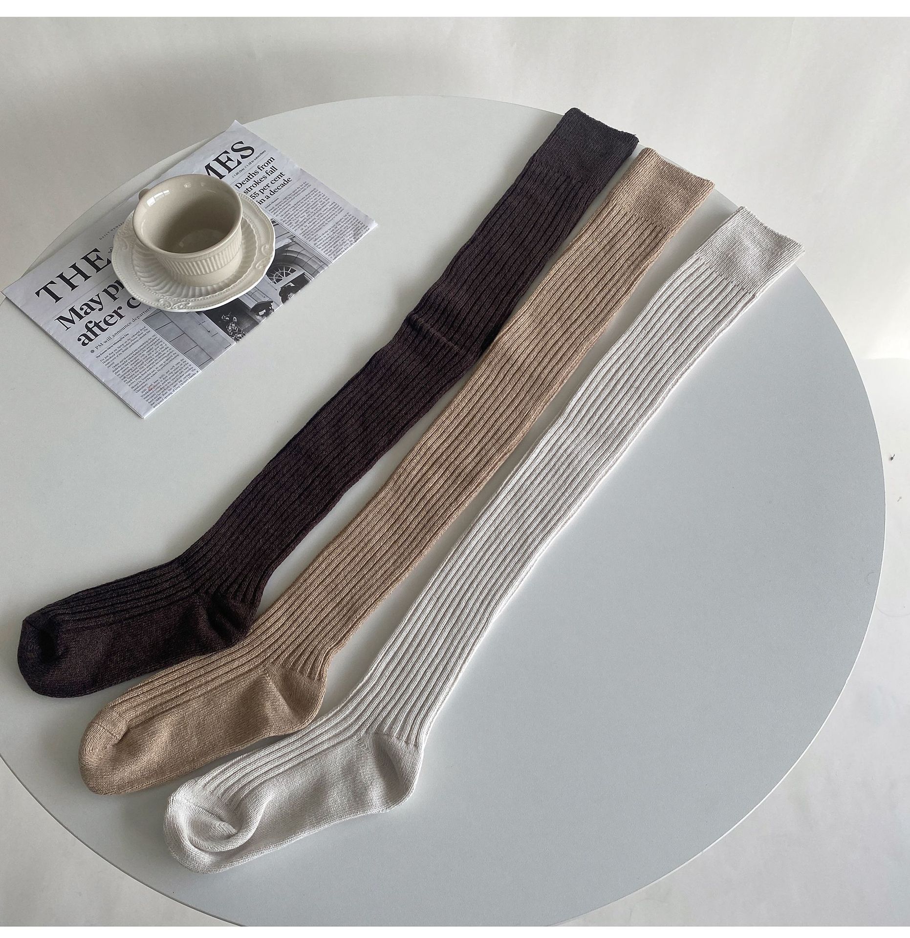 Otoño e Invierno nuevo estilo retro tejido calcetines largos hasta la rodilla para mujer patrón vertical versátil color sólido simple calcetines altos rodilleras cálidas