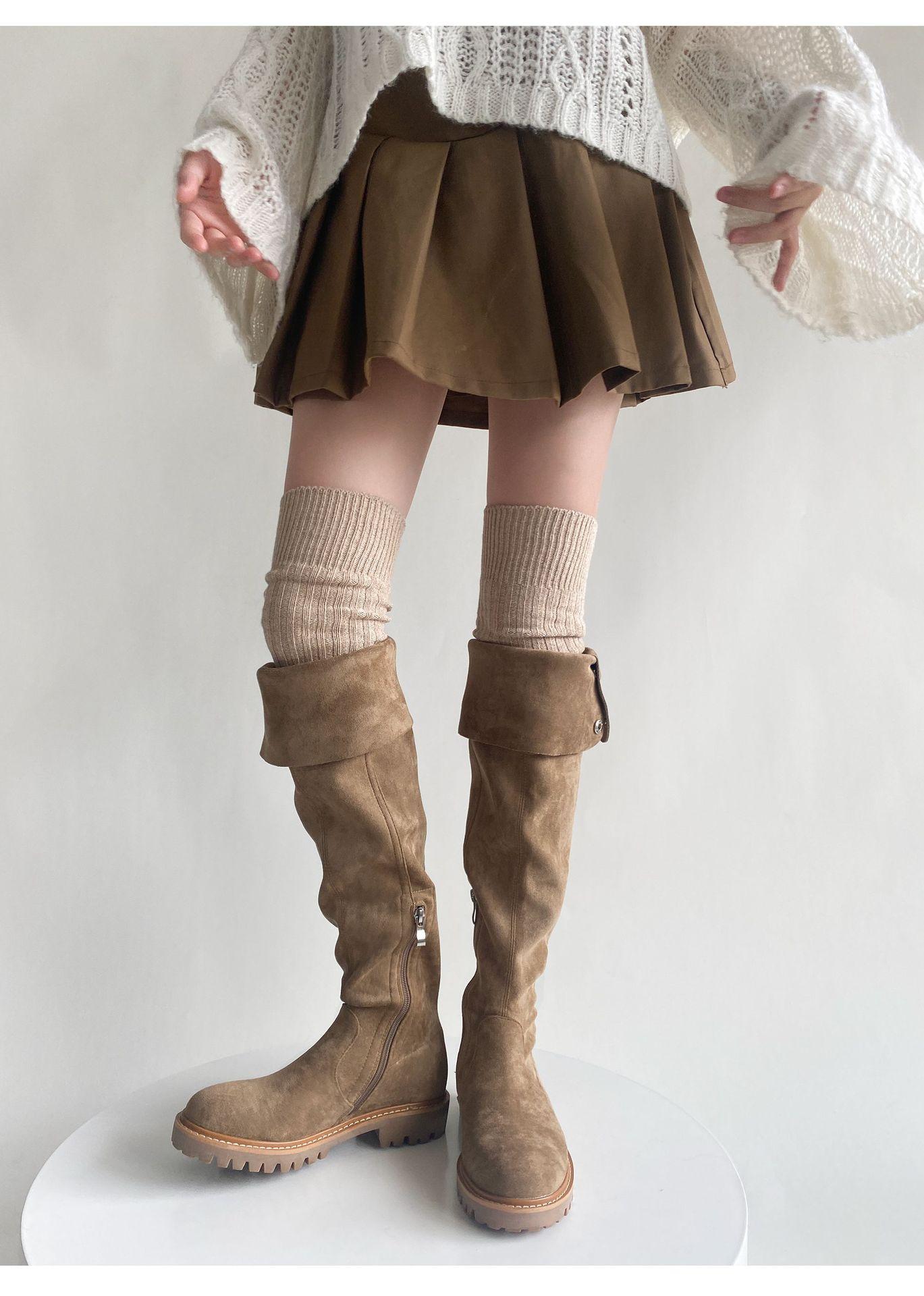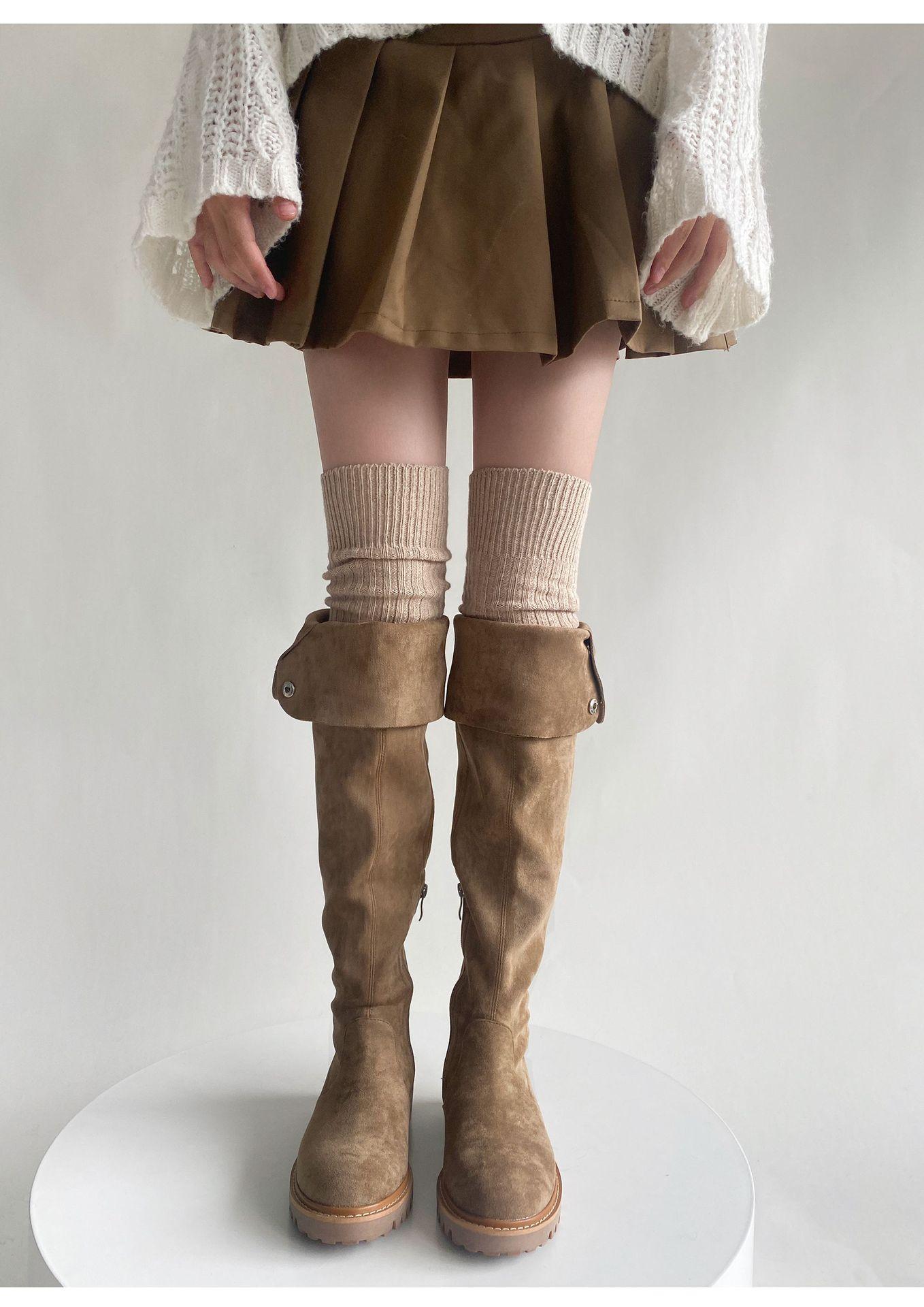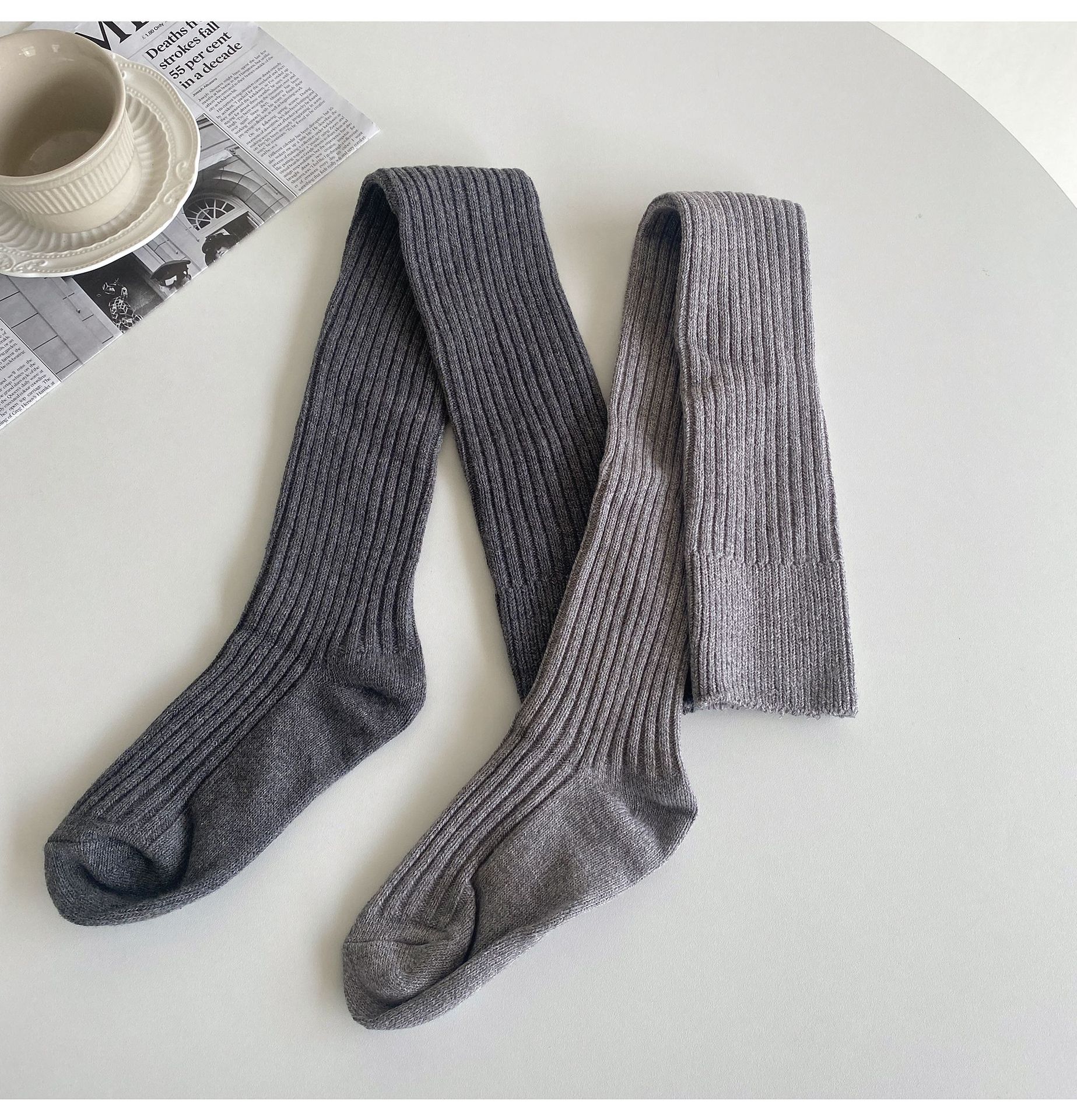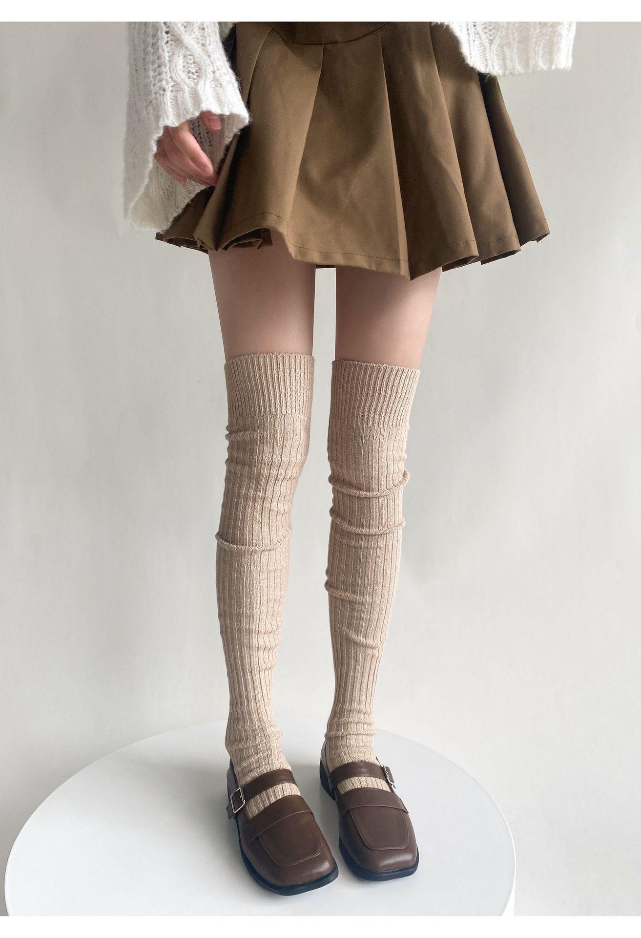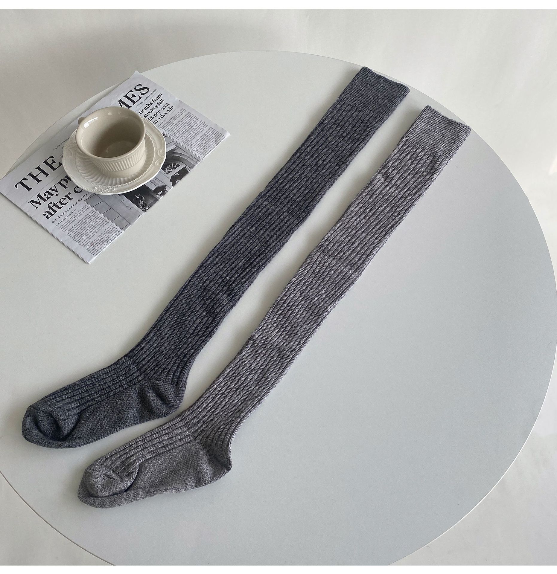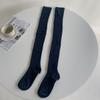 Otoño e Invierno nuevo estilo retro tejido calcetines largos hasta la rodilla para mujer patrón vertical versátil color sólido simple calcetines altos rodilleras cálidas