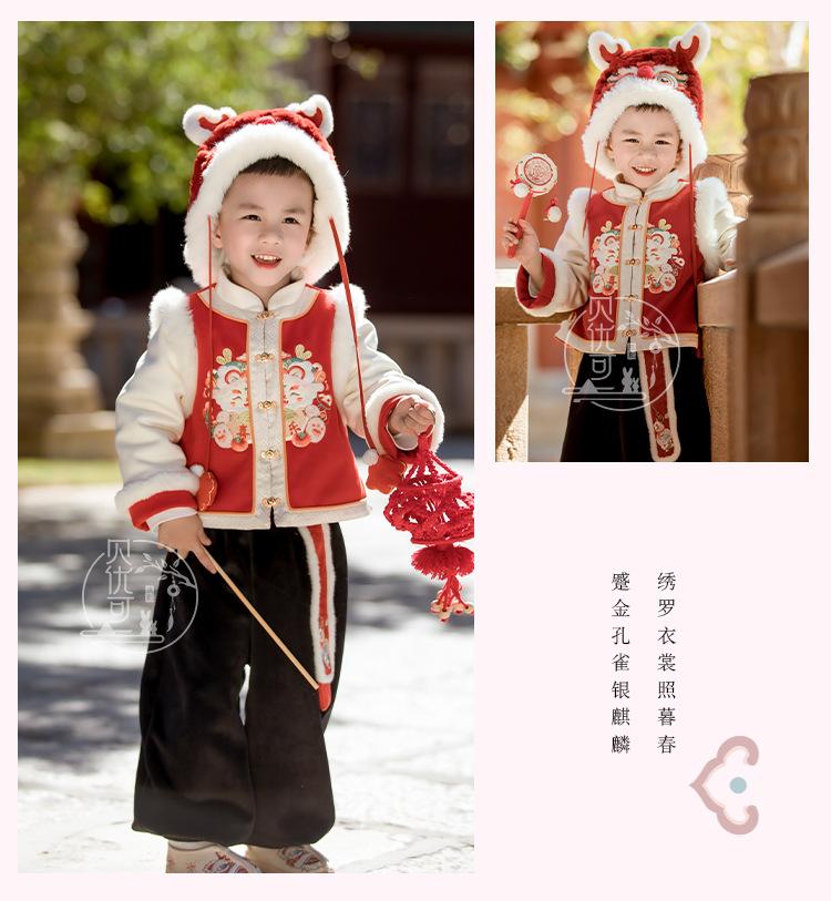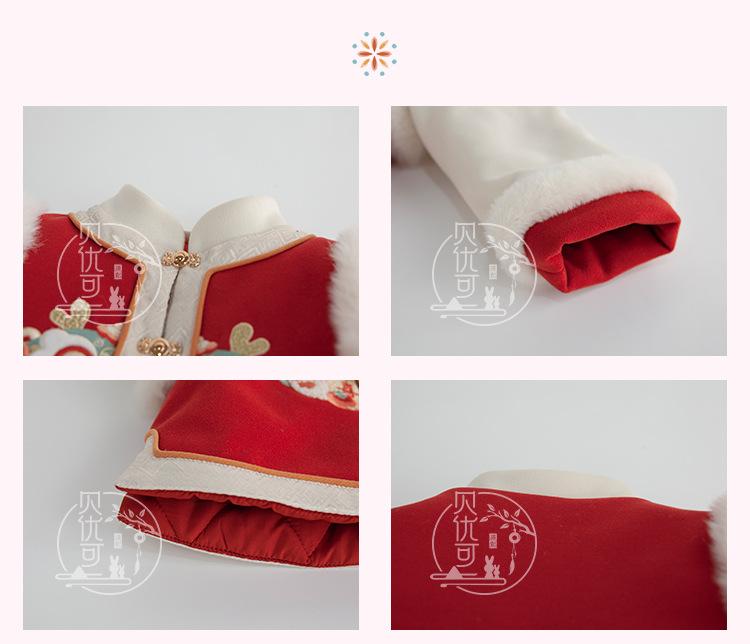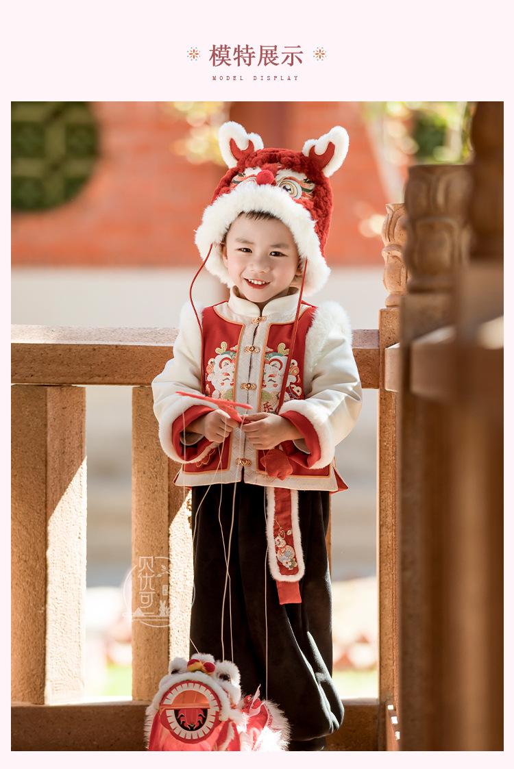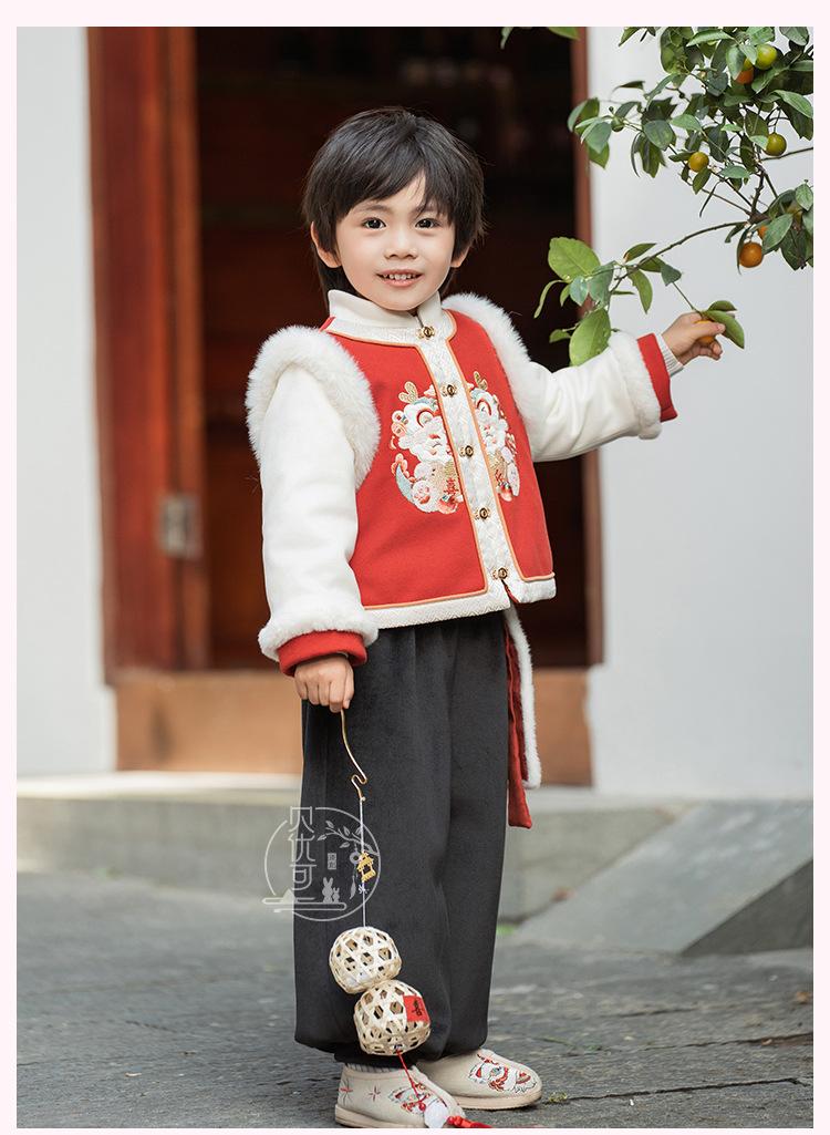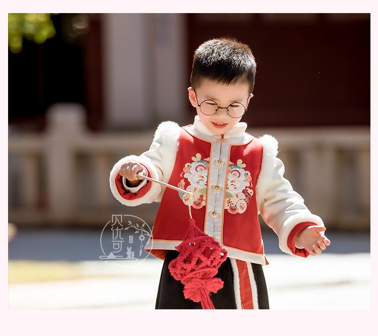 Ropa de invierno 2023, traje nuevo para niños, tops y pantalones con forro polar grueso, estilo chino hanfu, disfraz antiguo, estilo antiguo para niños