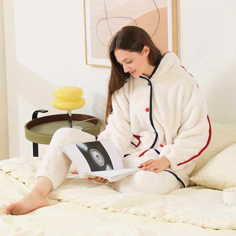 Nuevo pijama con capucha de invierno para mujer, de terciopelo ártico, con forro polar grueso para mujer, ropa de abrigo para el hogar.