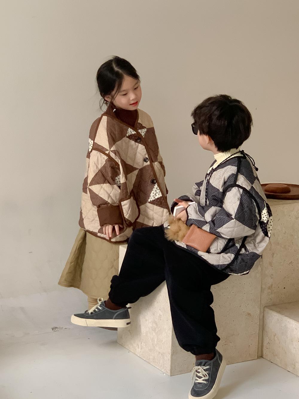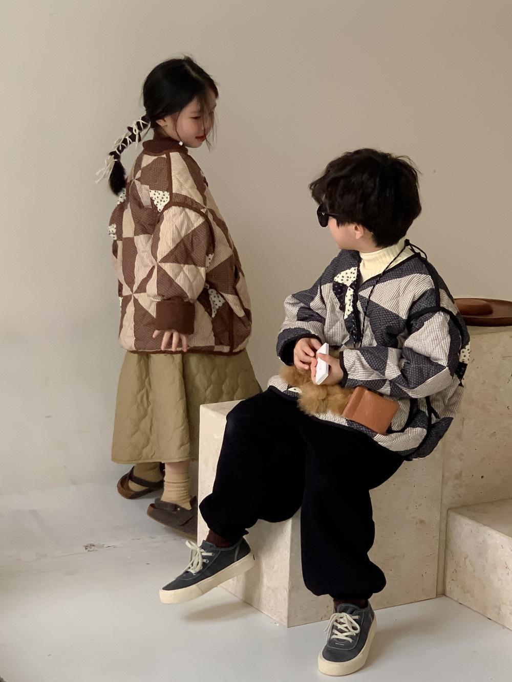 Triangle irregular cotton-padded coat Black, Triangle irregular cotton-padded coat Brown