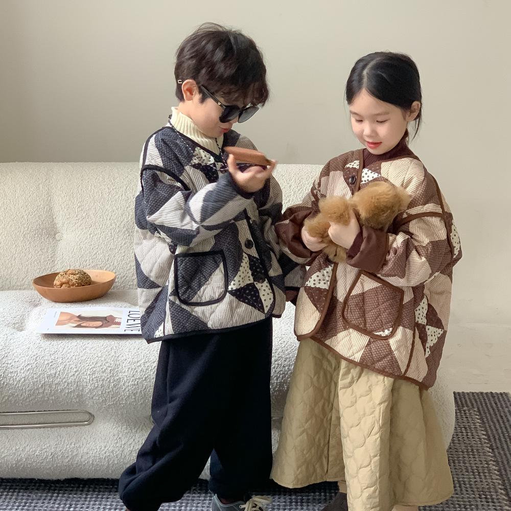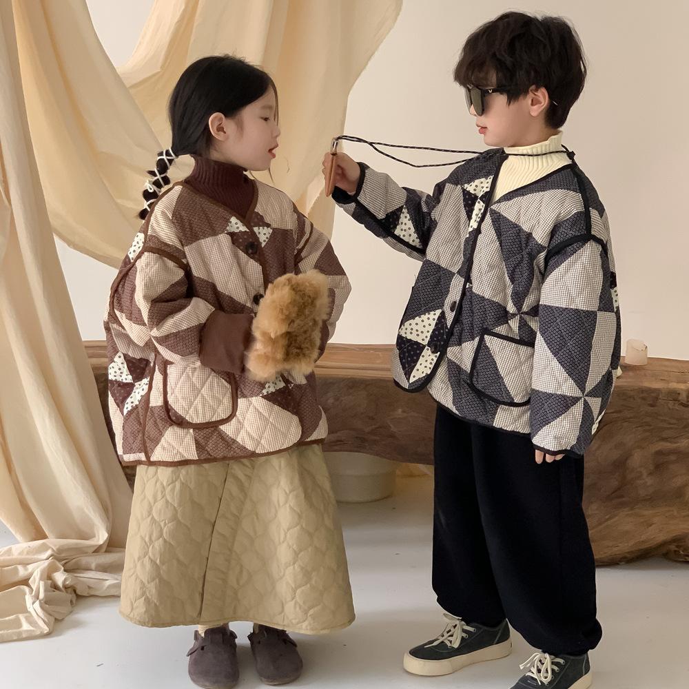 Abrigo de Algodón para Niños 2025 Invierno Estilo Coreano Irregular Chaqueta de Algodón para Niños y Niñas, Abrigo Casual Grueso de Cuello Redondo para Niños