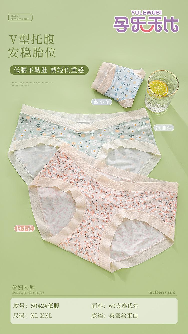 Ropa interior de maternidad con cintura baja, agradable para la piel, con soporte abdominal en forma de V, 60 piezas, suave, modal, cómoda, de seda morera, antibacteriana, con entrepierna floral