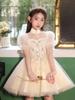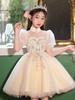 Vestido de princesa de verano de alta gama para niñas, vestido de niña de flores con velo abullonado, vestido de actuación de piano para anfitriona de boda