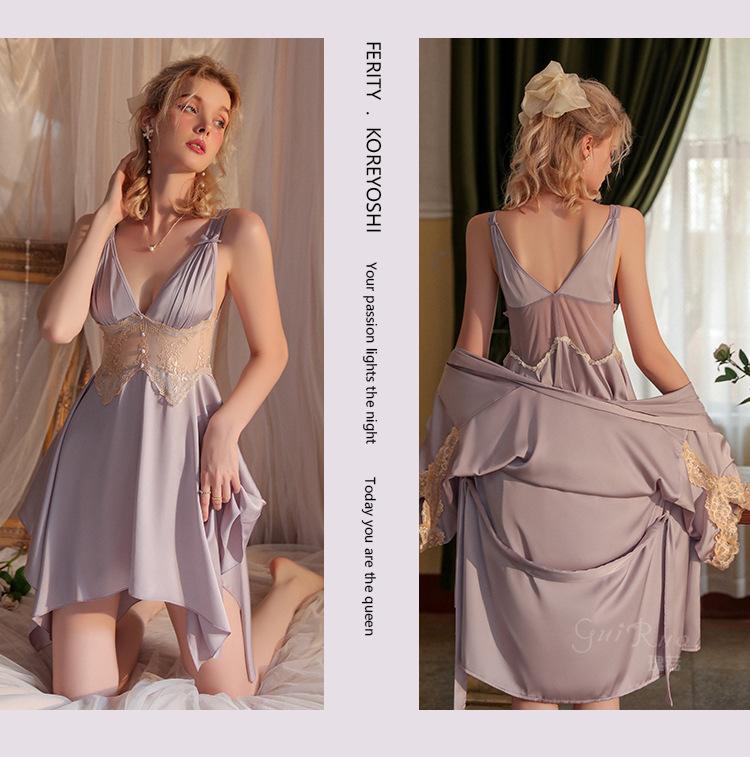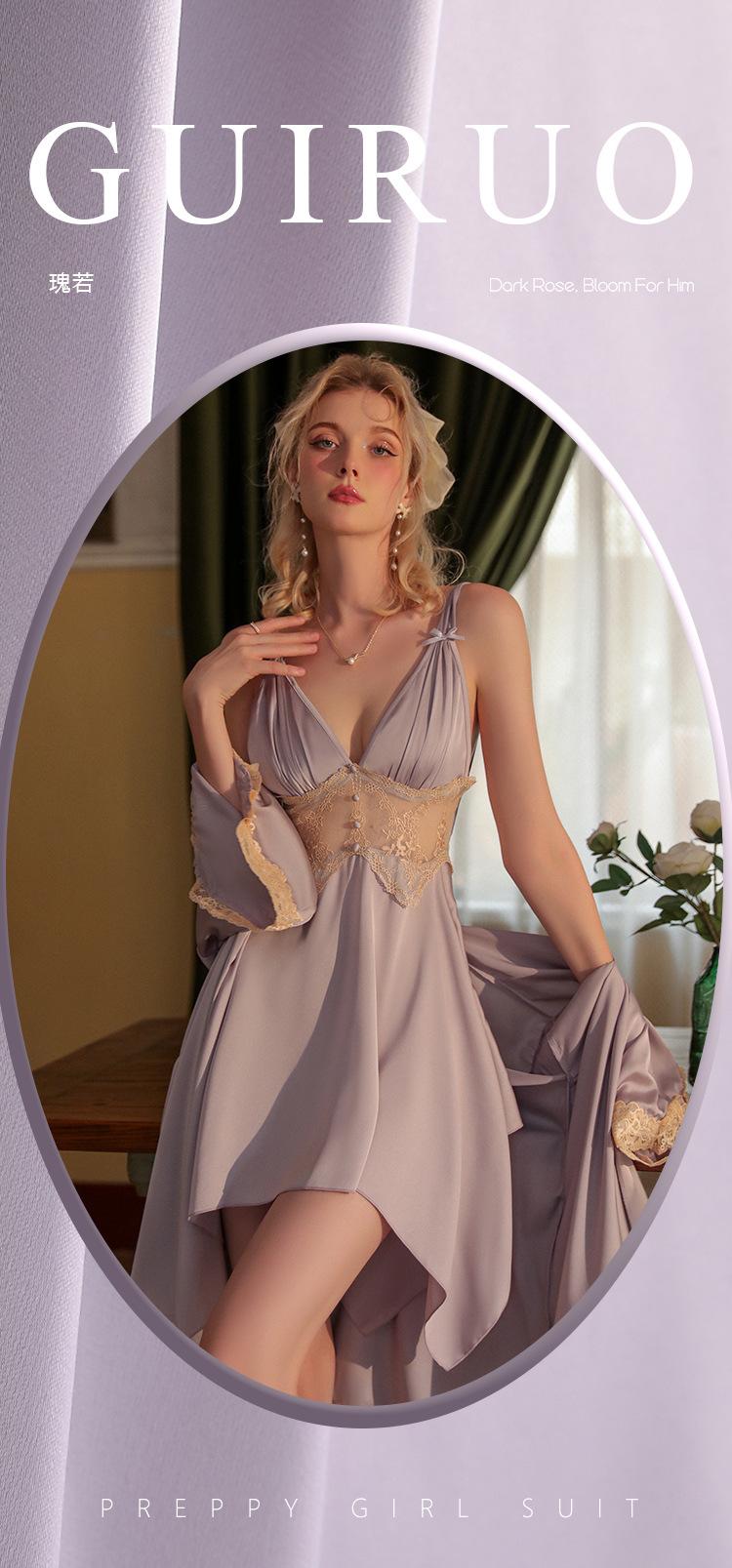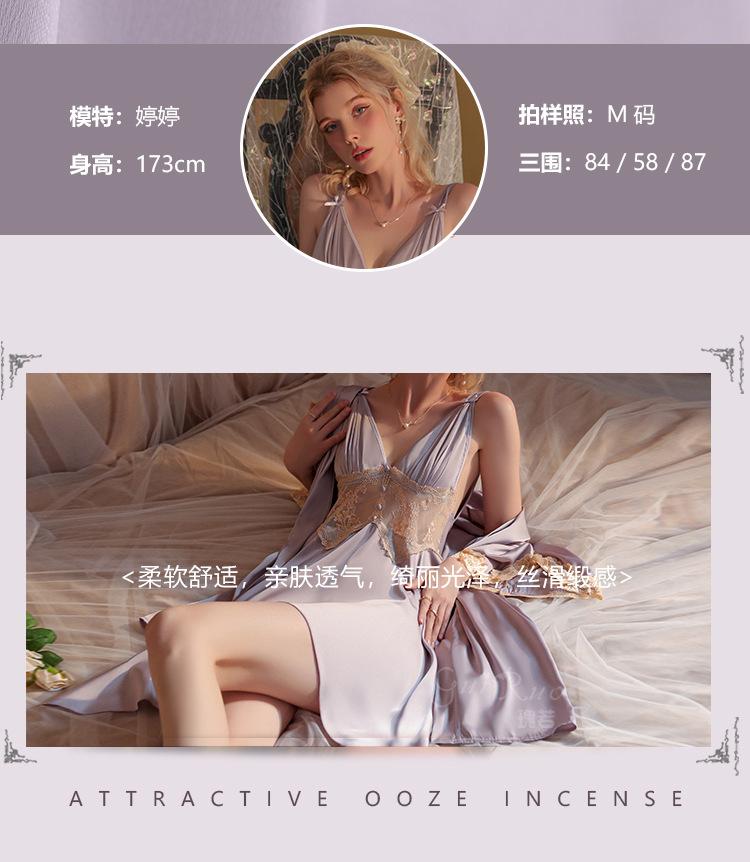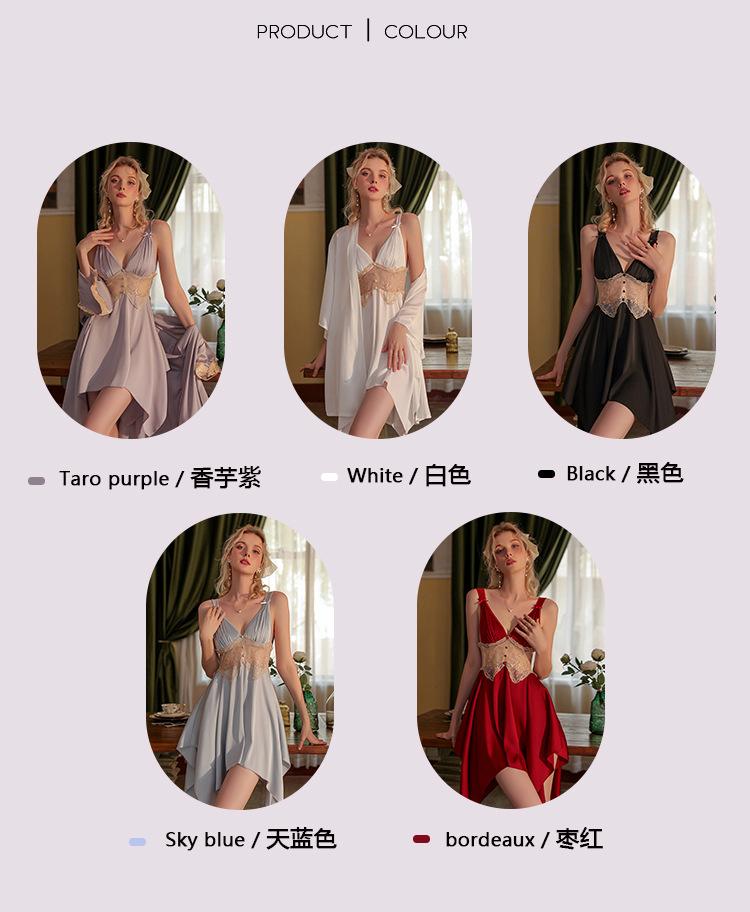 Taro Purple (Nightdress), Zaohong (nightgown), 1690 purplish red (Robe + Belt), Sky Blue (Nightgown), 1690 sky...