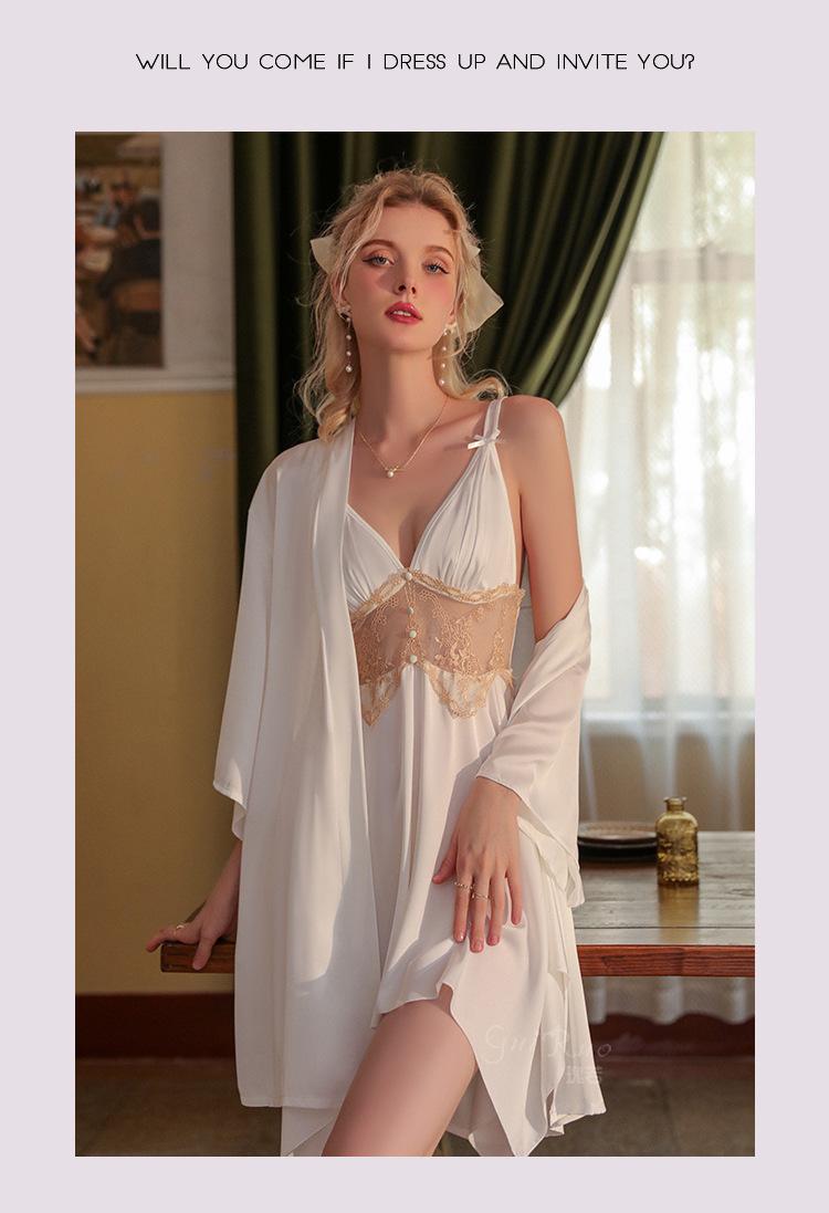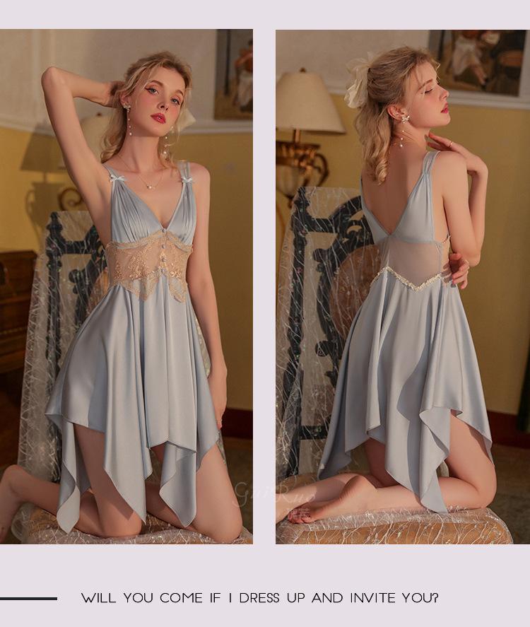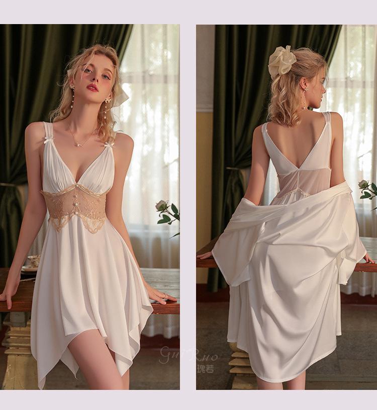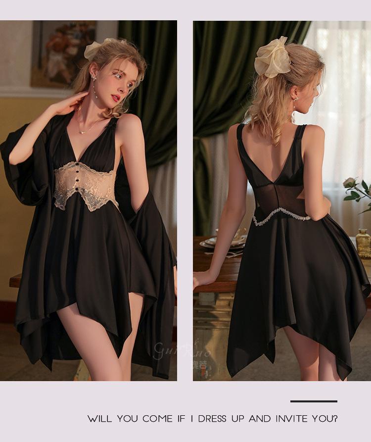 Marca Guiruo Pijama Sexy Satín Casual Camisón con Tirantes Bata Exterior para Mujer sin Espalda Color Sólido Conjunto de Ropa para el Hogar 2413