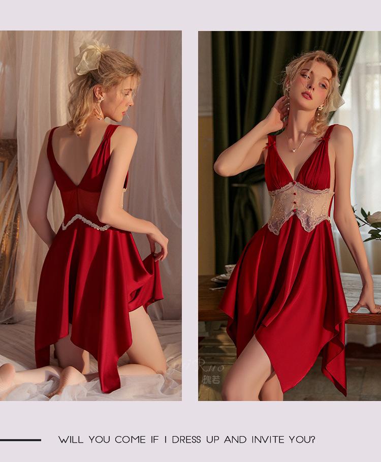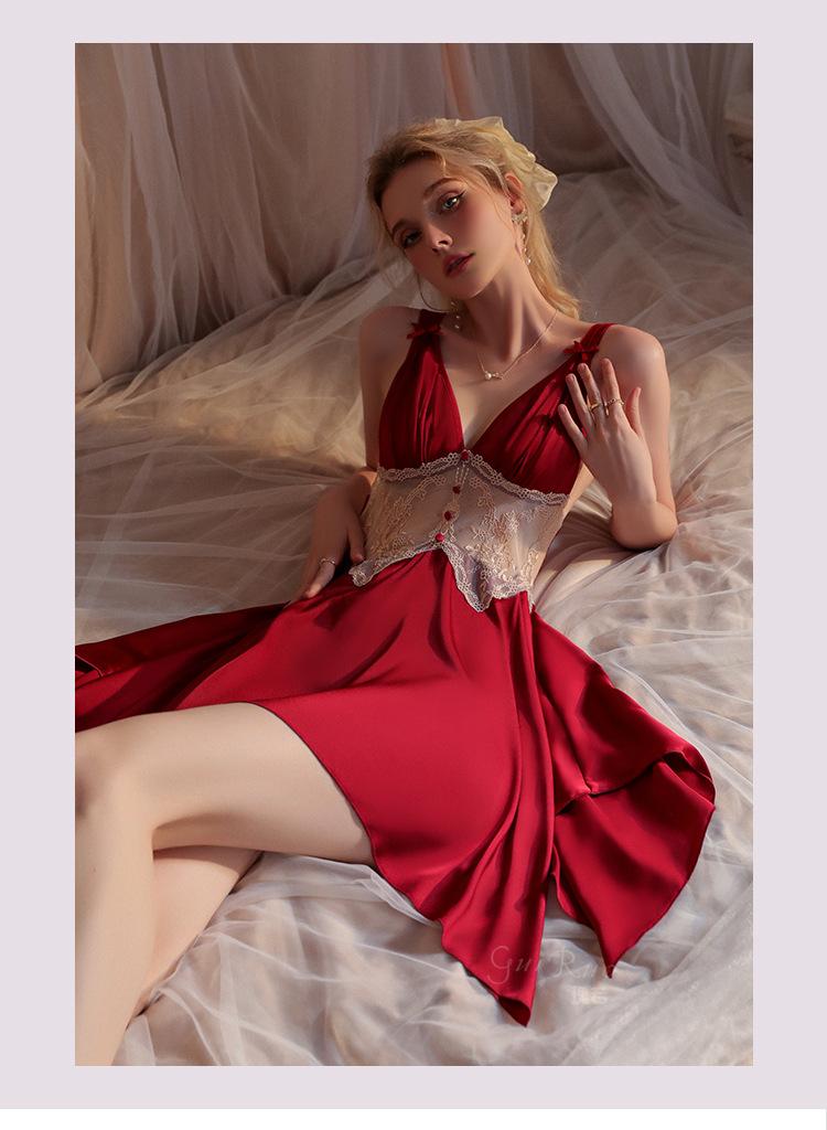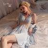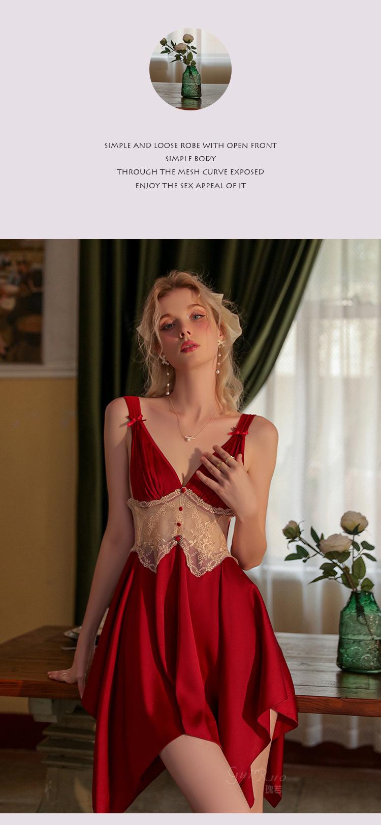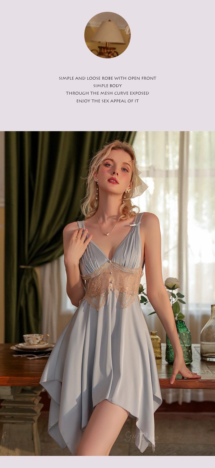 Marca Guiruo Pijama Sexy Satín Casual Camisón con Tirantes Bata Exterior para Mujer sin Espalda Color Sólido Conjunto de Ropa para el Hogar 2413