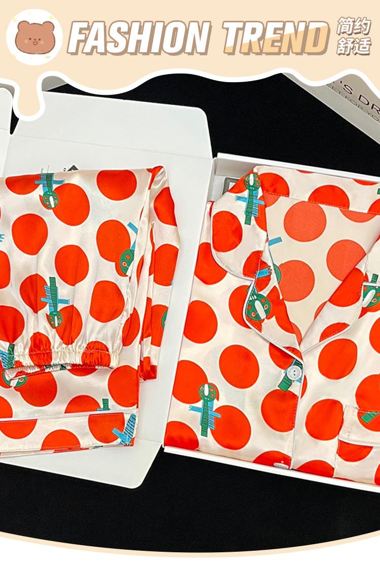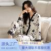 Pijama de Seda de Hielo de Primavera y Otoño para Mujer Cárdigan de Seda Manga Larga Delgada Talla Grande Delgada Ropa Exterior Conjunto de Ropa para el Hogar Foto Real Venta al por Mayor