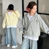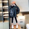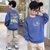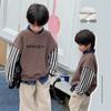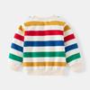 Suéter de manga larga a rayas de colores para niños, ropa de primavera y otoño, con estampado de dibujos animados, cuello redondo y puños de hilo en contraste.