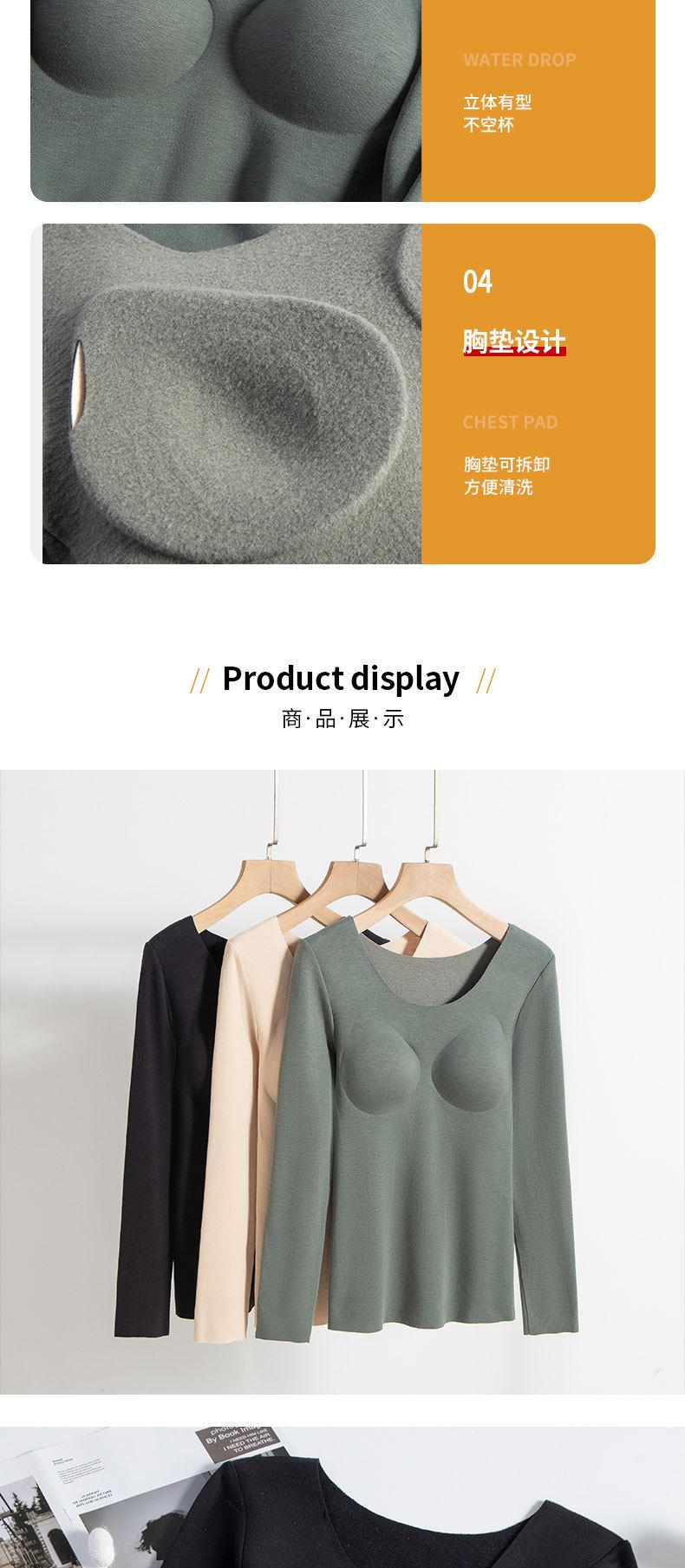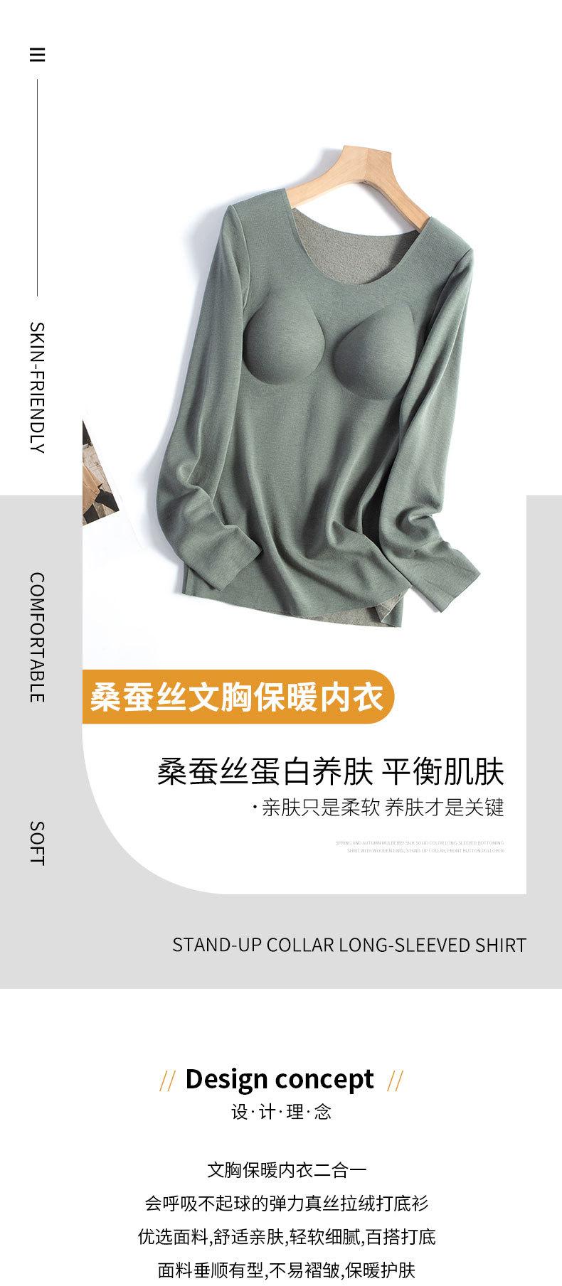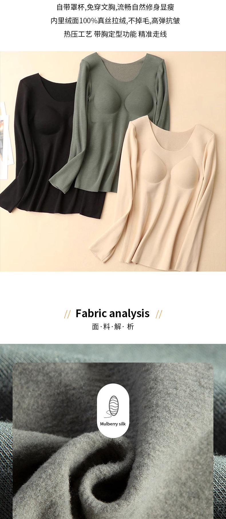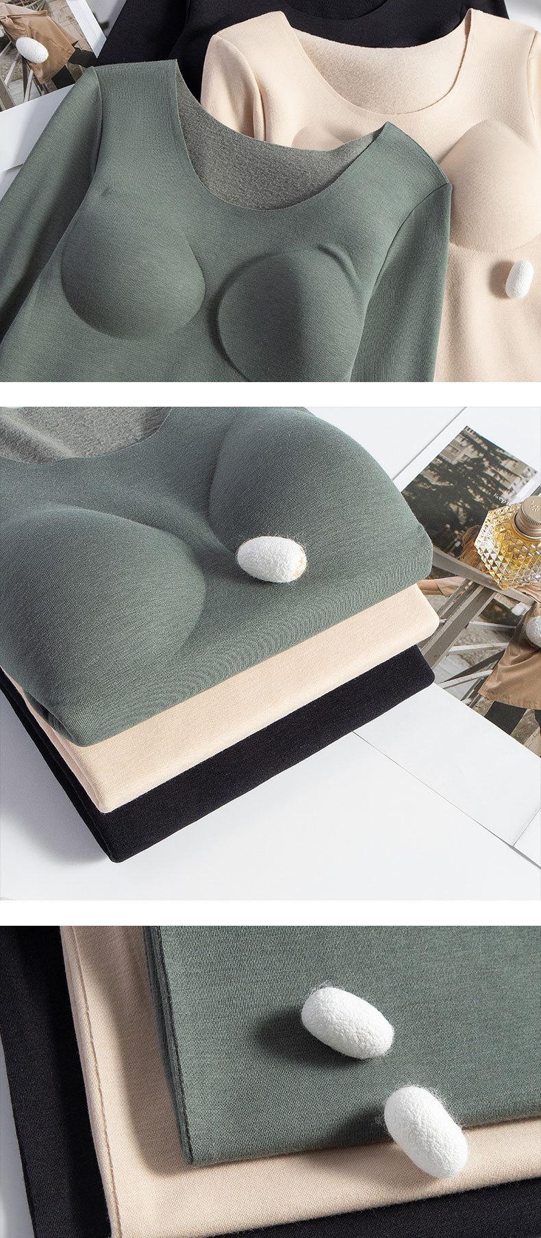 Otoño e invierno ropa interior térmica sin costuras cepillada de seda bajo abrigo sin usar nuevo sujetador con almohadilla de pecho desmontable camiseta base para mujer