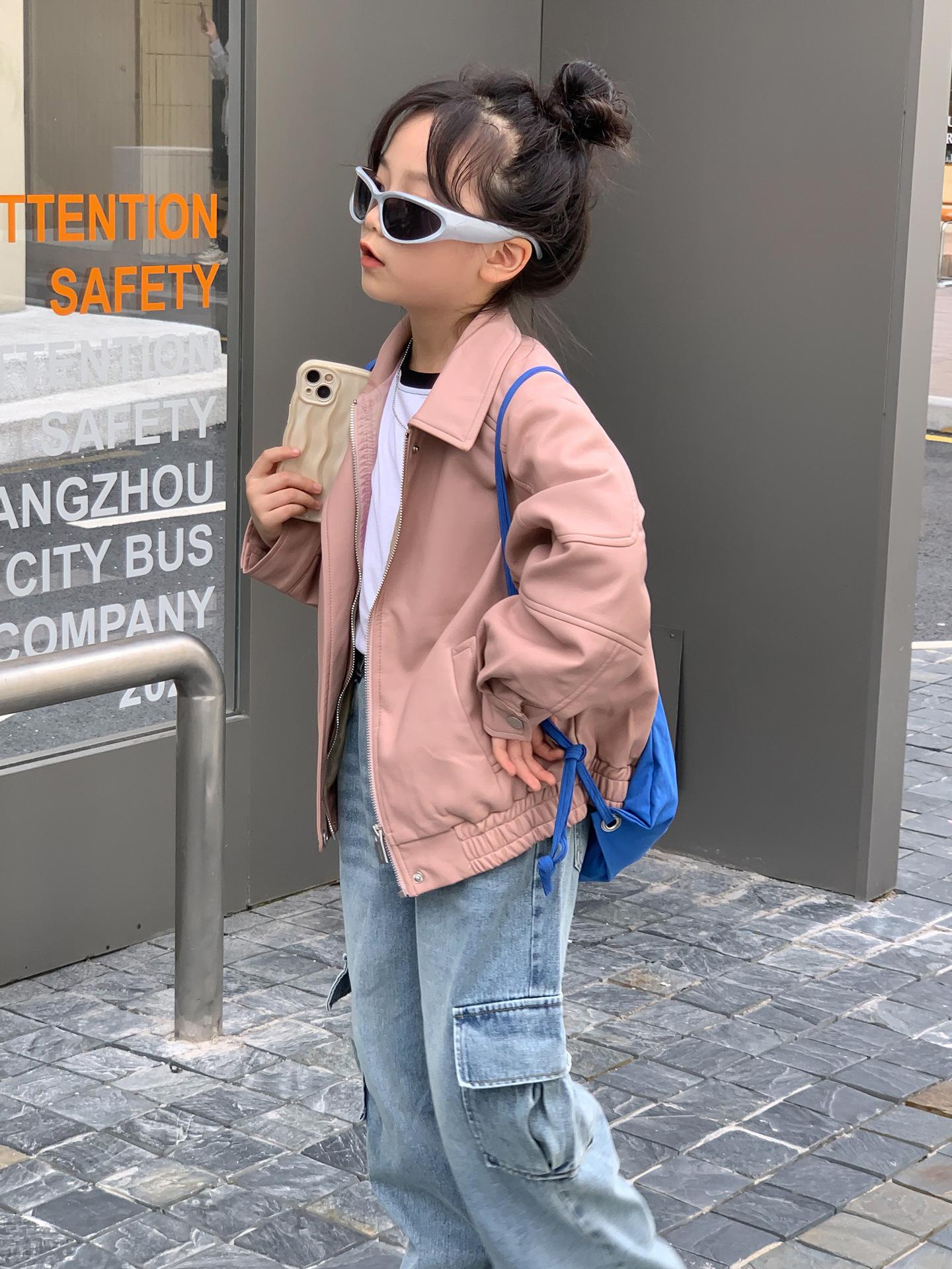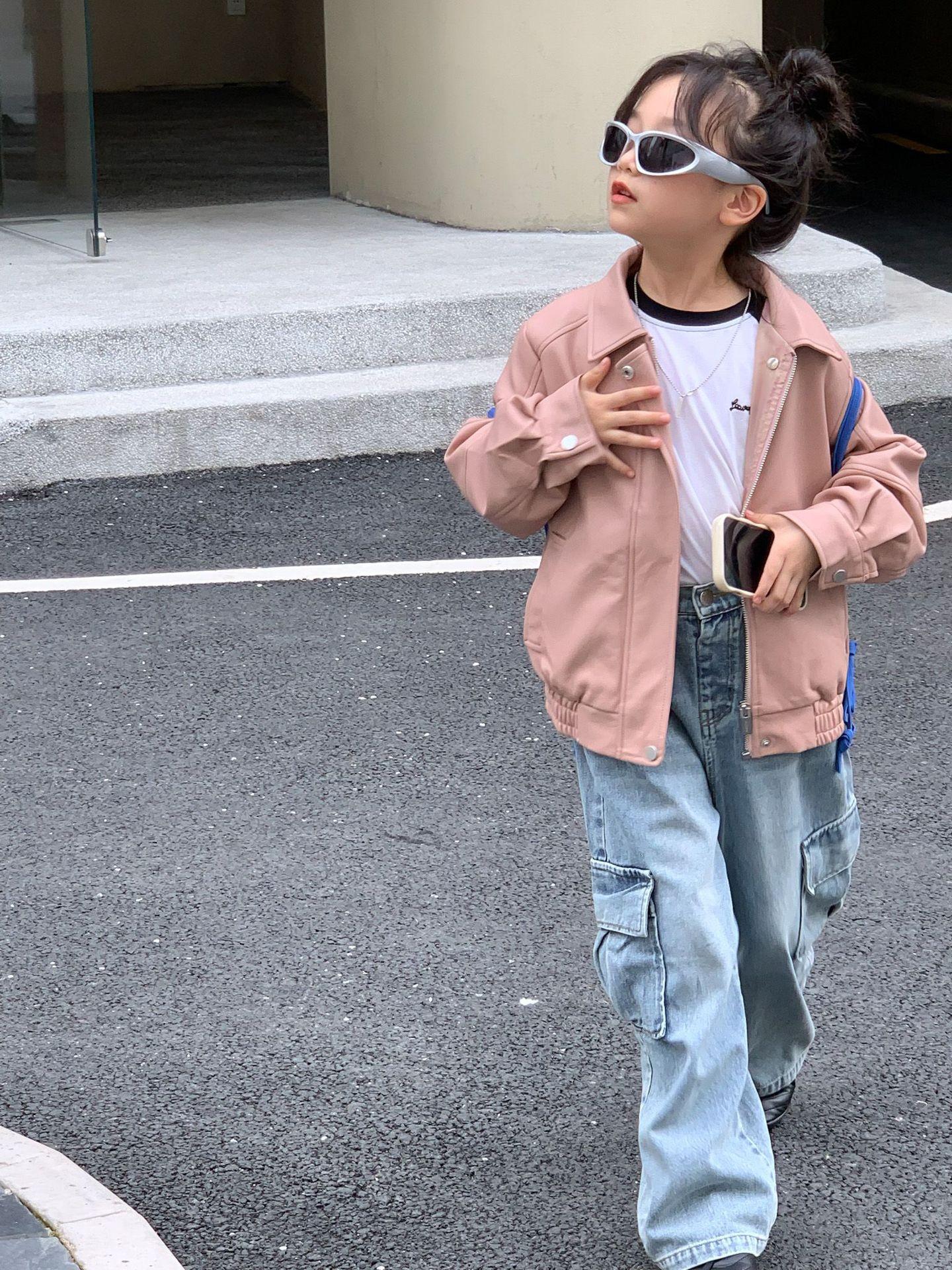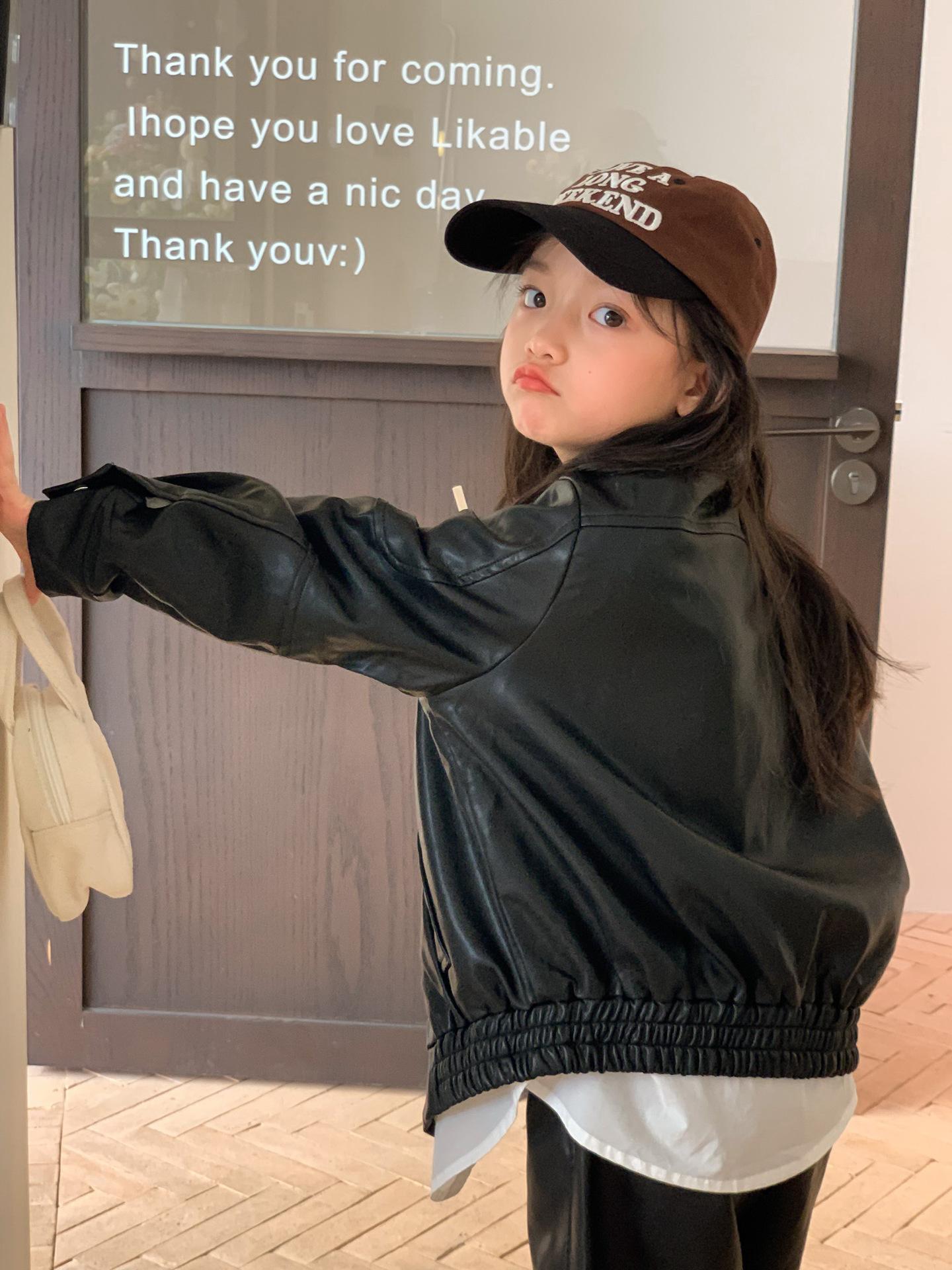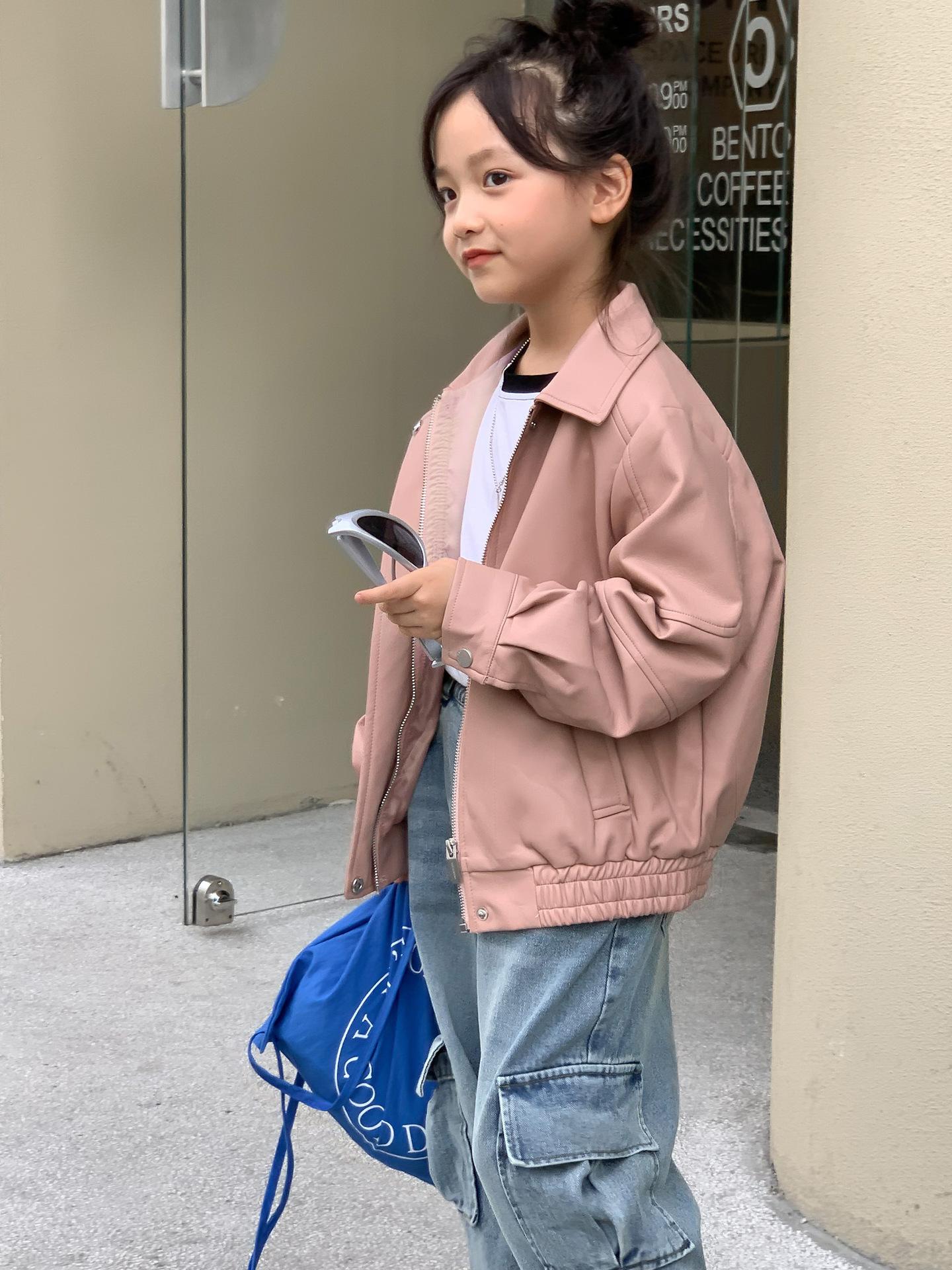 Chaquetas de Cuero para Niñas Otoño 2025 Nuevo Estilo Coreano de Moda Chaqueta de Cuero Pu de Motociclista para Niños